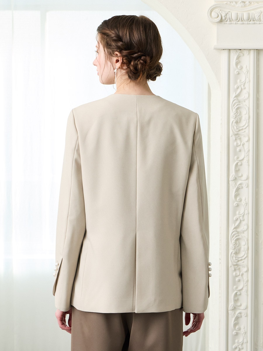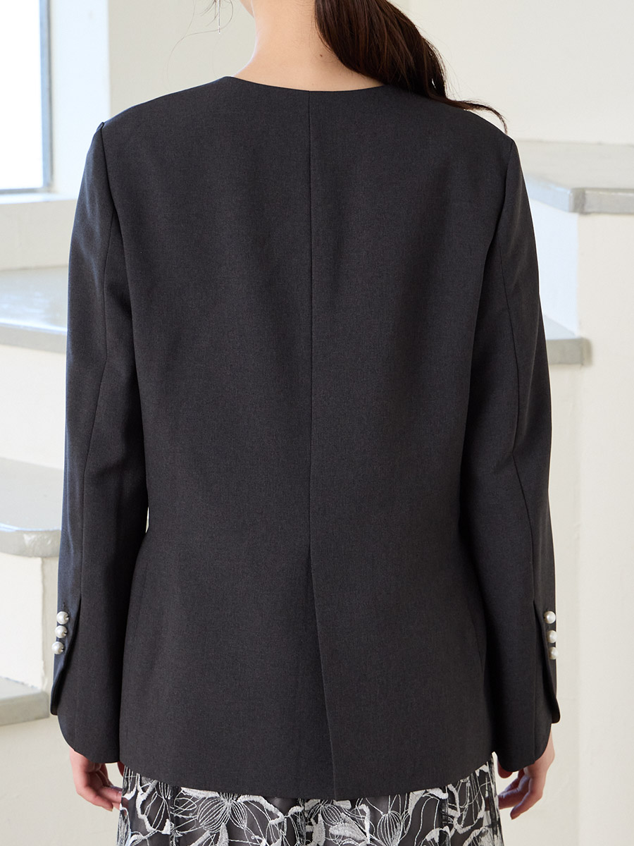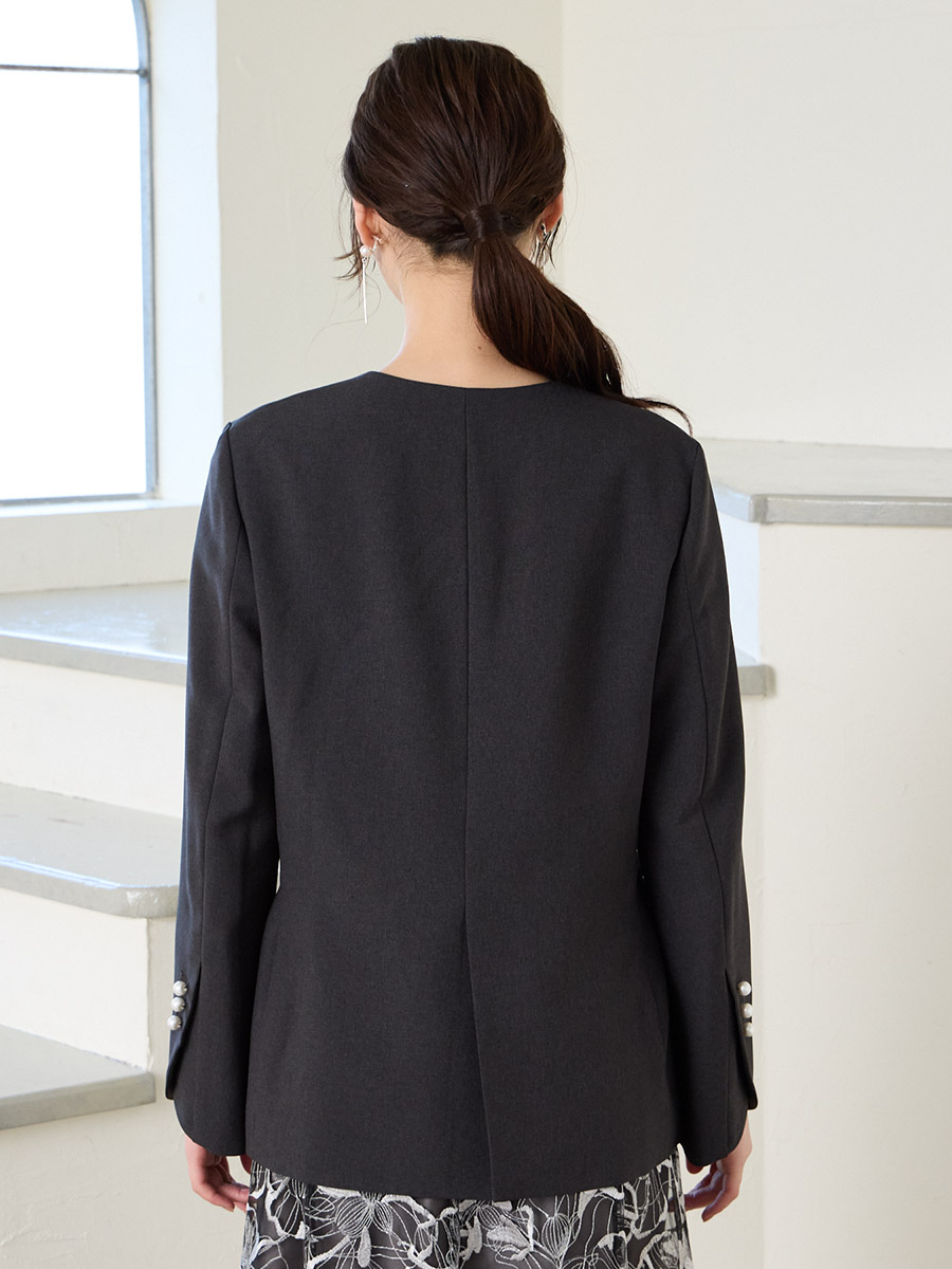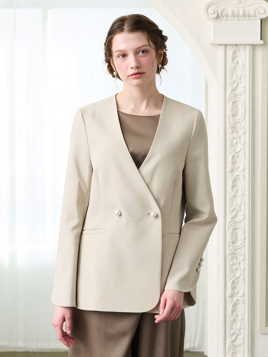 パールボタンドライトロピカルノーカラーダブルジャケット