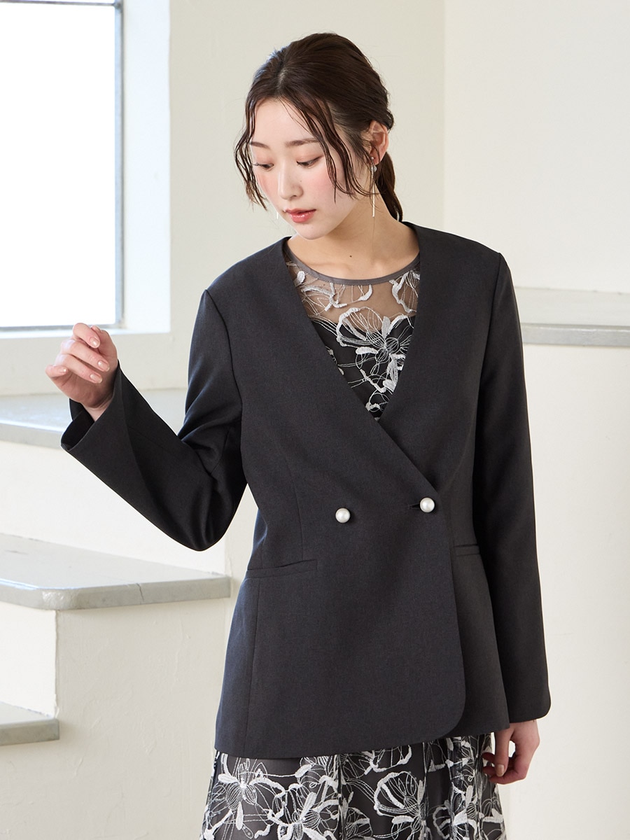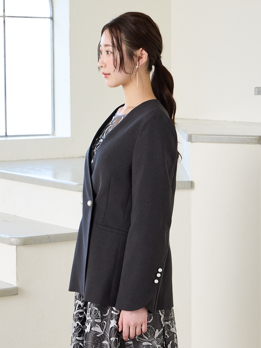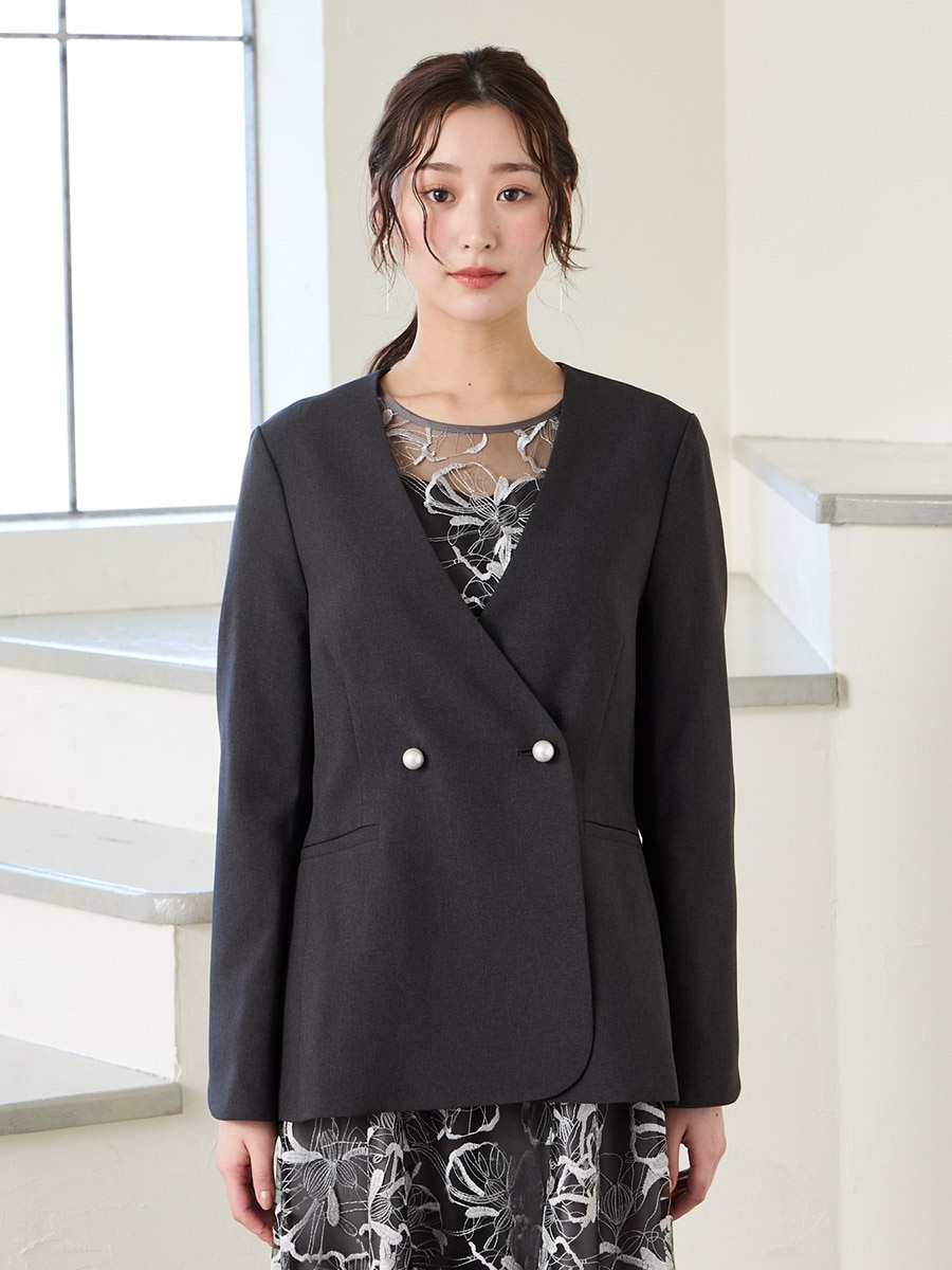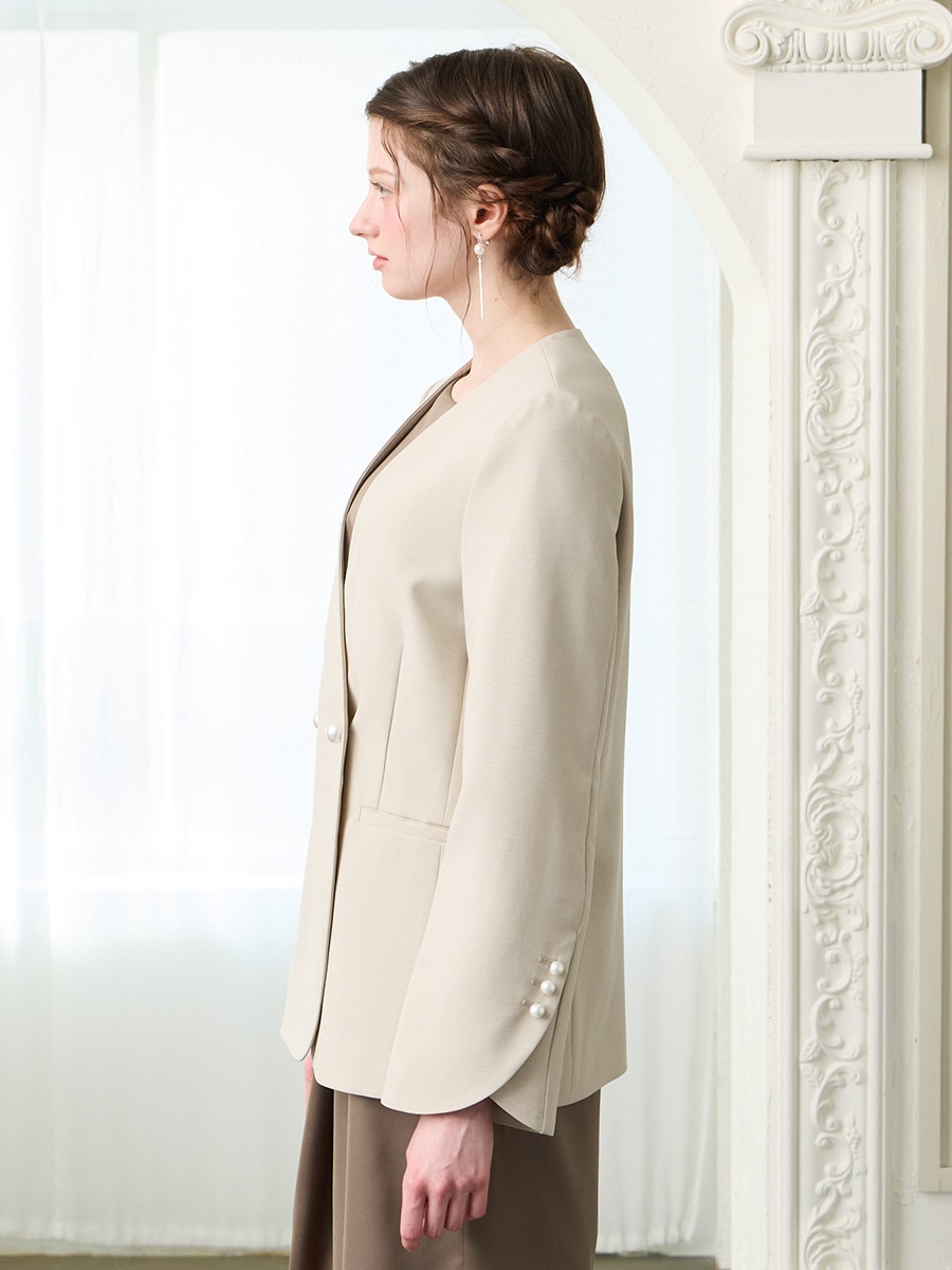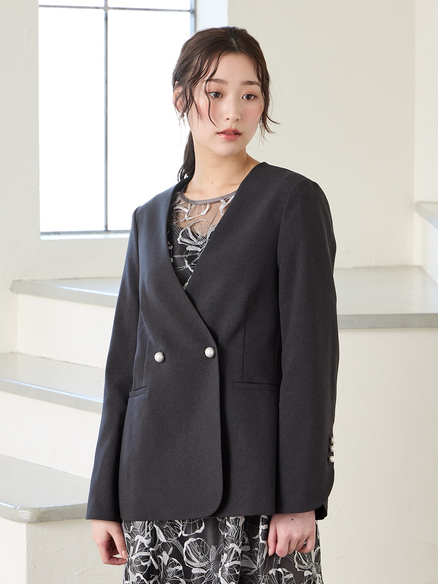 パールボタンドライトロピカルノーカラーダブルジャケット