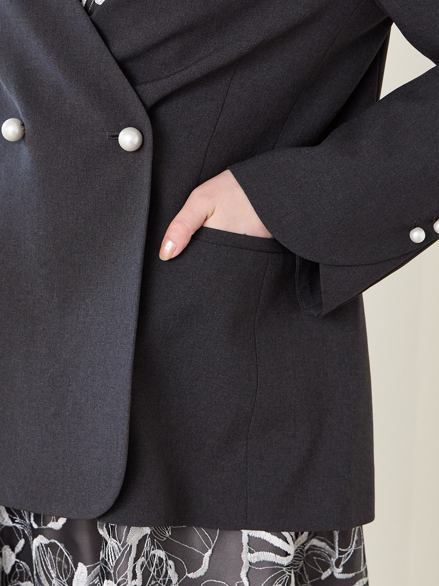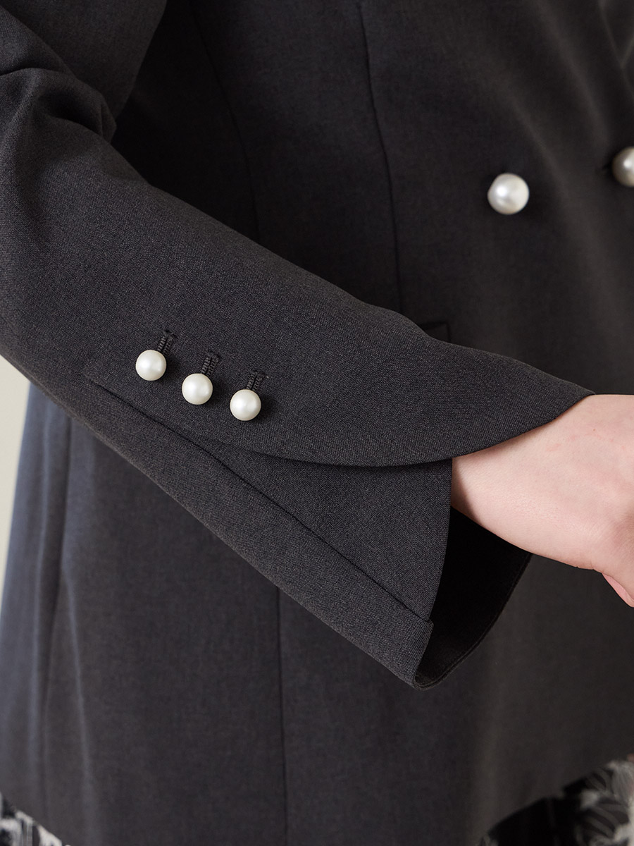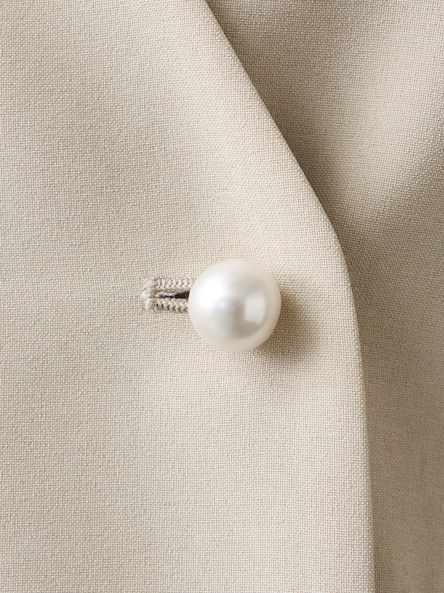 ・袖口とフロントにパールボタンを施し、華やかさを引き立てる