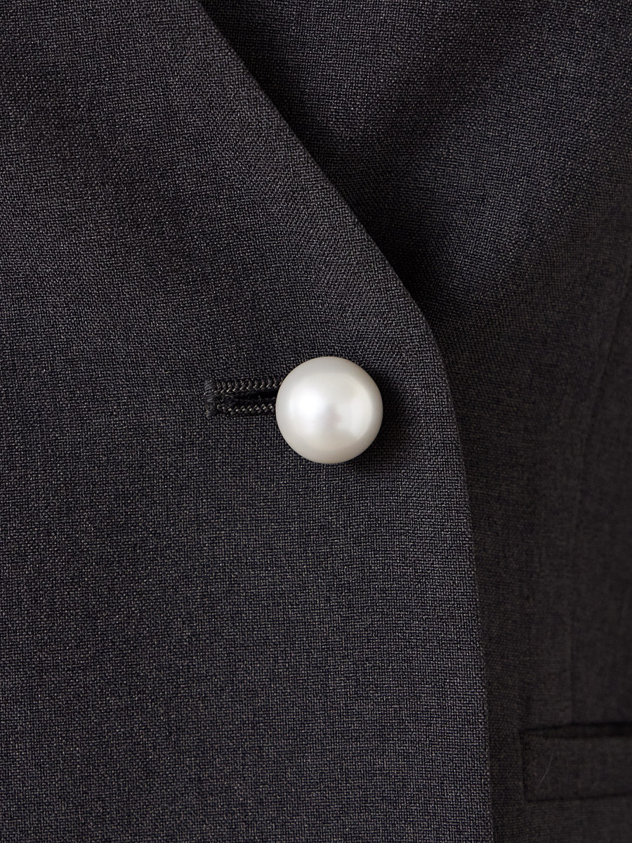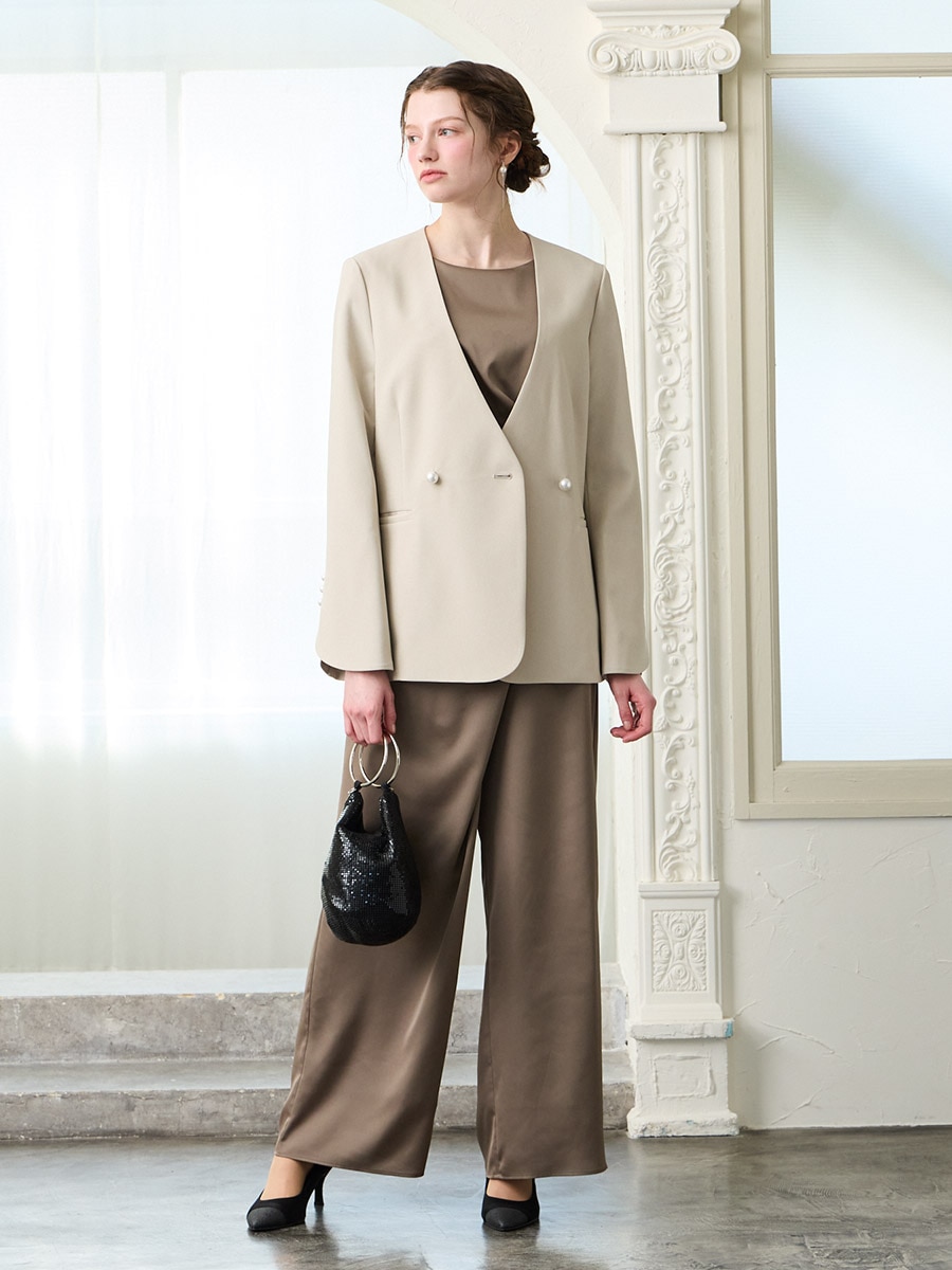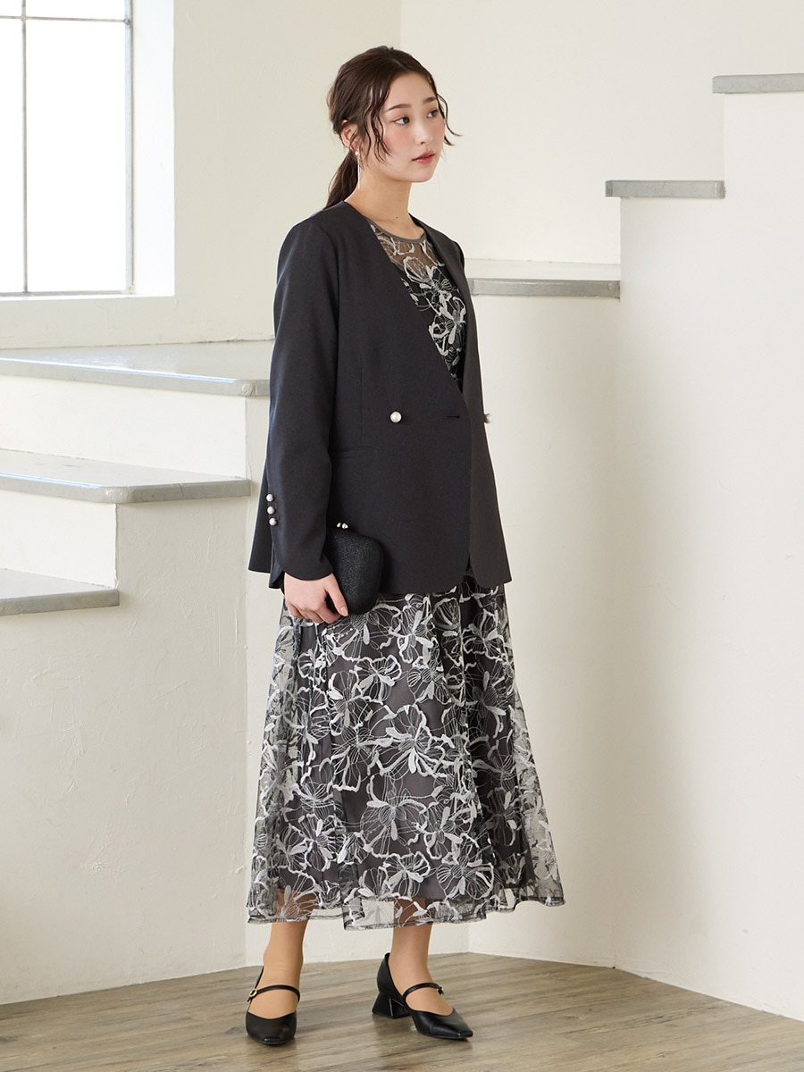 ・袖口とフロントにパールボタンを施し、華やかさを引き立てる