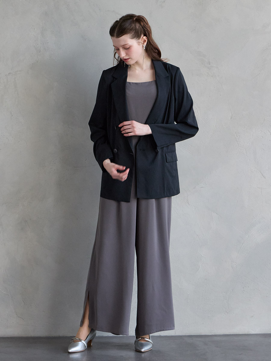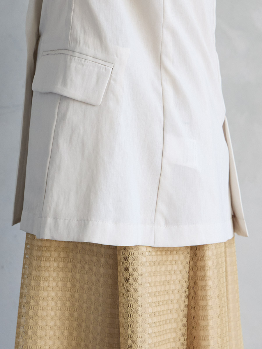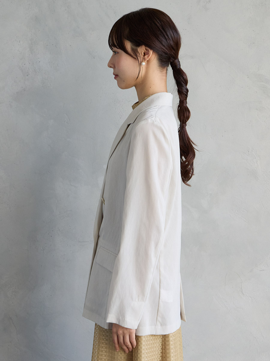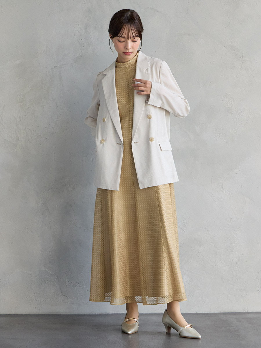 ・パンツドレス(品番:0323-7-15200)など、マニッシュなテイストのドレスに羽織って夏のオケージョンスタイルに