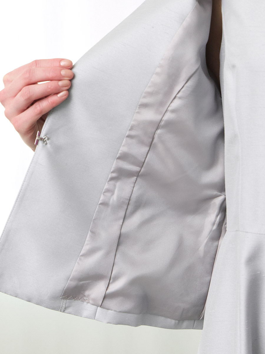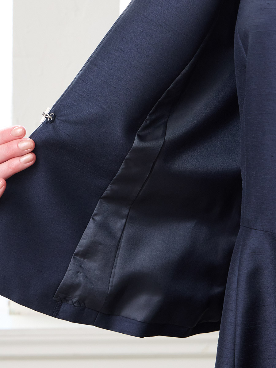 ・上品な光沢感のあるバックサテンシャンタン素材を使用し、程よいハリ感がきれいなシルエットを形成します