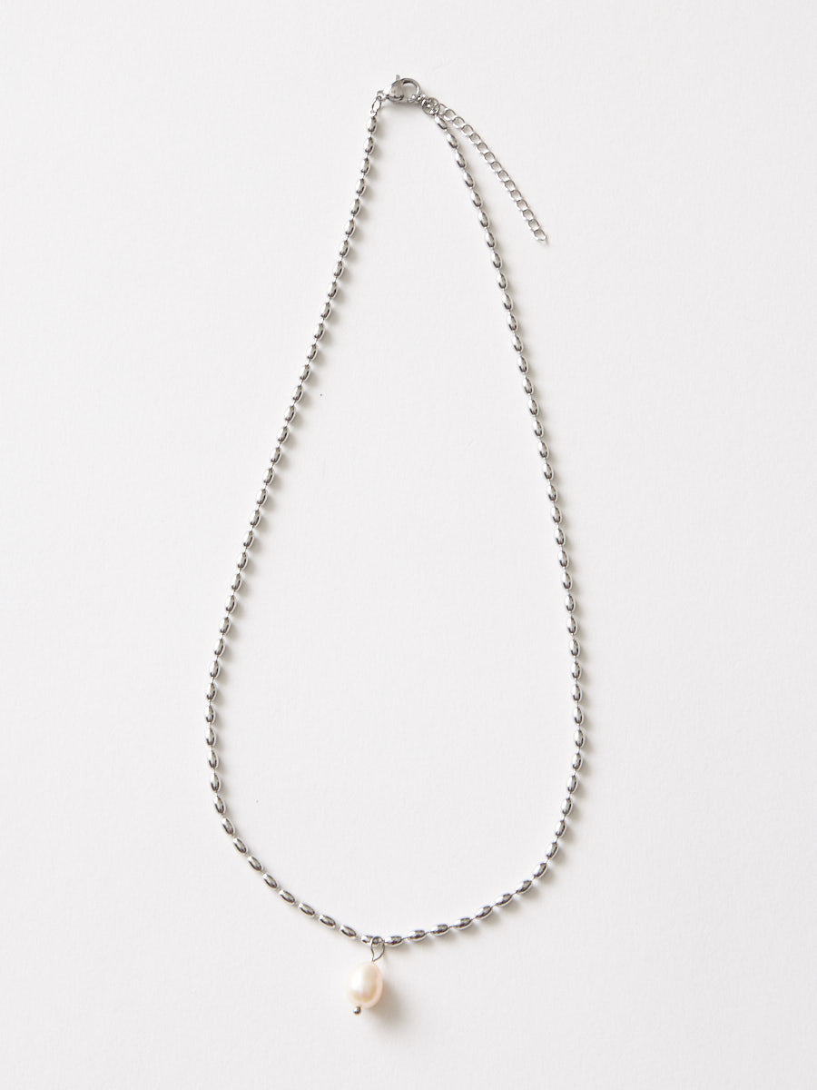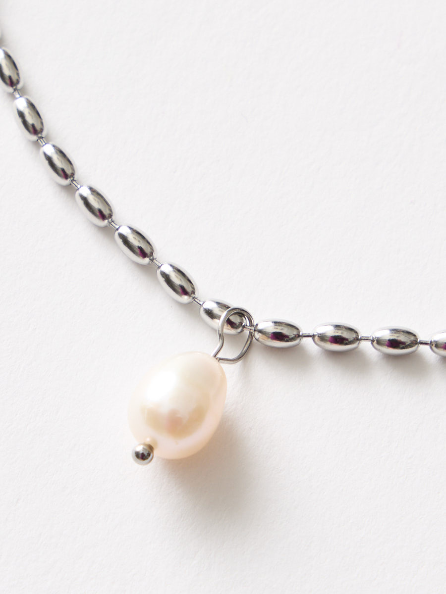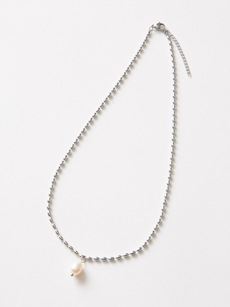 上品な艶の淡水パールと、繊細なボールチェーンを組み合わせたシンプルなネックレス。