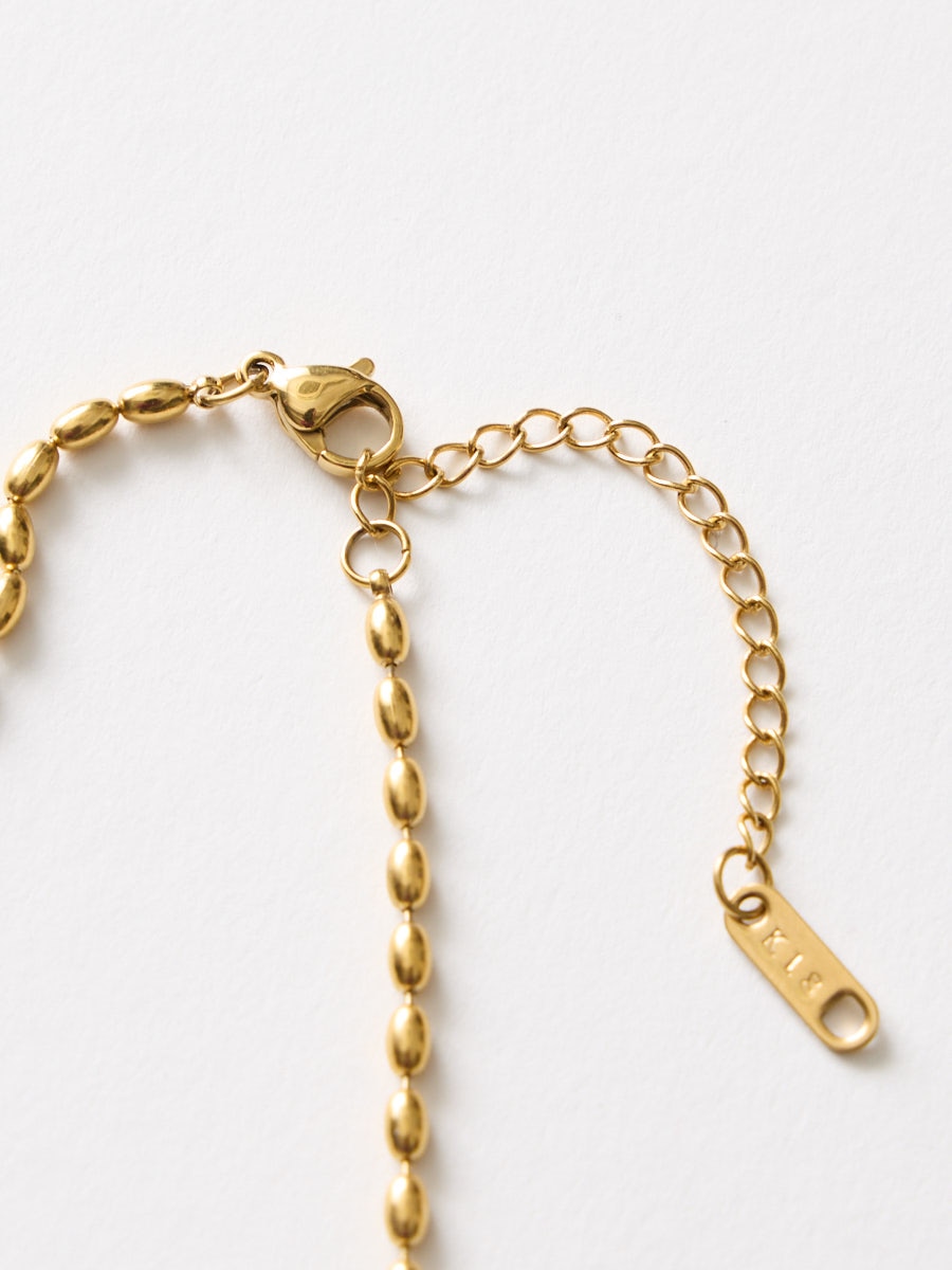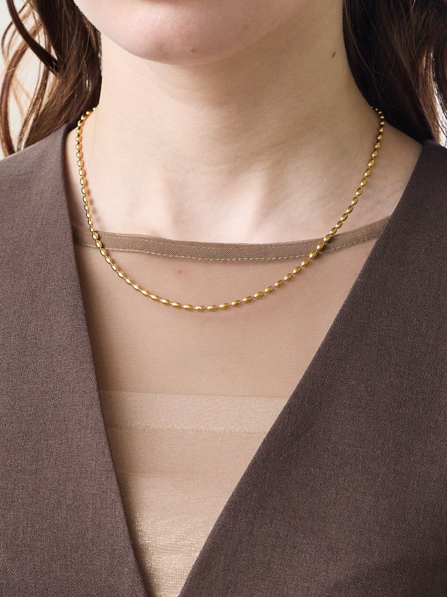 ゴールドのチェーンは18Kコーティングを施し、上品な輝きと耐久性を兼ね備えています。