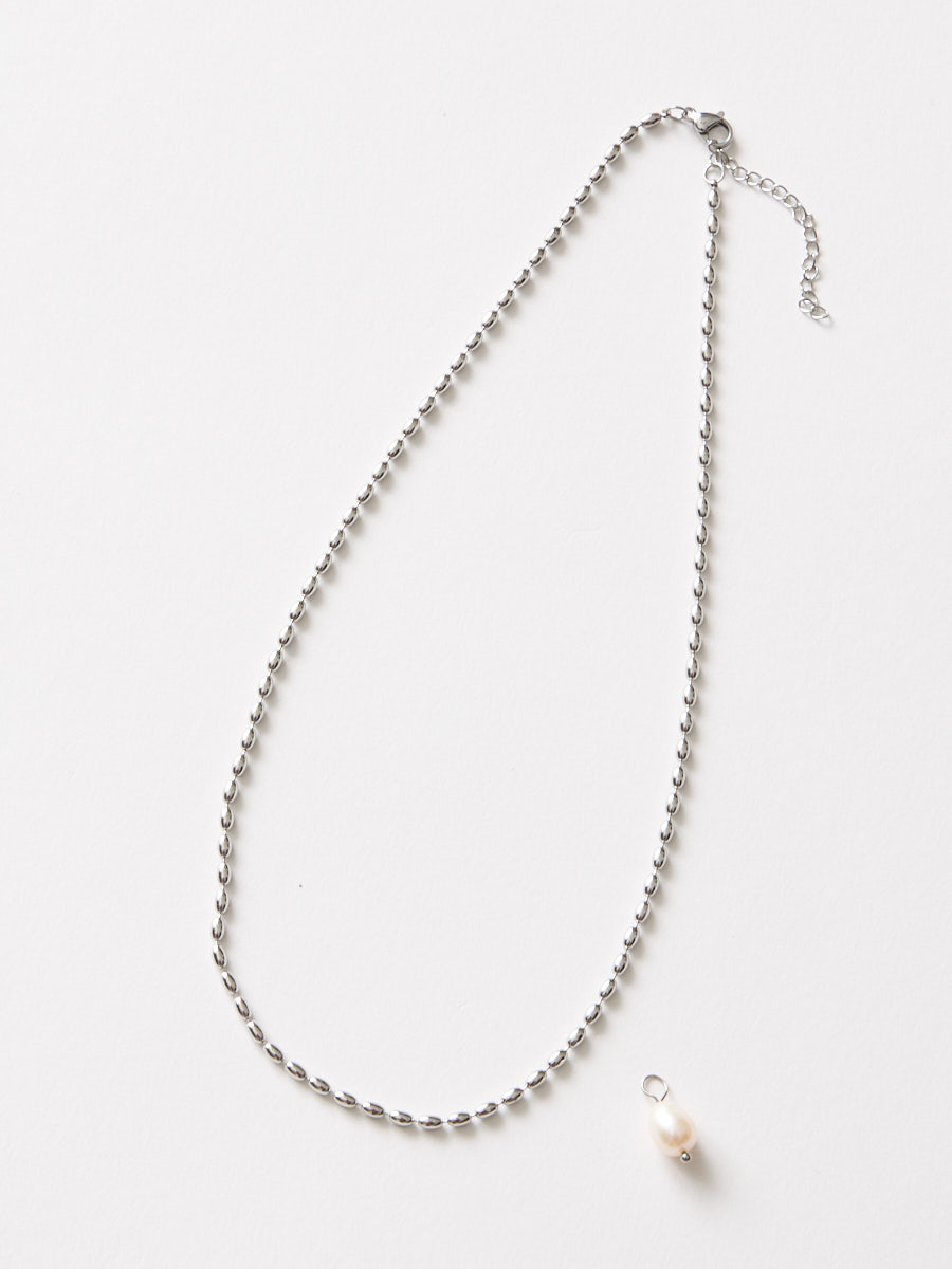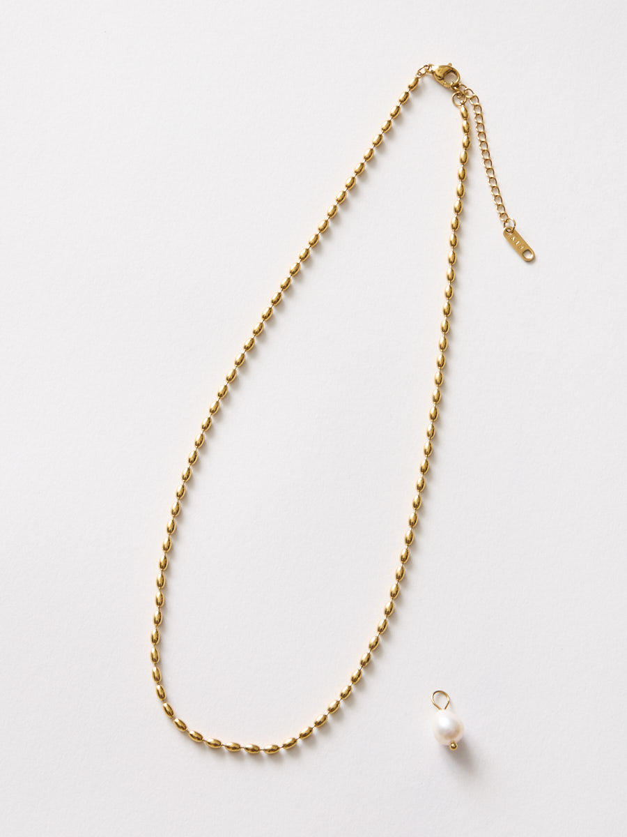 淡水パールは取り外し可能なので、シンプルなチェーンネックレスとしてデイリーにも使いやすいデザインです。