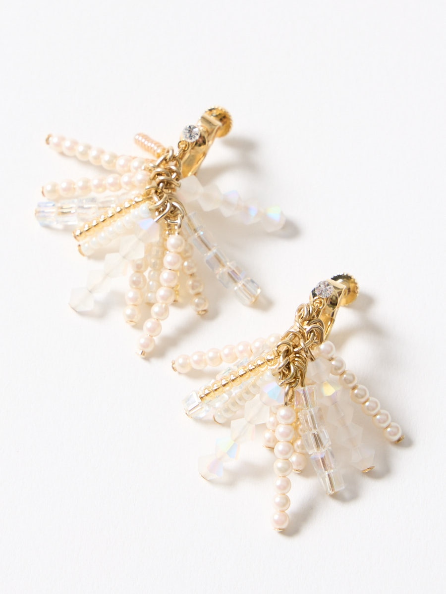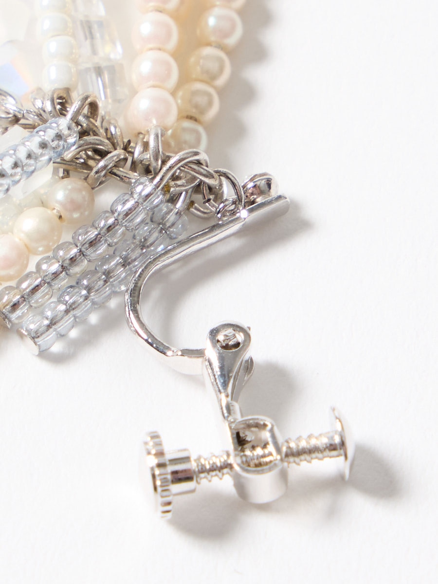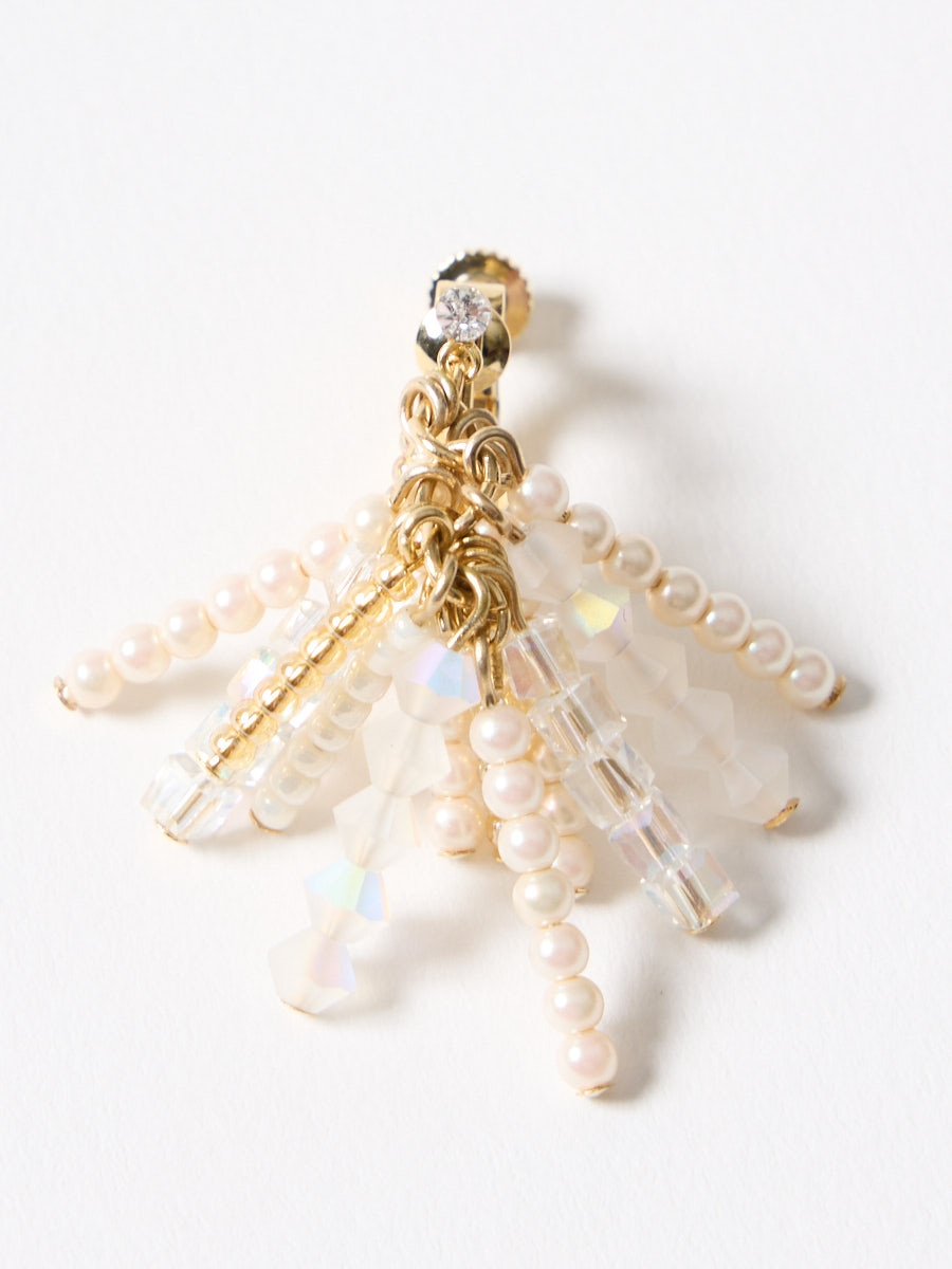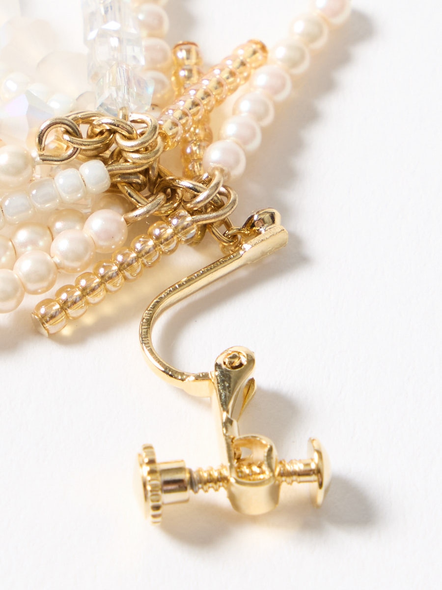 様々な種類のビーズを放射状に組み合わせたイヤリングになります。