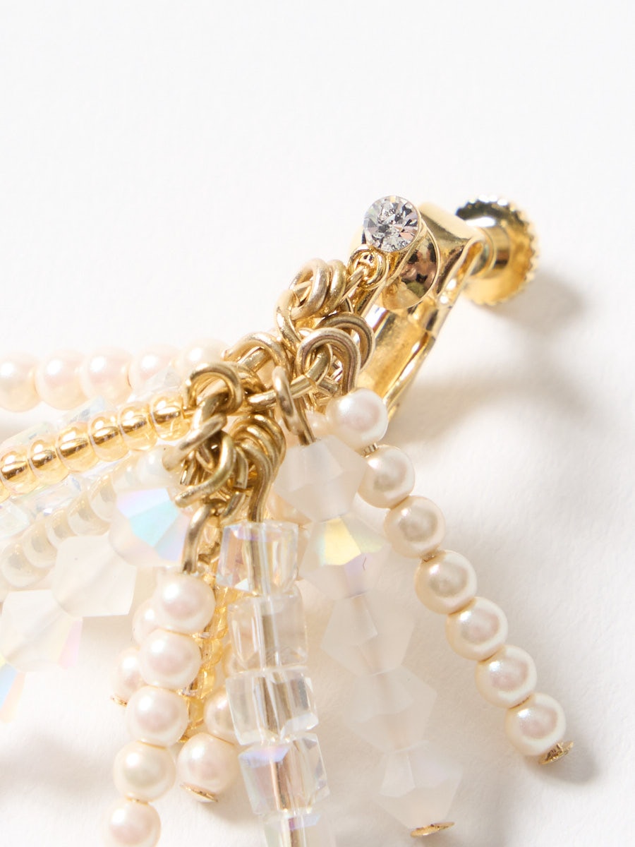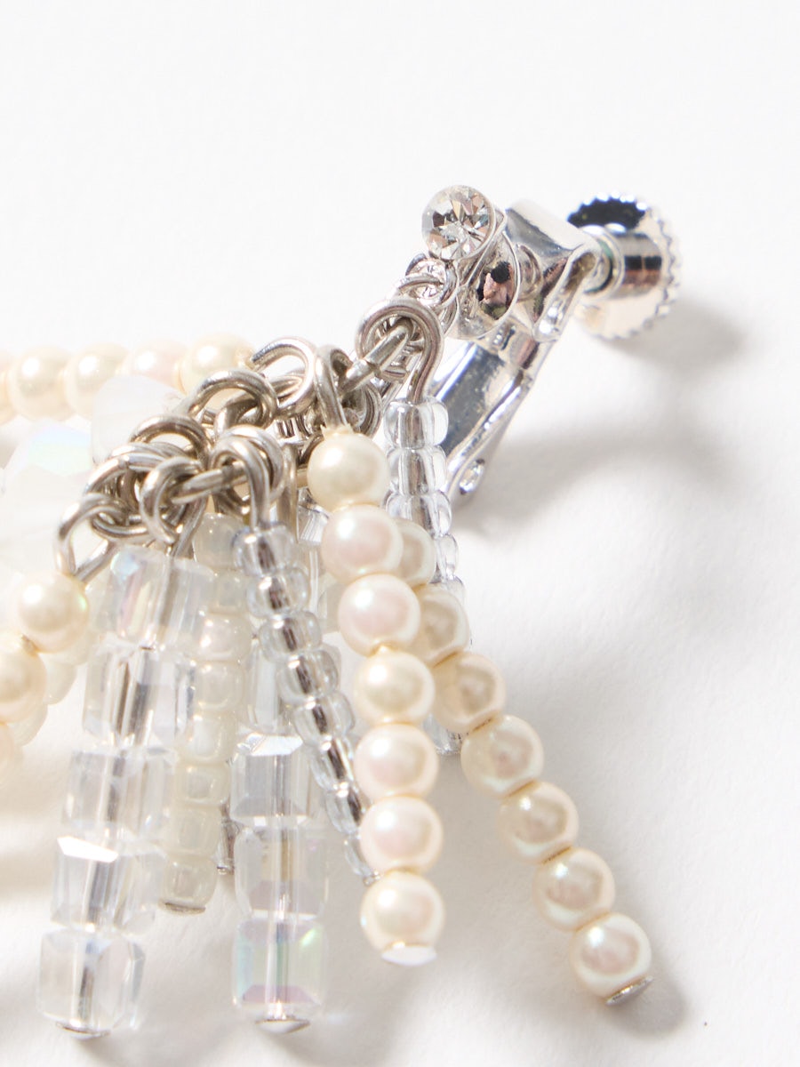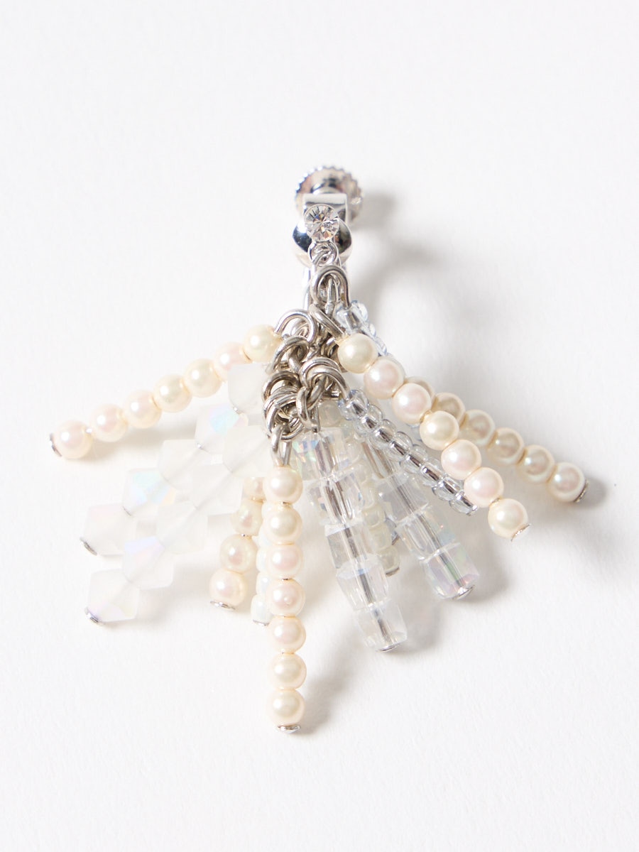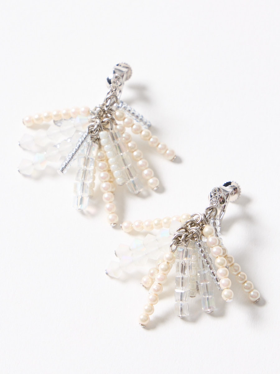 様々な種類のビーズを放射状に組み合わせたイヤリングになります。