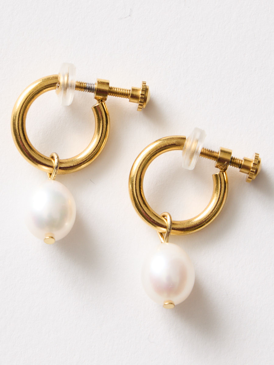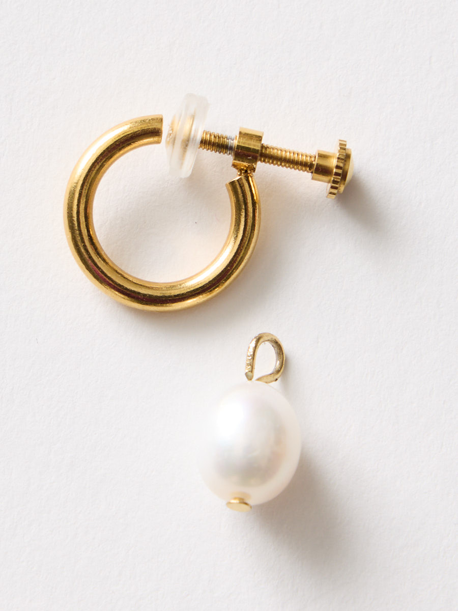 淡水パールを取って、フープイヤリングとしてさりげなく付けるのもおすすめです。