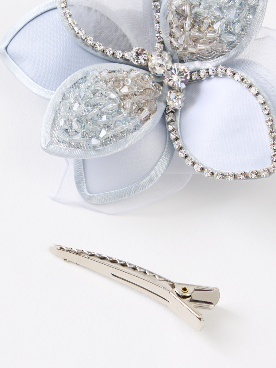 ビジューのクリアな輝きが、バッグ、シューズ、アクセサリーなど、どんな色味とも調和し、添えるだけで全体の完成度がアップします。