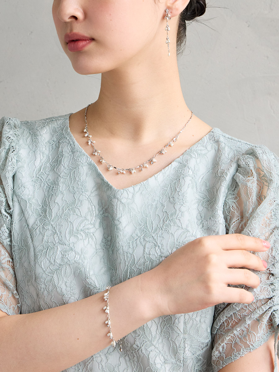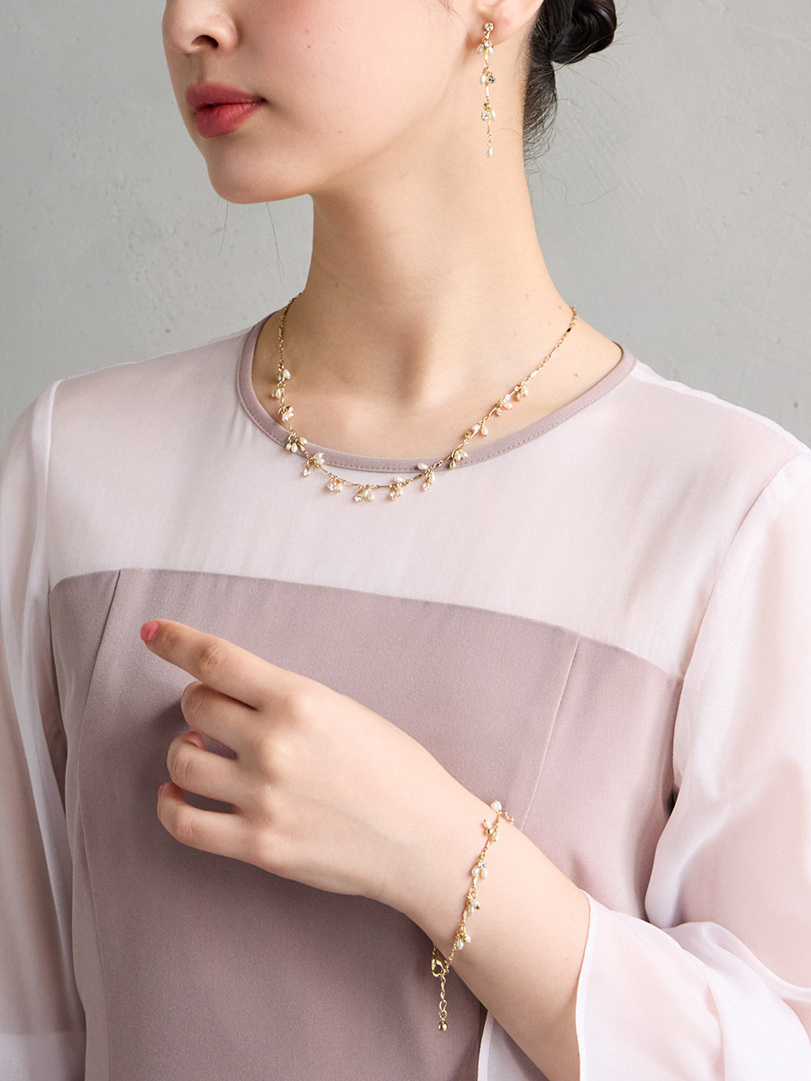 お揃いのネックレス、イヤリングと一緒に付けていただくとより統一感が出ますのでおすすめです。