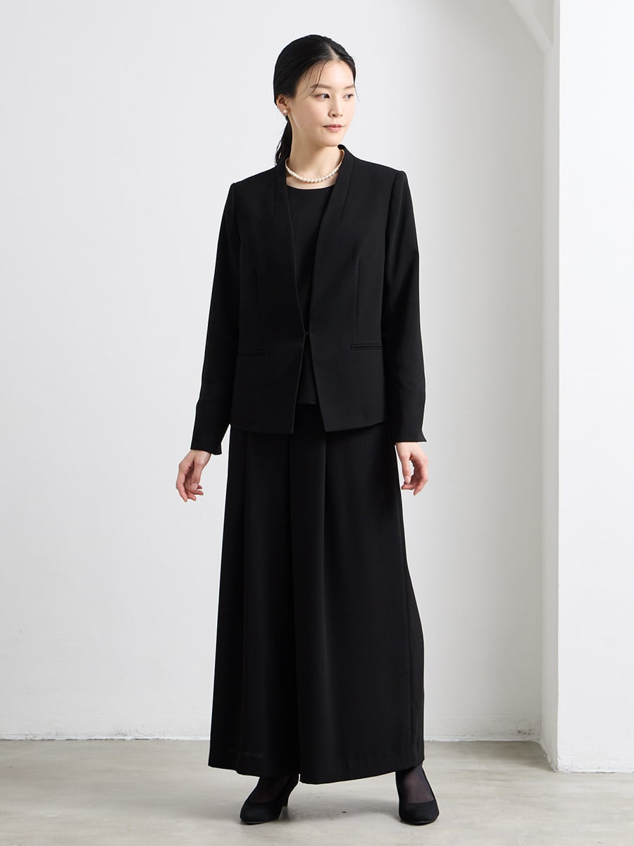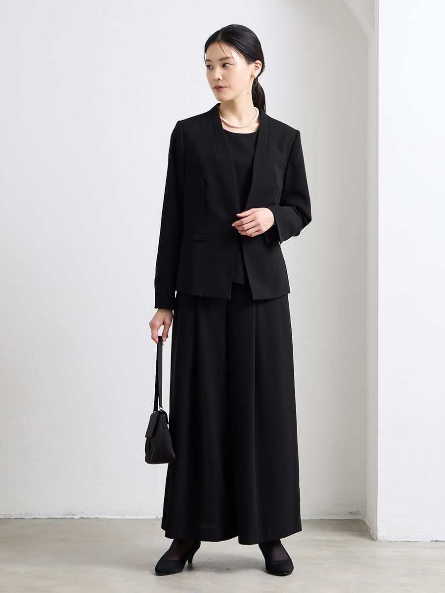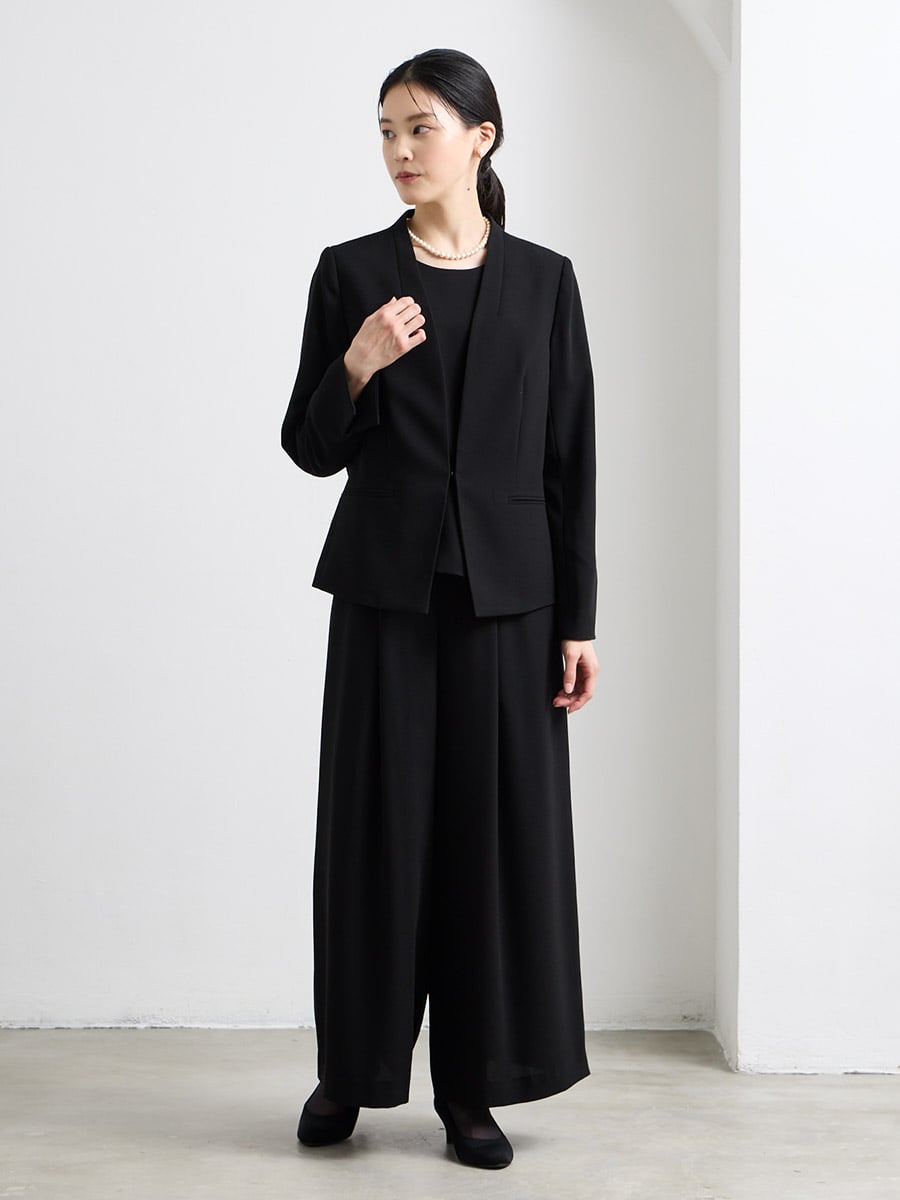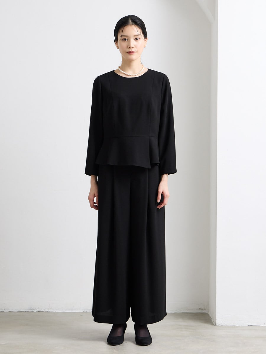 【喪服・礼服】【ウォッシャブル】ペプラムブラウス×ワイドパンツ×Vネックノーカラージャケット3点セット
