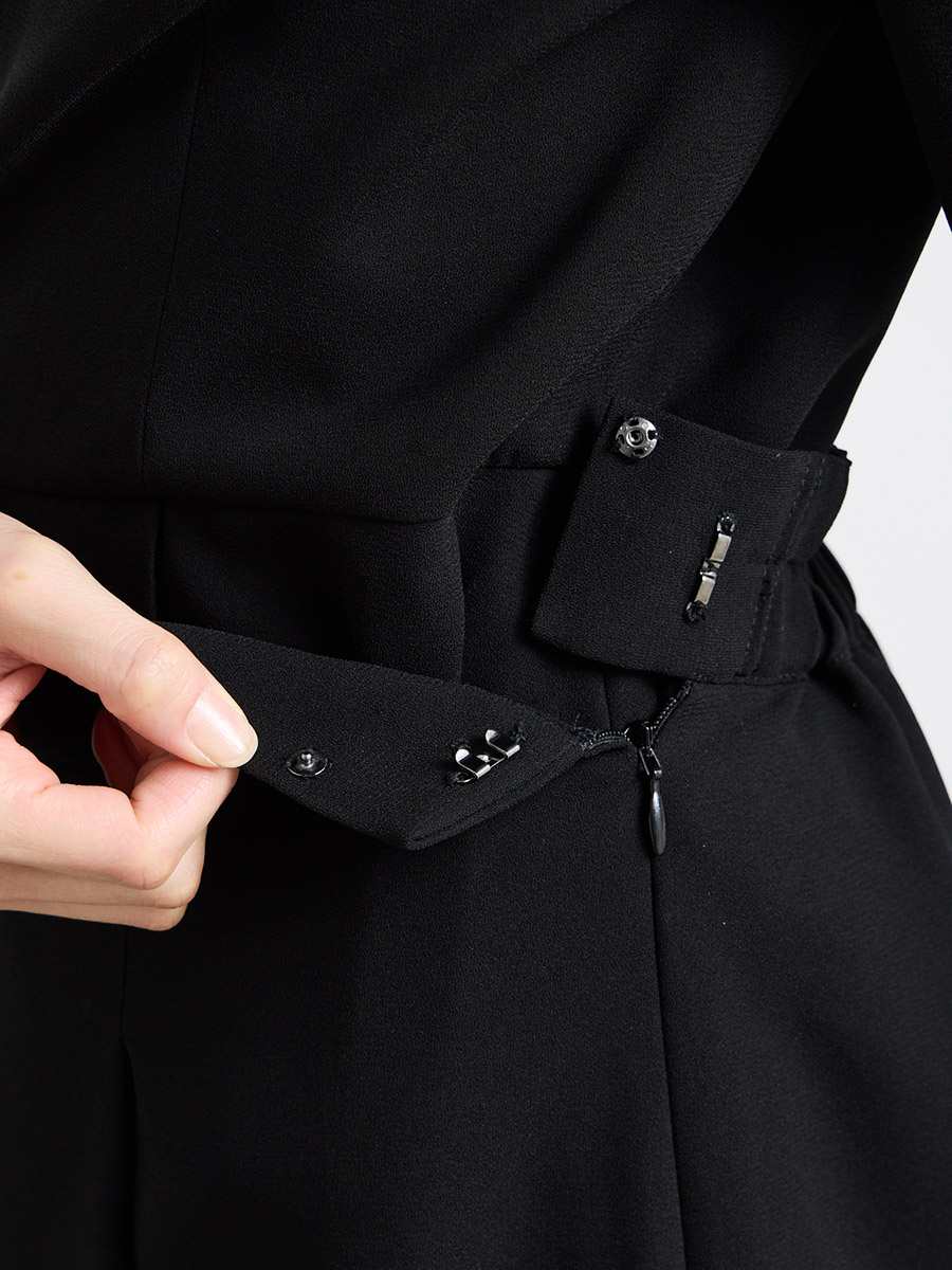 ・ウエストはワンホックで留められ、シャープな雰囲気に