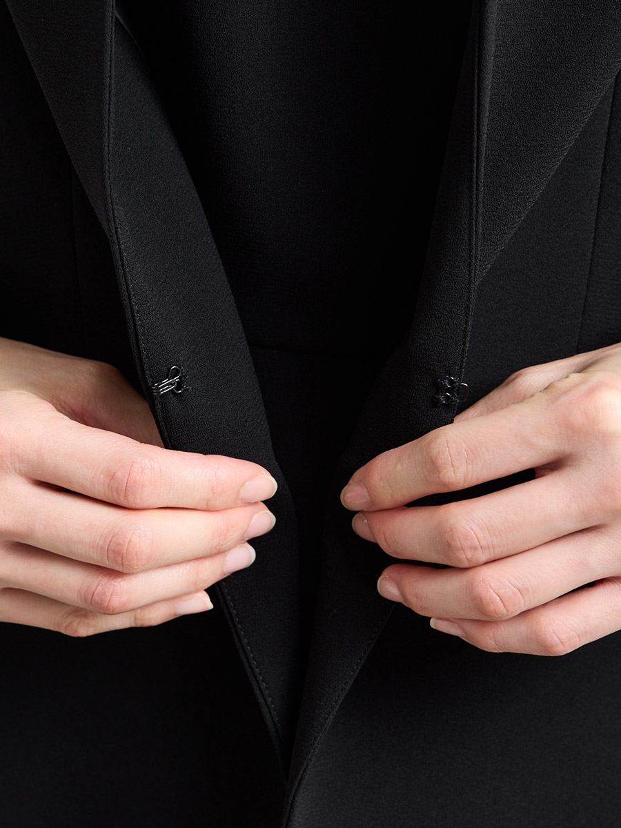 “ブラックフォーマル=喪服”というイメージを刷新するデザイン性を備えたフォーマルウェア。