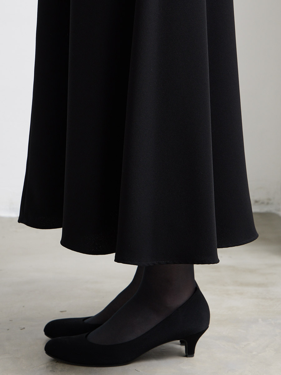 ・腰回りのボリュームを抑えたAラインスカートは、裾にかけてフレアを入れて自然な揺れ感を演出しエレガントな印象