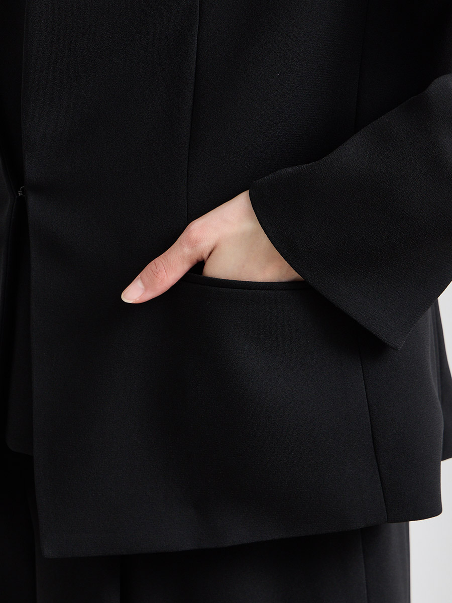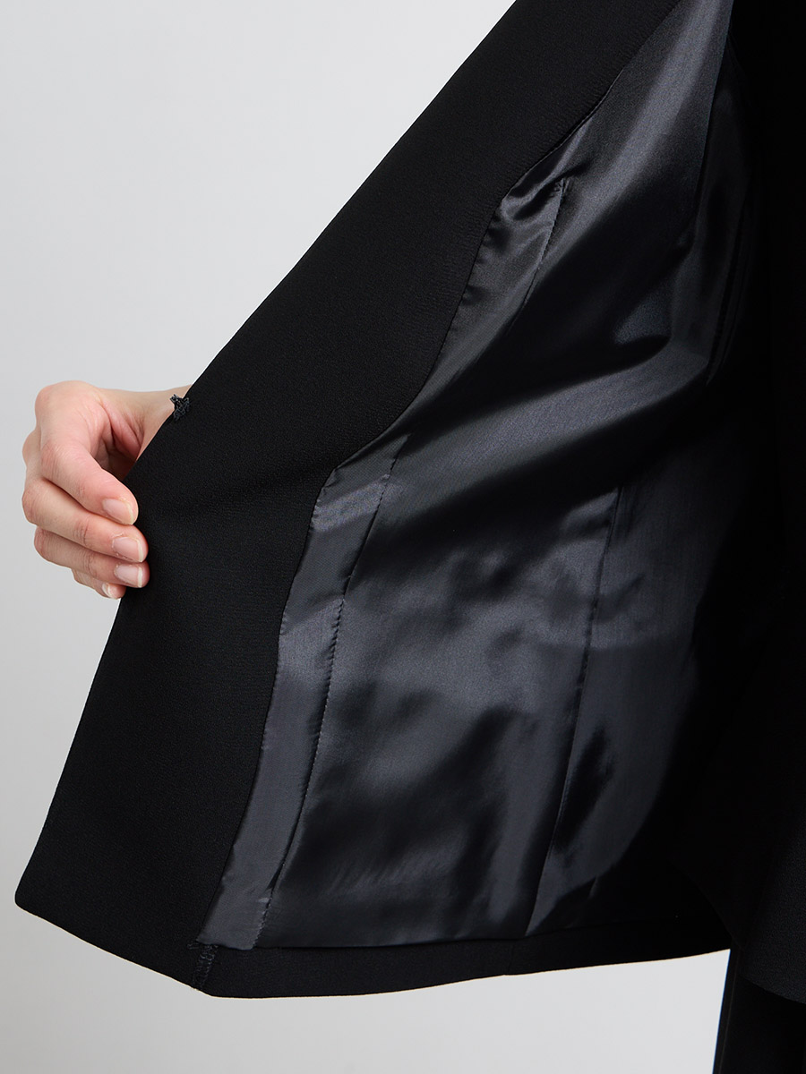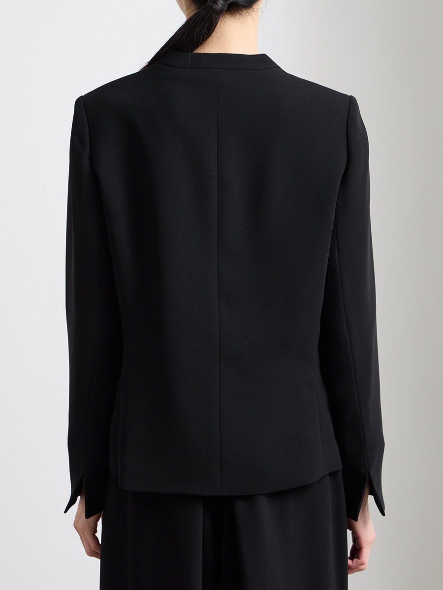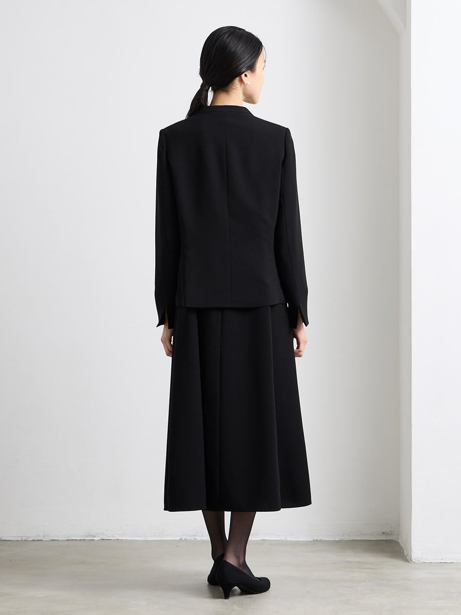 【喪服・礼服】【ウォッシャブル】アシンメトリータックテントラインブラックワンピース×Vネックノーカラージャケット2点セット