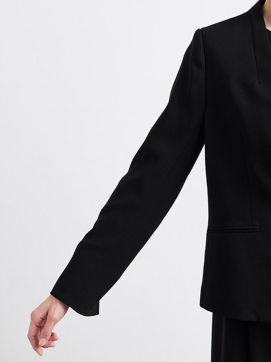 ・顔周りをすっきり見せる、深めのVラインのノーカラーデザイン