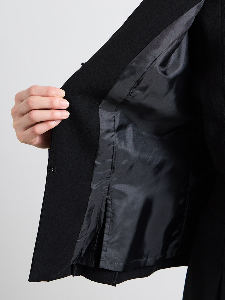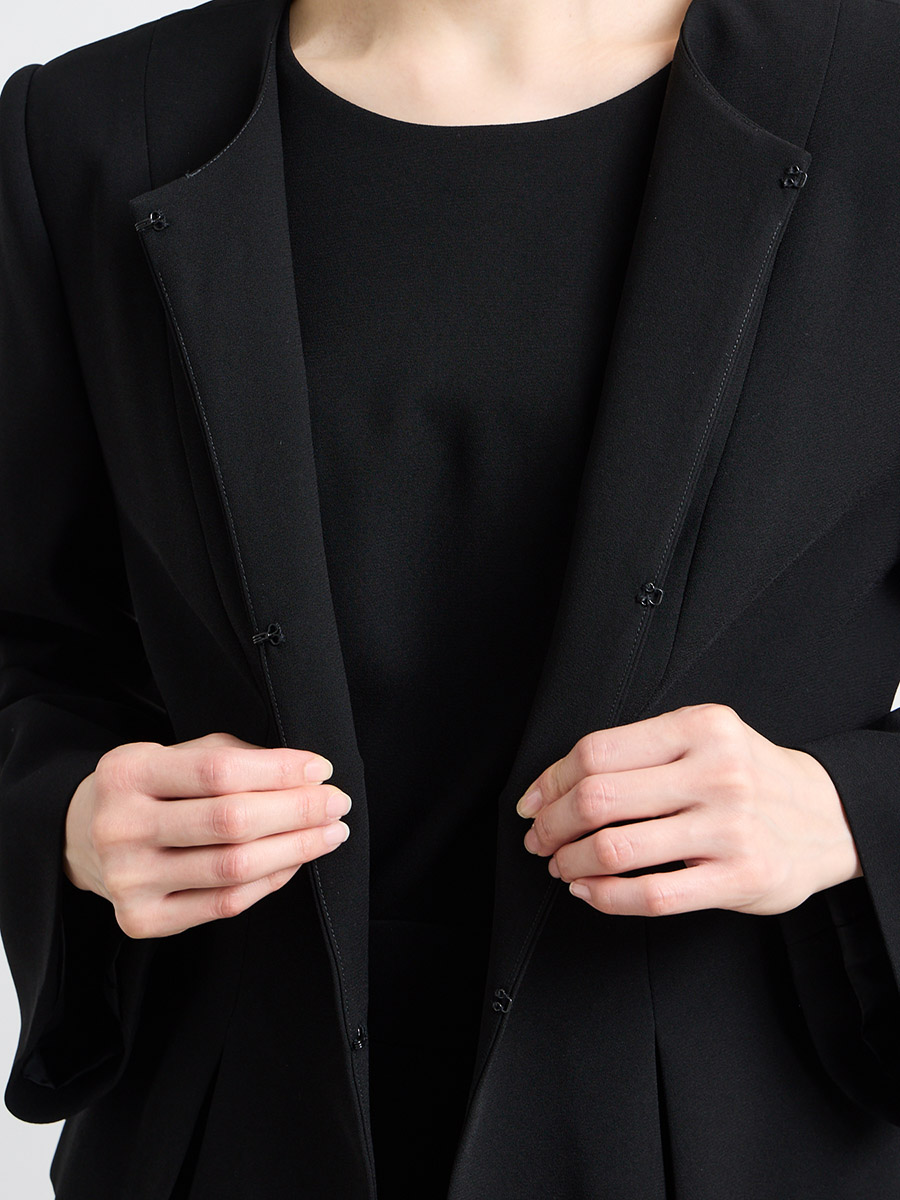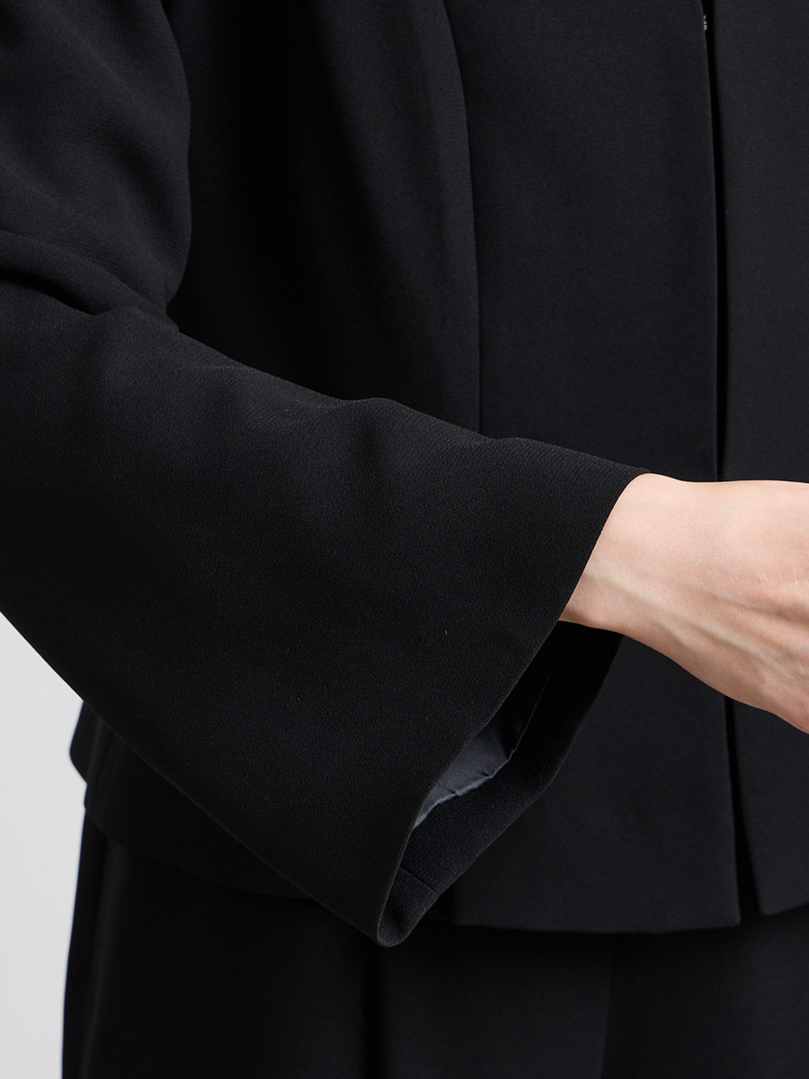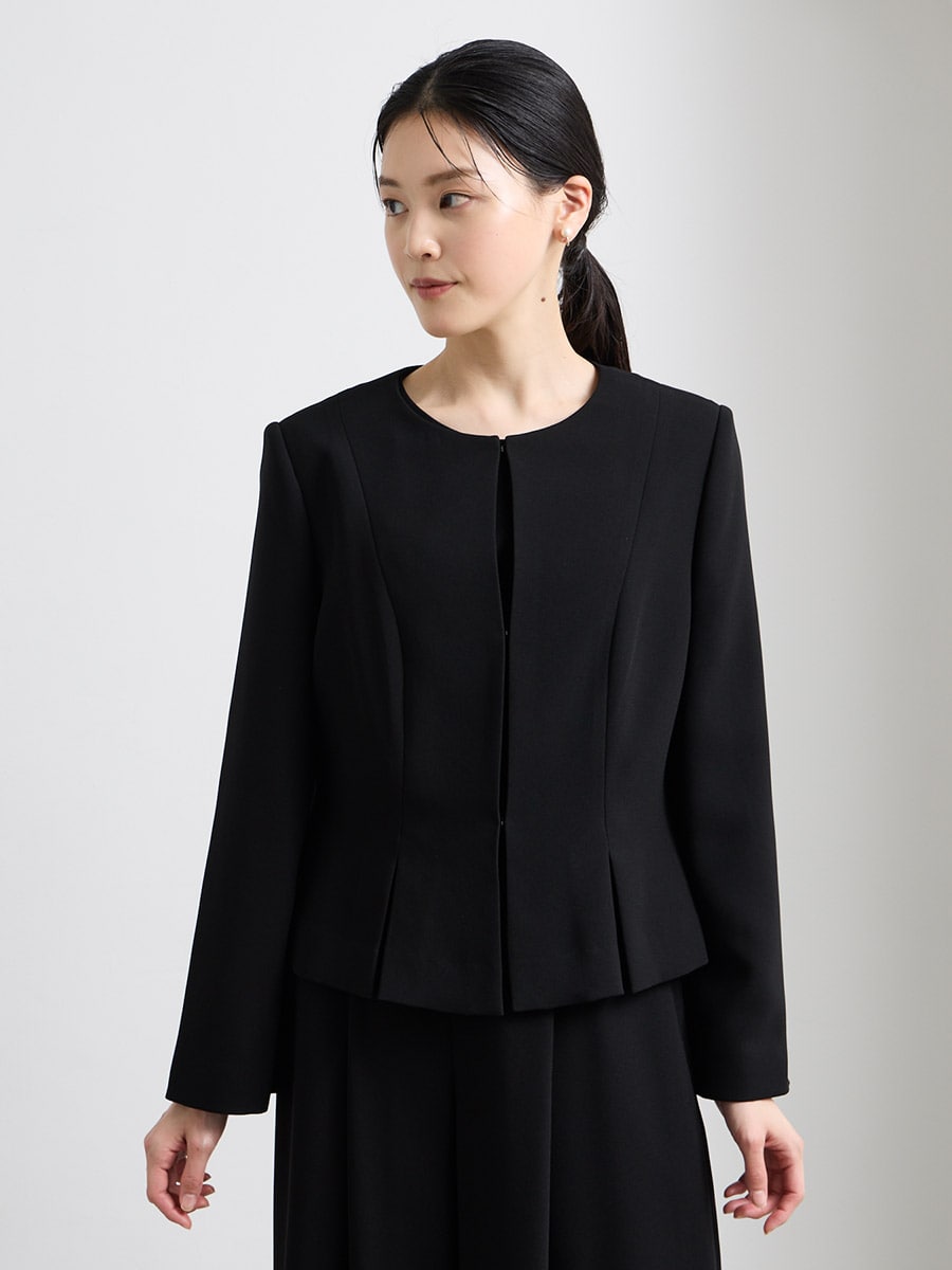 【喪服・礼服】Vネック前開きAラインブラックワンピース×ノーカラーボックスタックジャケット2点セット