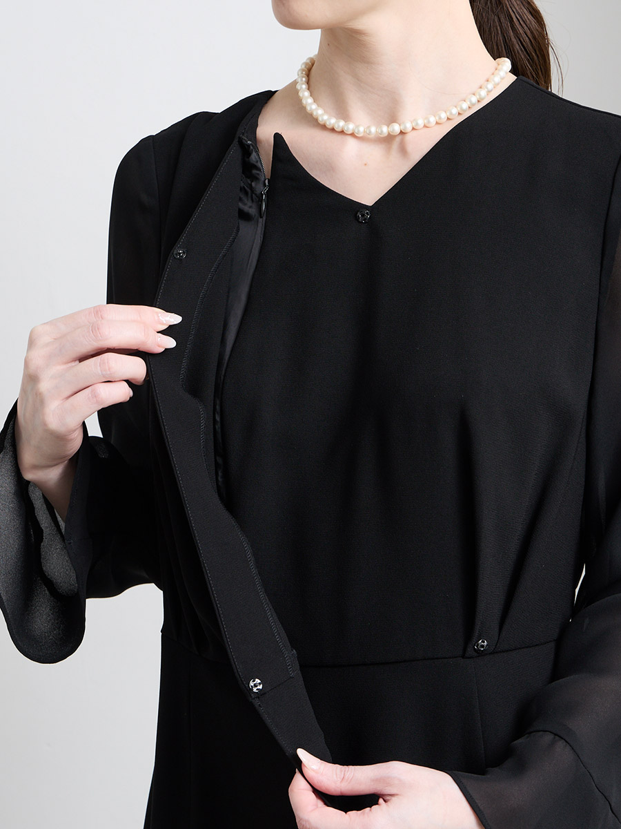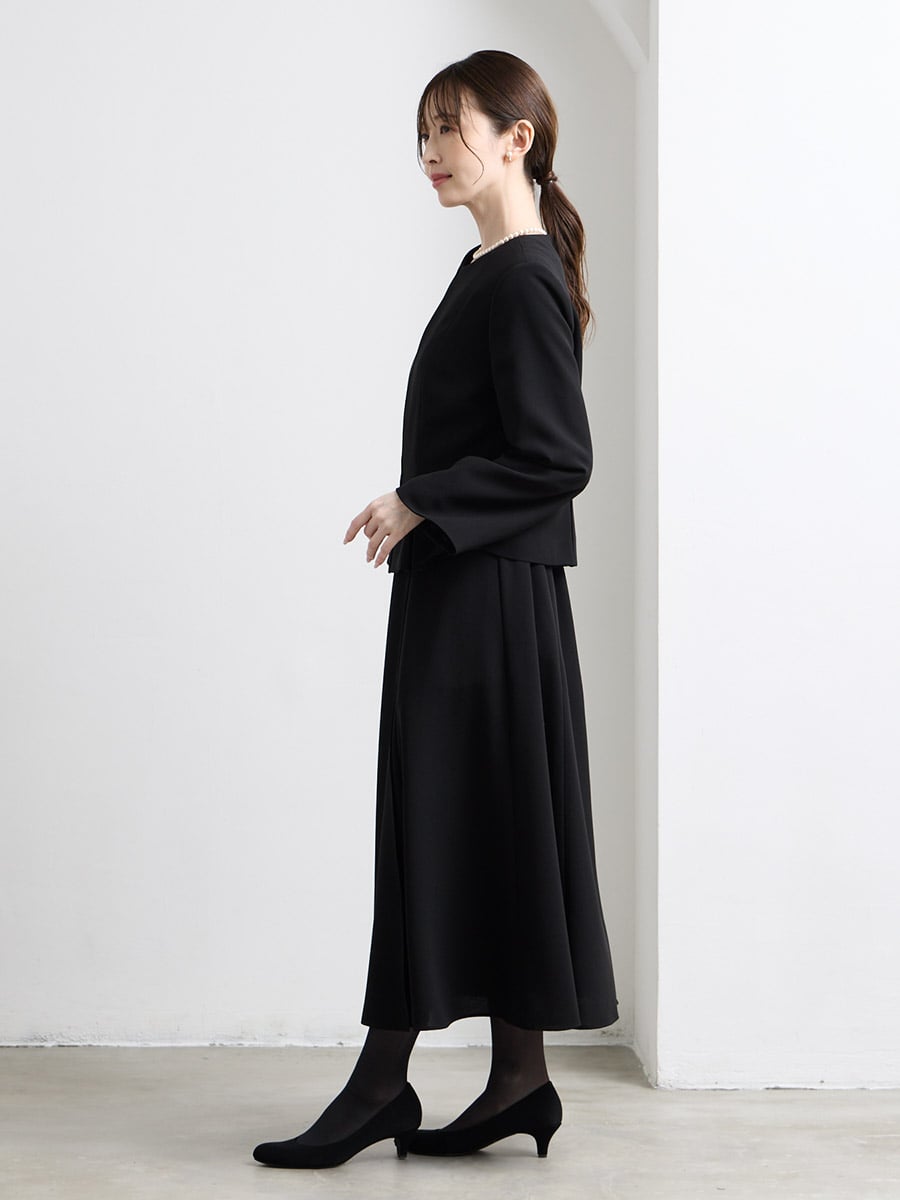 喪服としてはもちろん、卒業式などのセレモニーやあらたまった席でのフォーマルスタイルにも活躍するデザインです。