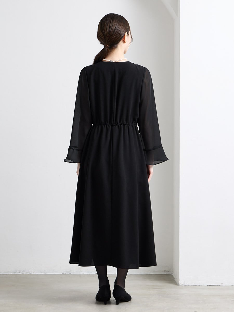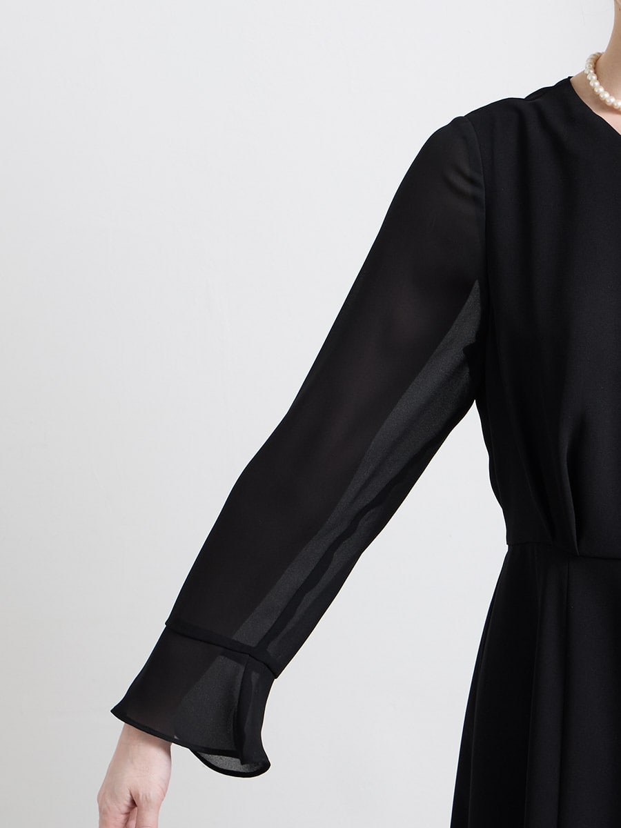 ・袖は控えめな透け感のシフォンを使用し、柔らかく上品な印象