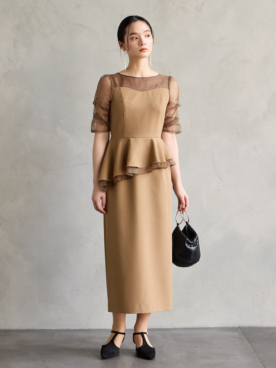 【WEB/Aimer Acret店限定】シャンブレーオーガンスリーブペプラムドレス
