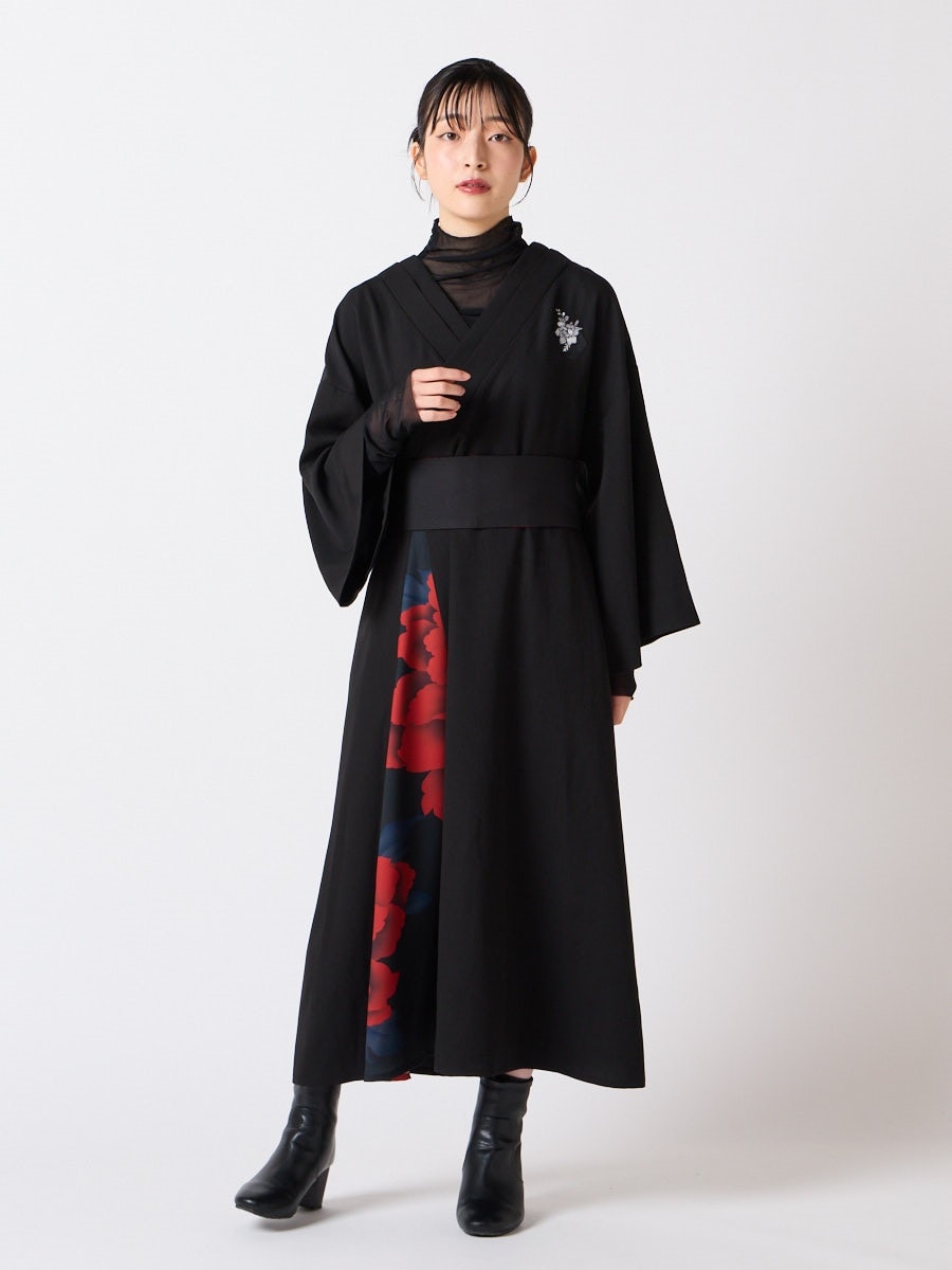キャロル・妖 ベルト付き着物衿刺繍ワンピース