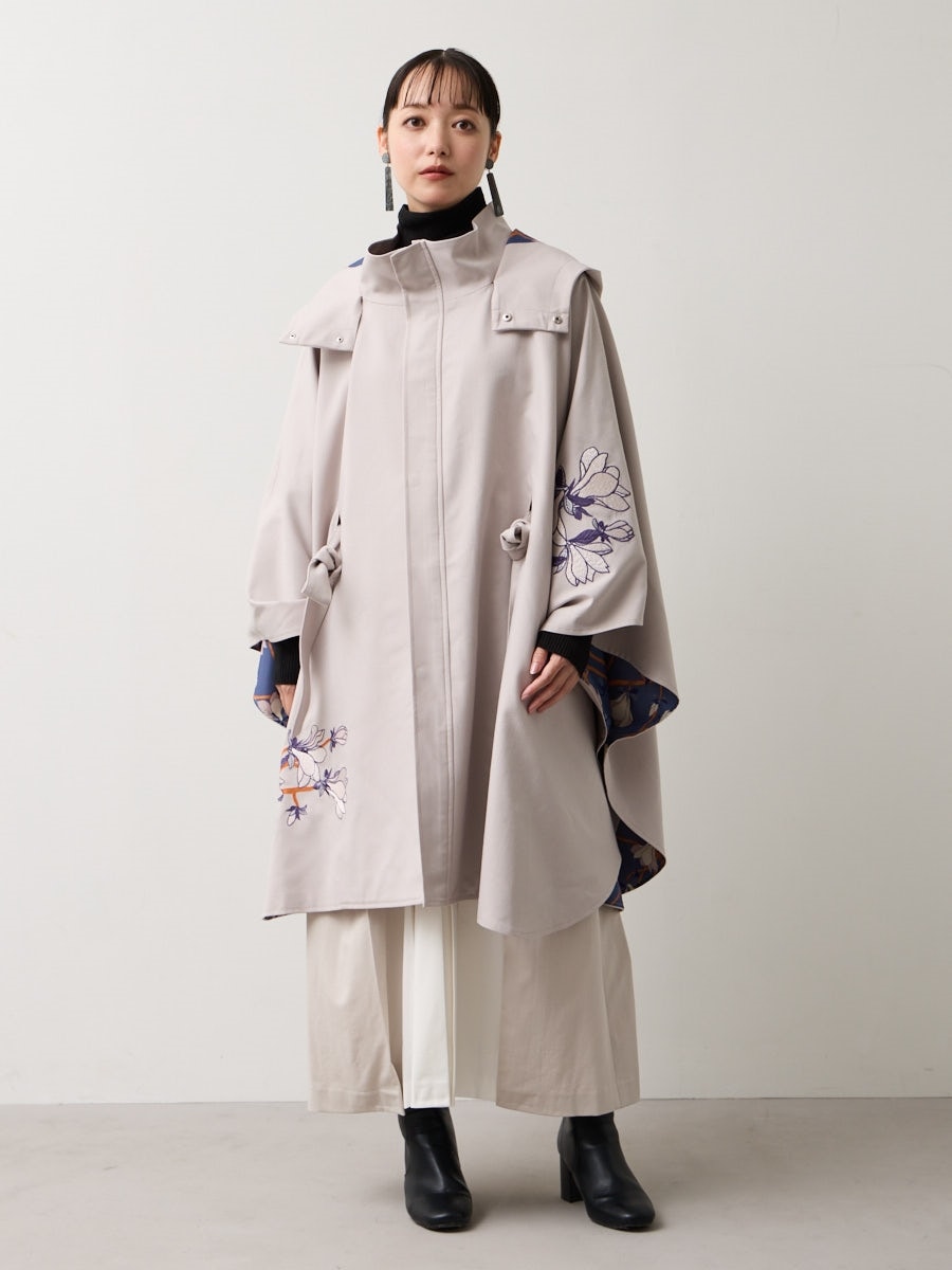 籠木蓮刺繍冬ケープ