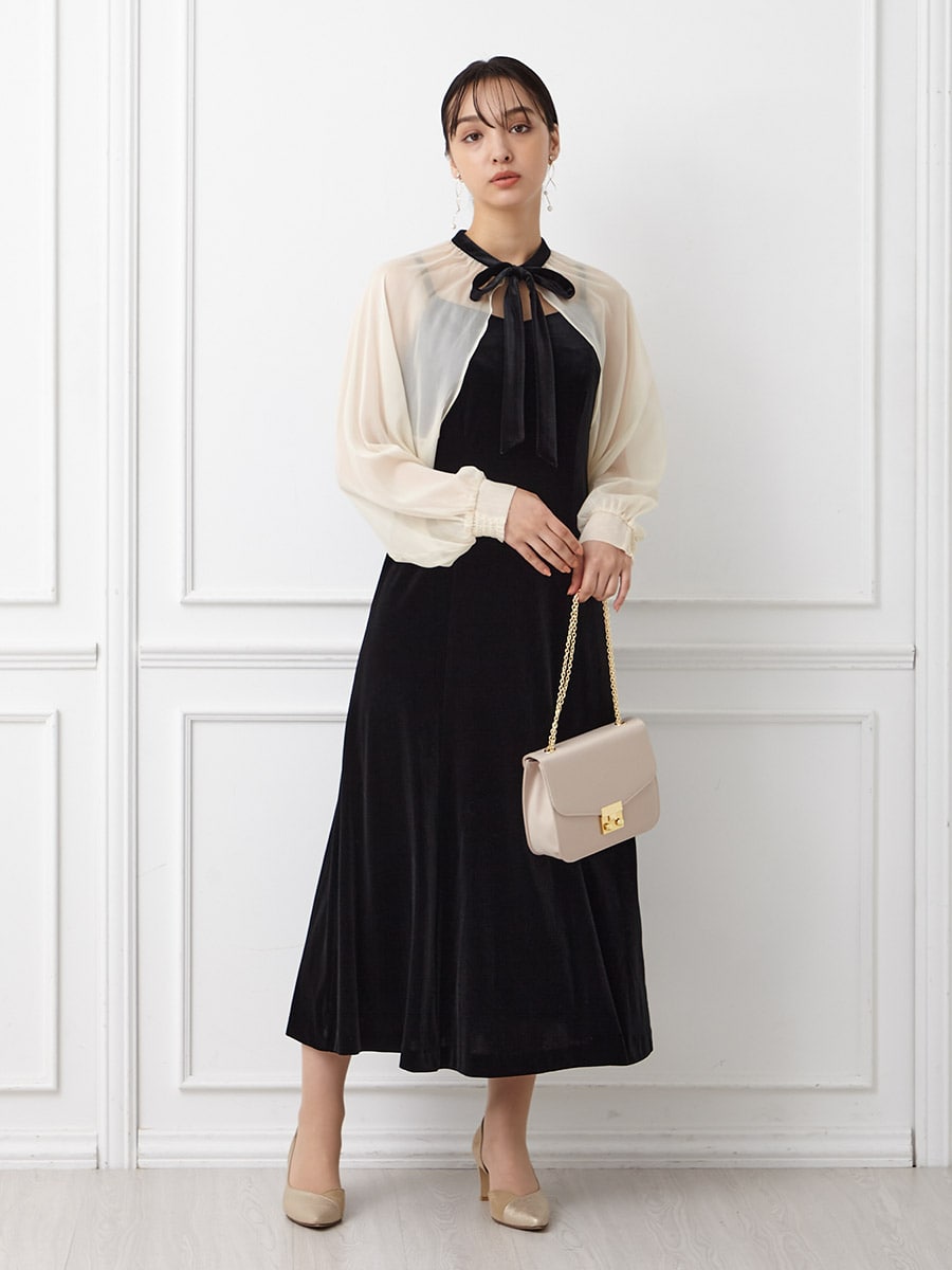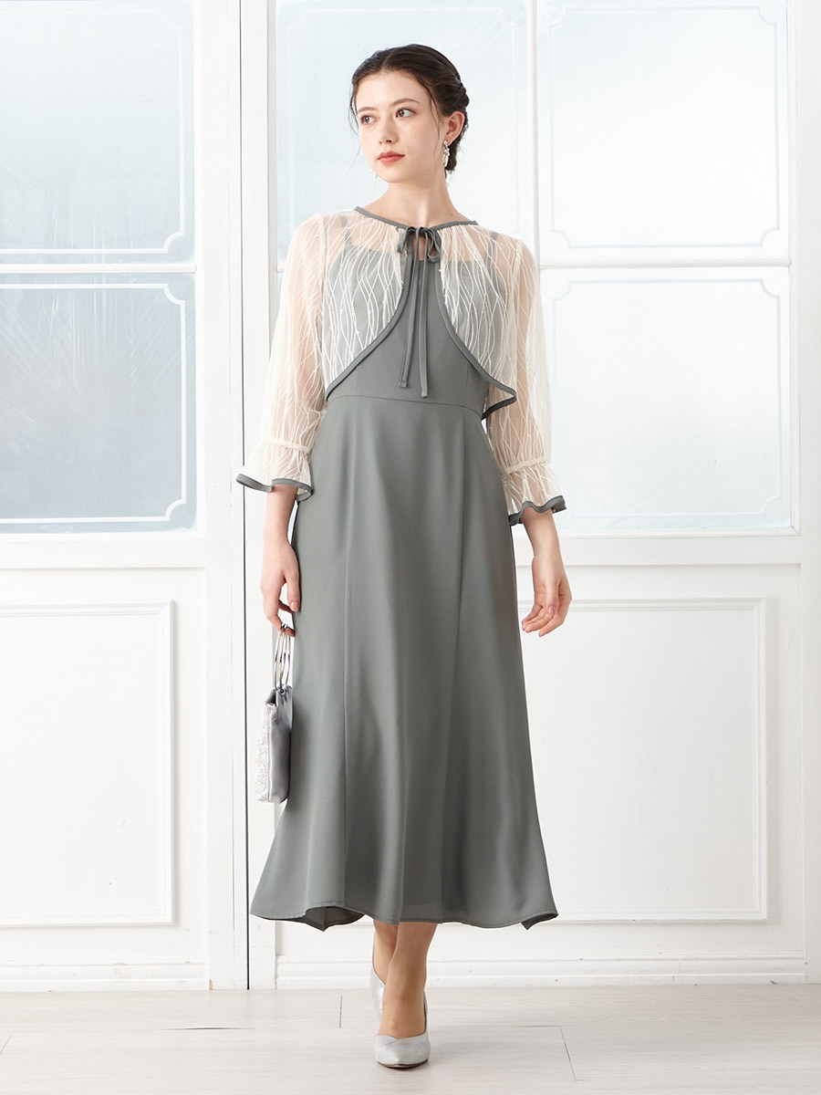 2WAY線描フラワー刺繍ボレロセットドレス