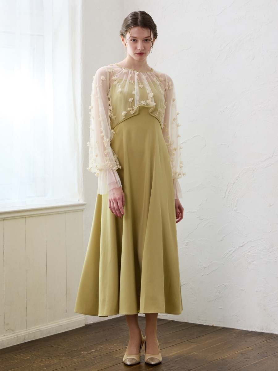 エンブロイダリーチュールパイピングドレス