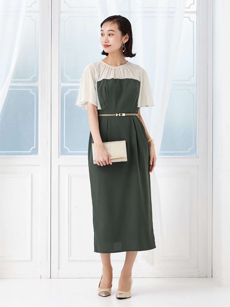 【WEB限定】チュールブラウス×配色フリルIラインドレス2点セット