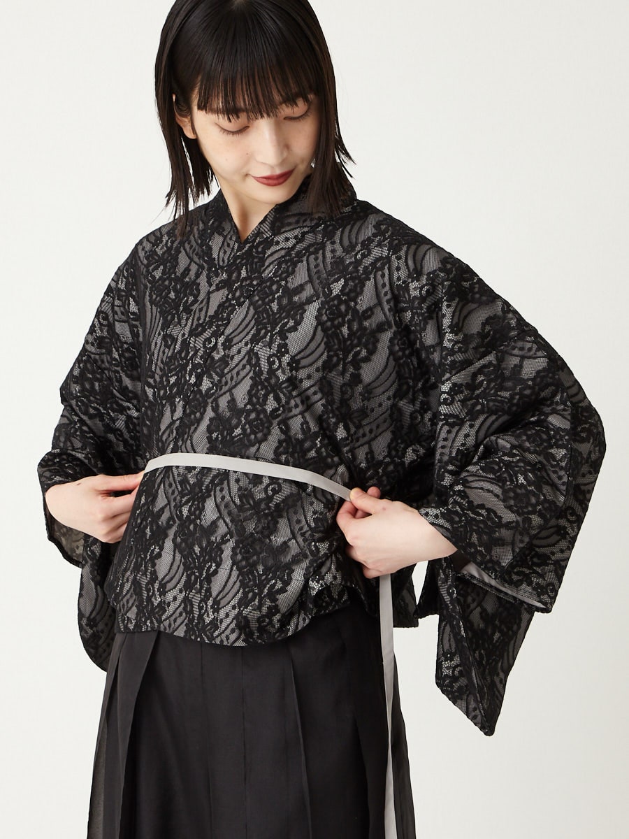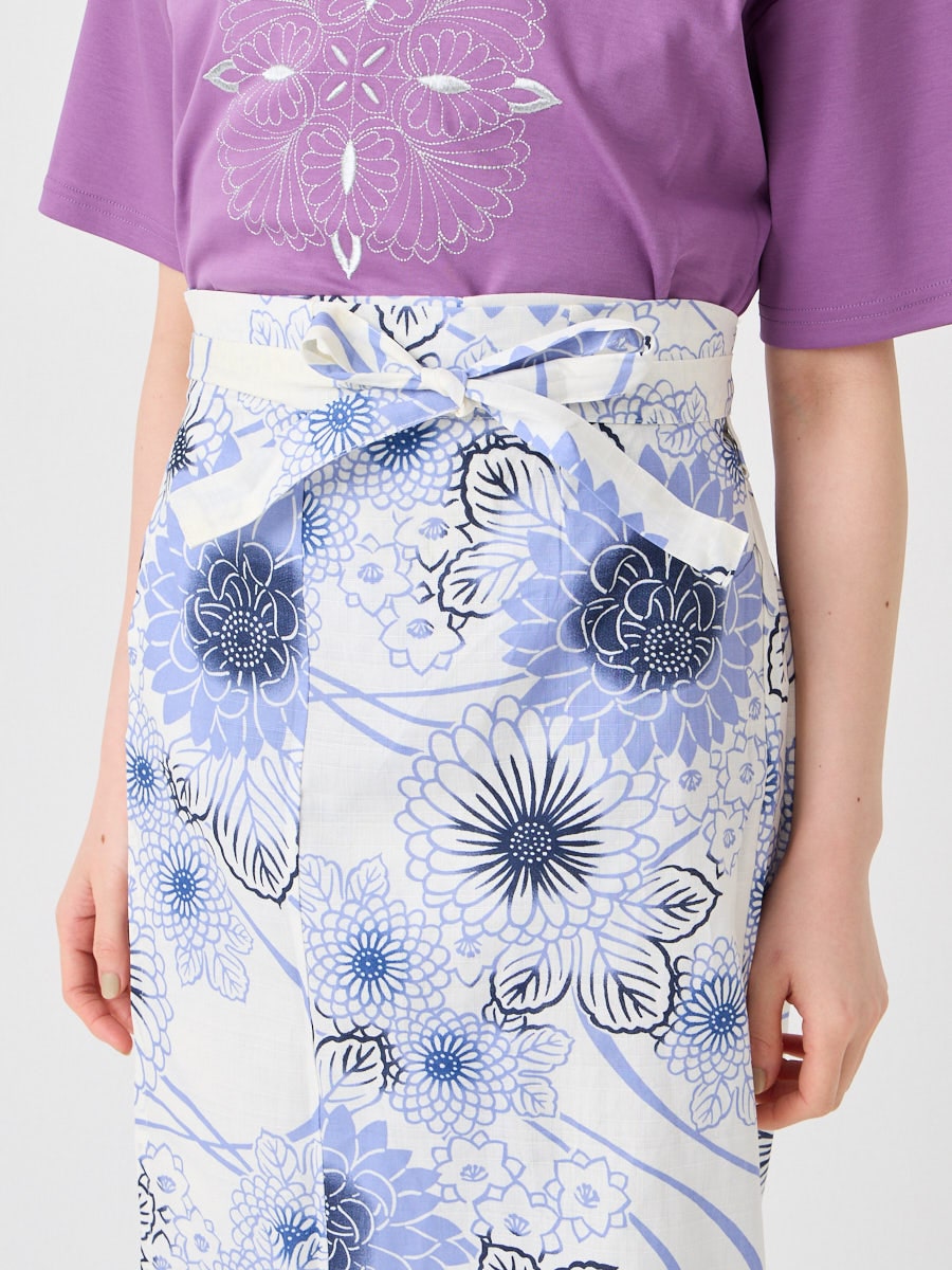1.右見頃、左見頃の順で巻き付けます。裾が広がらないように着用するのがポイント。