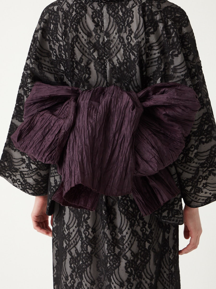 5.帯はちょうちょ結びでOK!リボンの下に垂れた部分後ろに回して上から出し、結び目を隠すように整えて完成です。