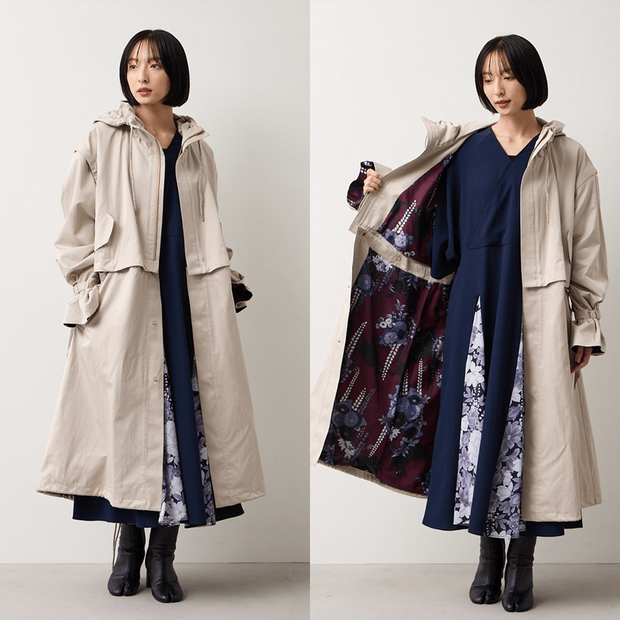 ハンサムだけど女っぽさも漂うトレンチコートや、さらっとこなれるフーディガンで対策!