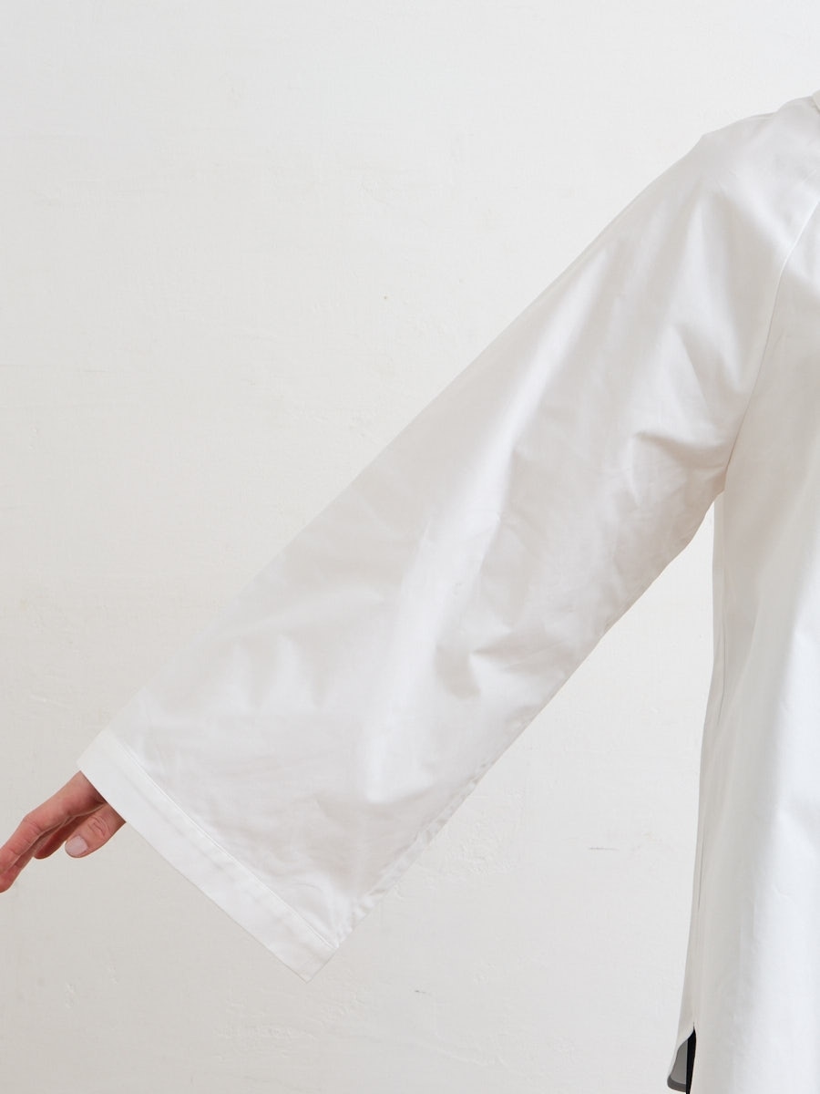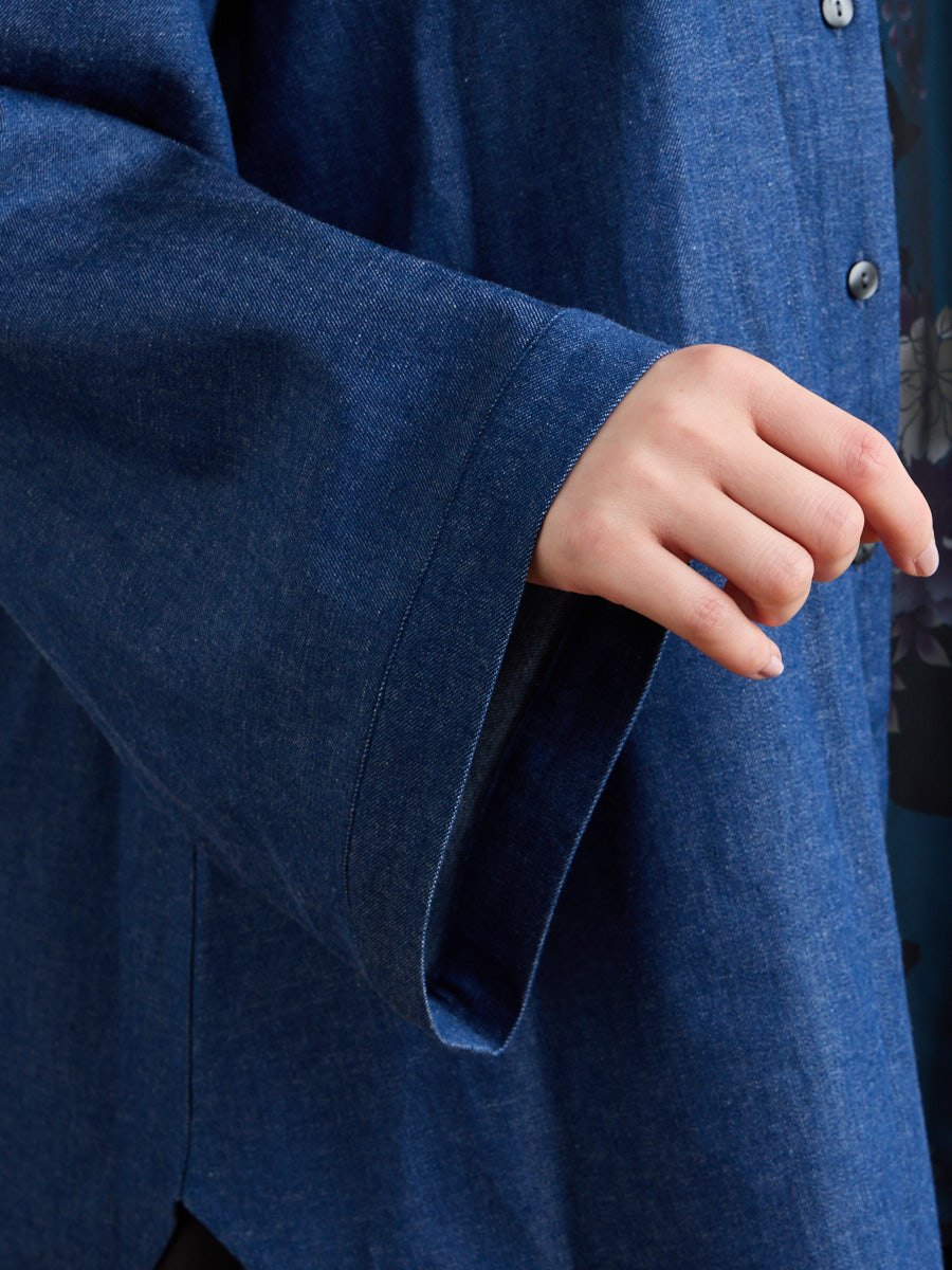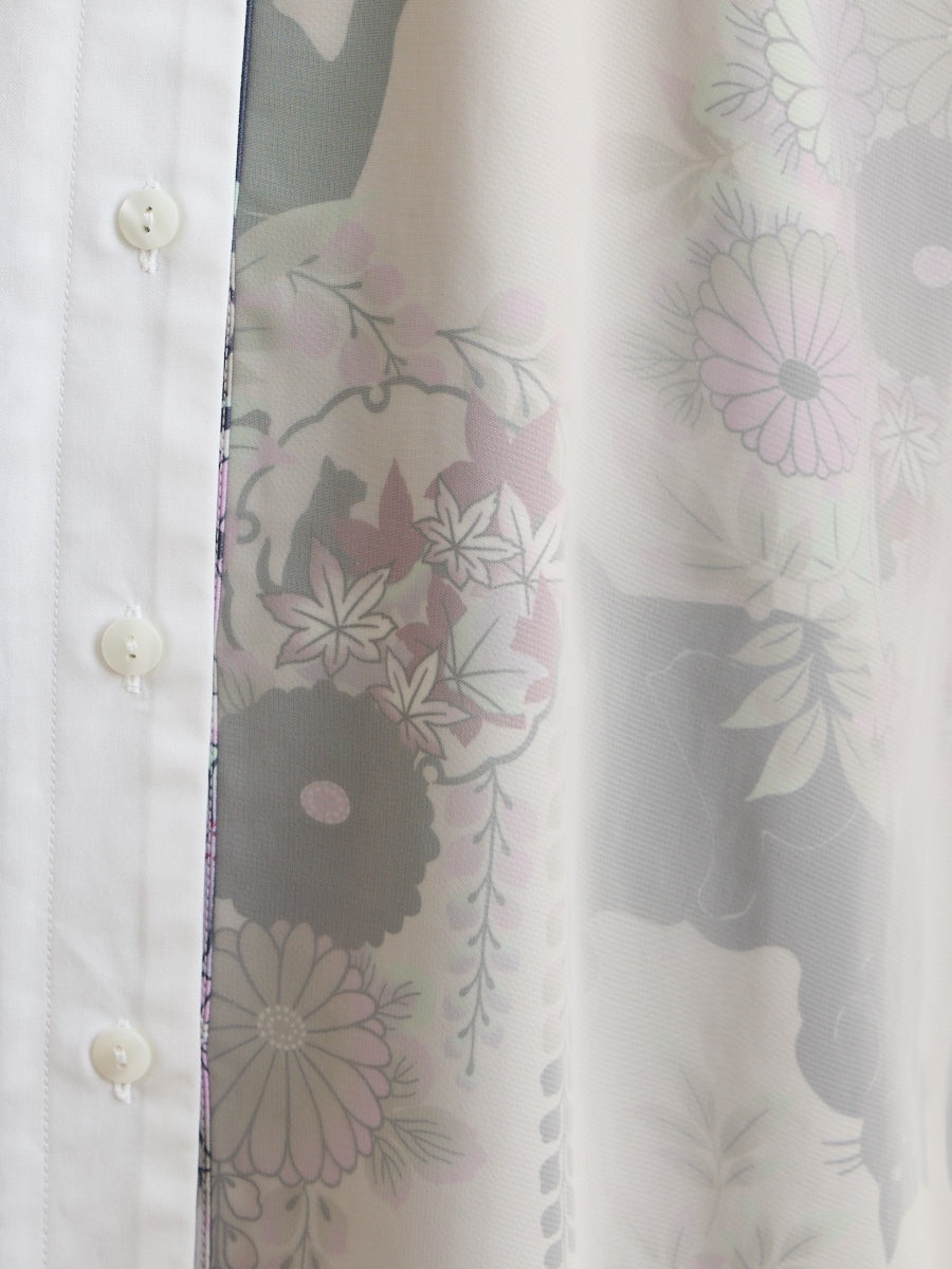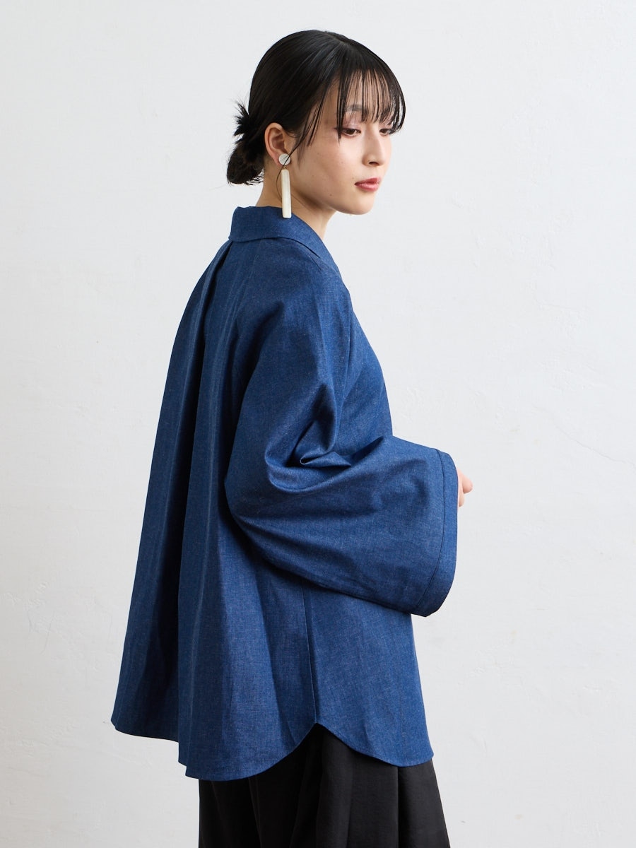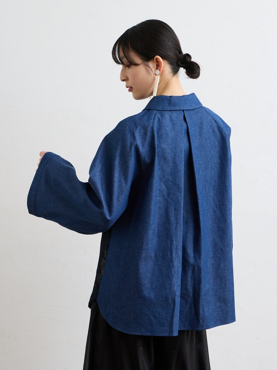 テキスタイル「夜空猫」の新色を使用した、シャツブラウスです。