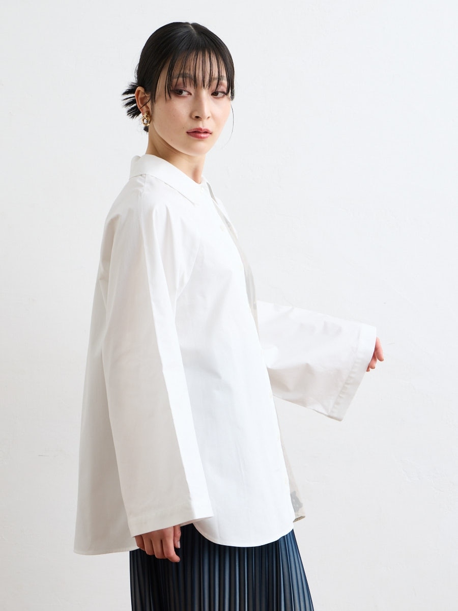 ほどよくゆとりのあるシンプルなシルエットで、首まわりも締め付け感なく、自然体で着用できるデザイン。