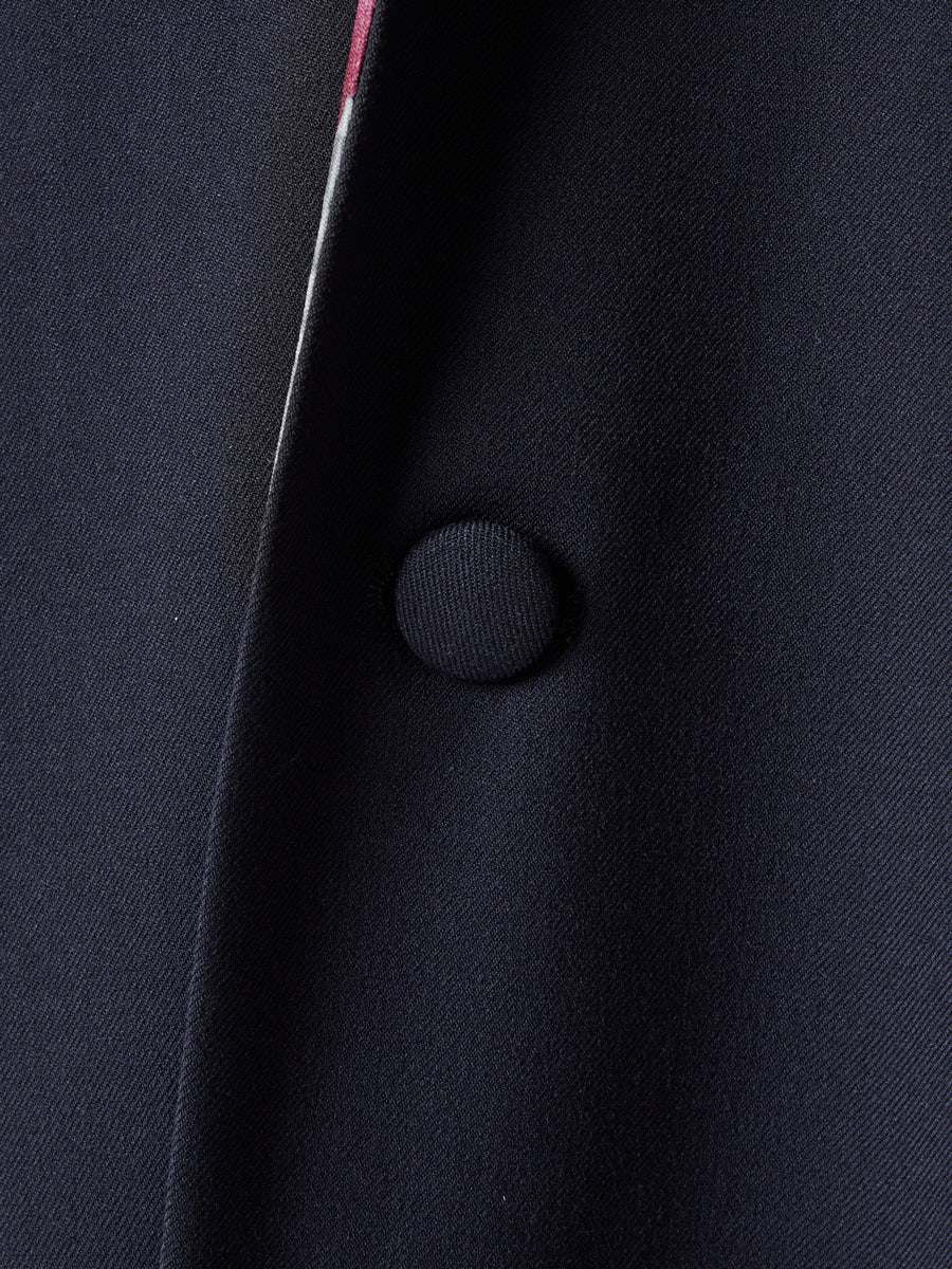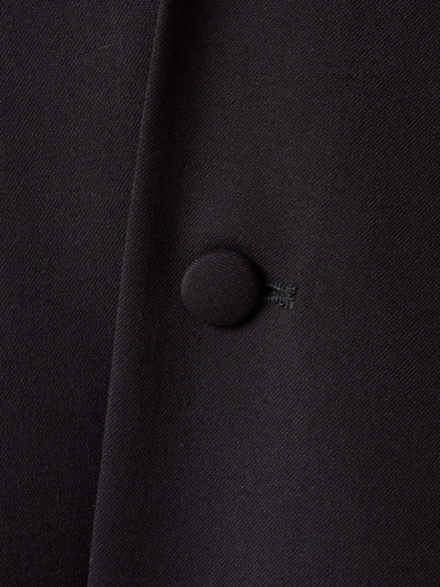 フラットな衿のデザインがデコルテラインをすっきりと見せ、上品で洗練された印象に仕上げてくれます。