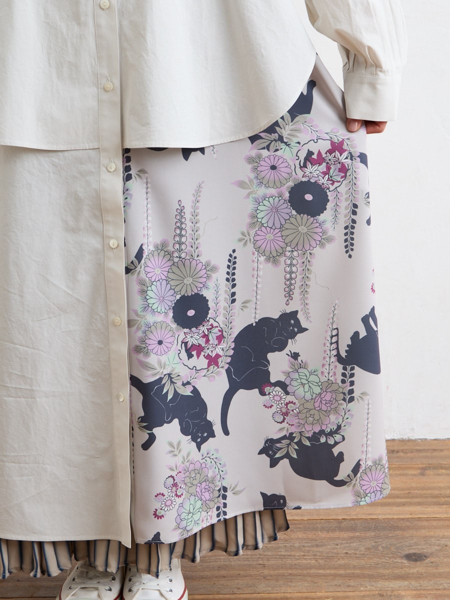 深みのある夜空色は、花々と黒猫のシルエットが際立つ、凛とした印象。
