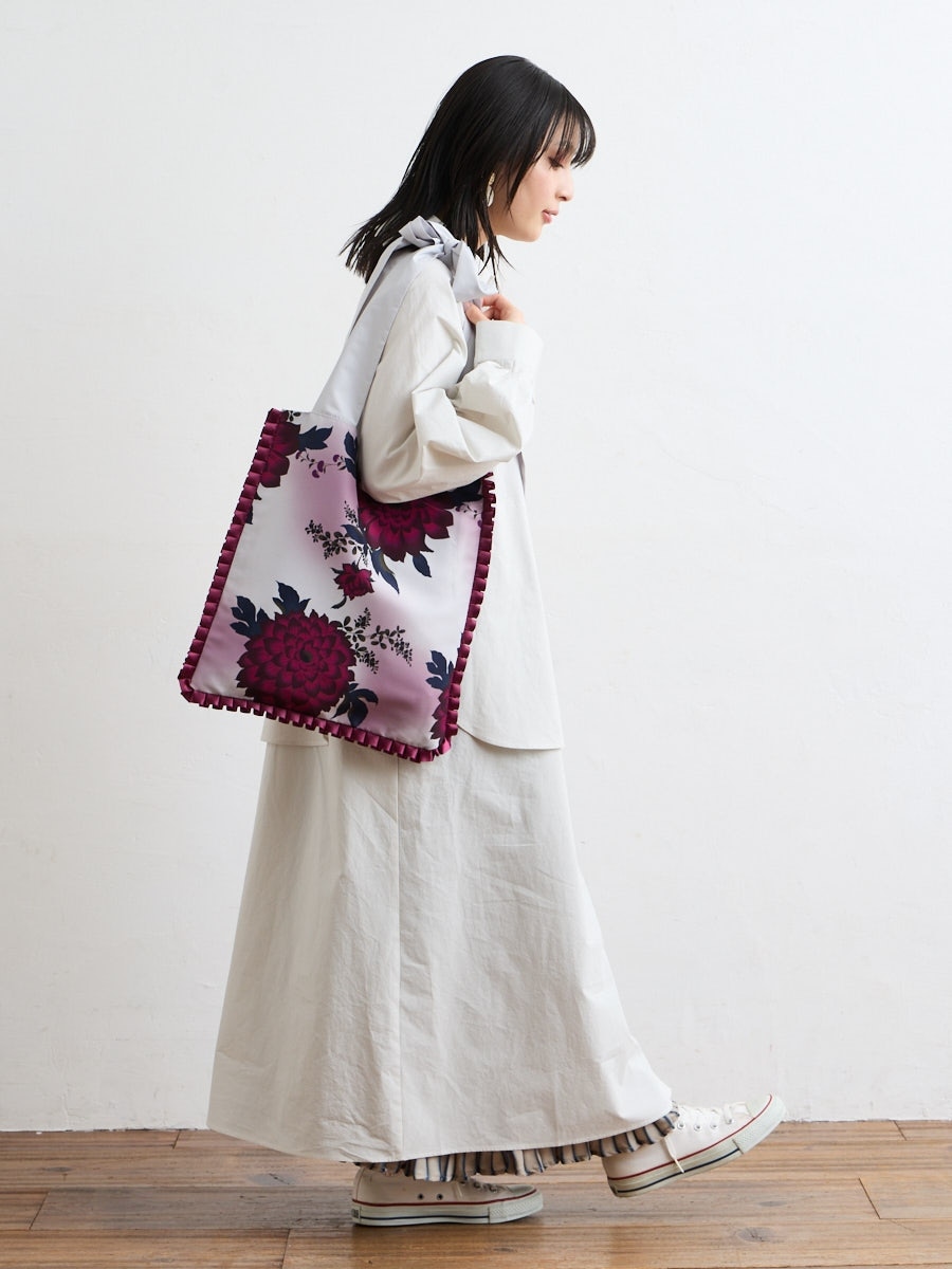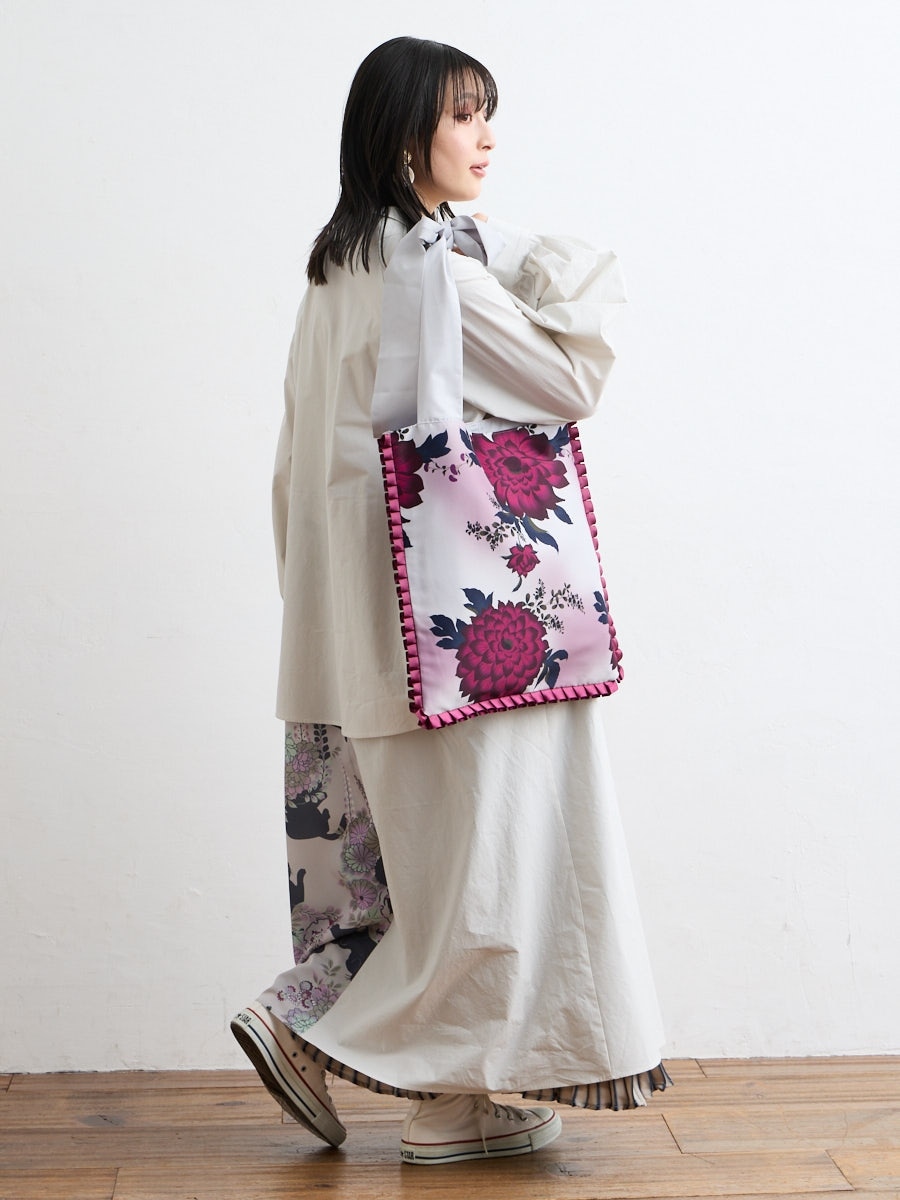 テキスタイルは片身に配置し、主張しすぎないデザインながら、さりげなくふりふらしさを感じられる一枚です。