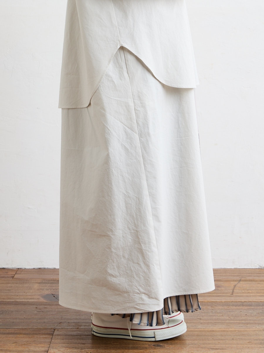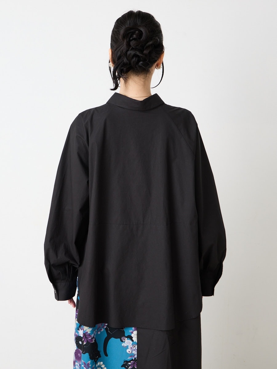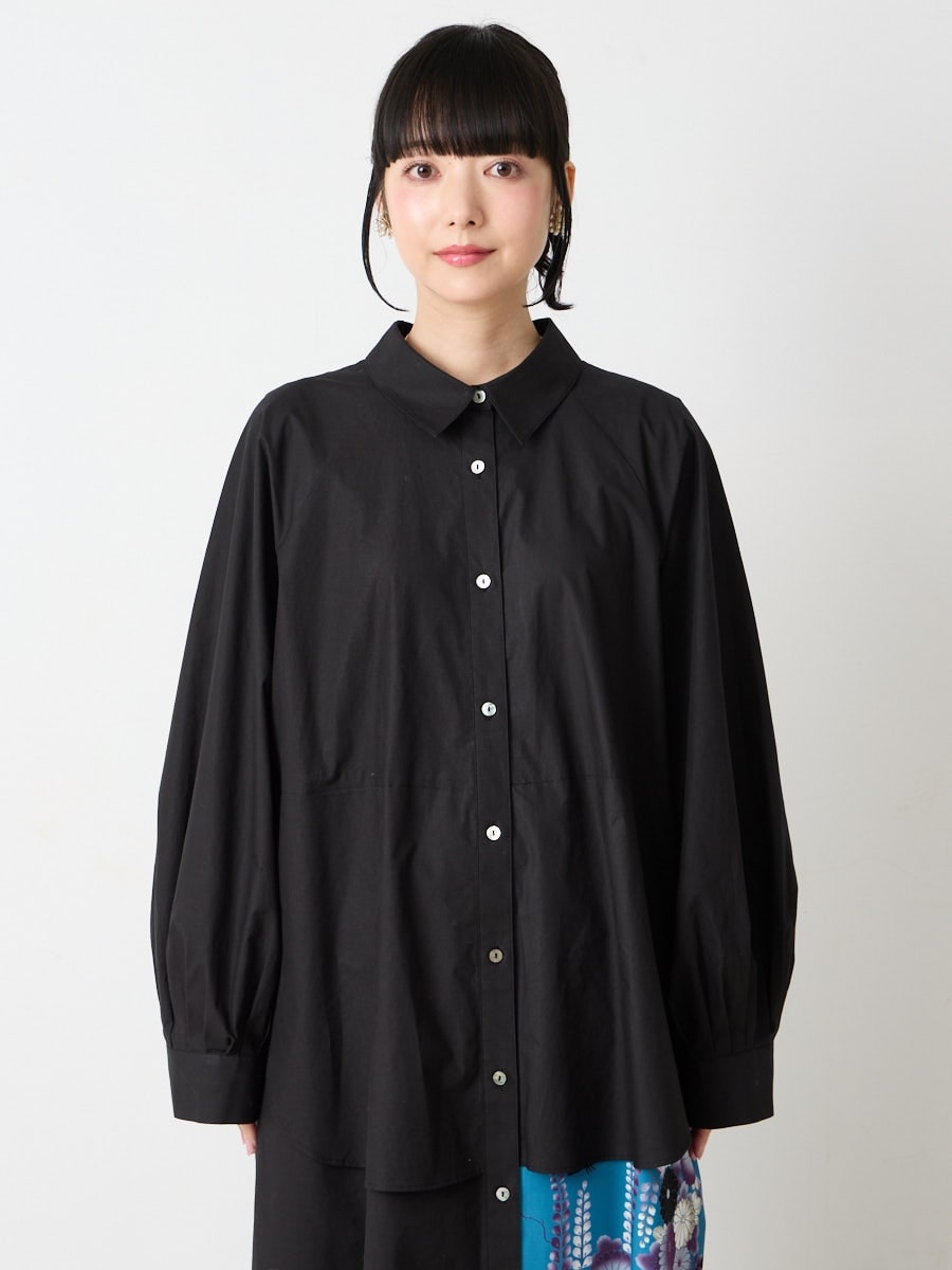 ゆったりとしたシルエットで、身体のラインを拾いにくく、一枚ではもちろん、前を開けて羽織としてもご着用いただけます。