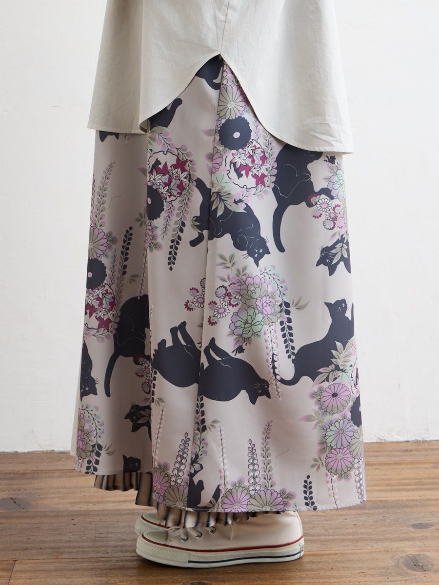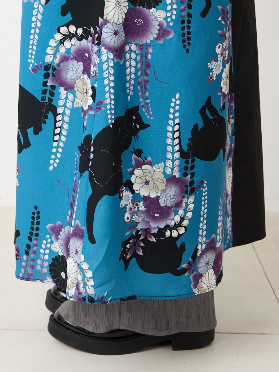 深みのある夜空色は、花々と黒猫のシルエットが際立つ、凛とした印象。