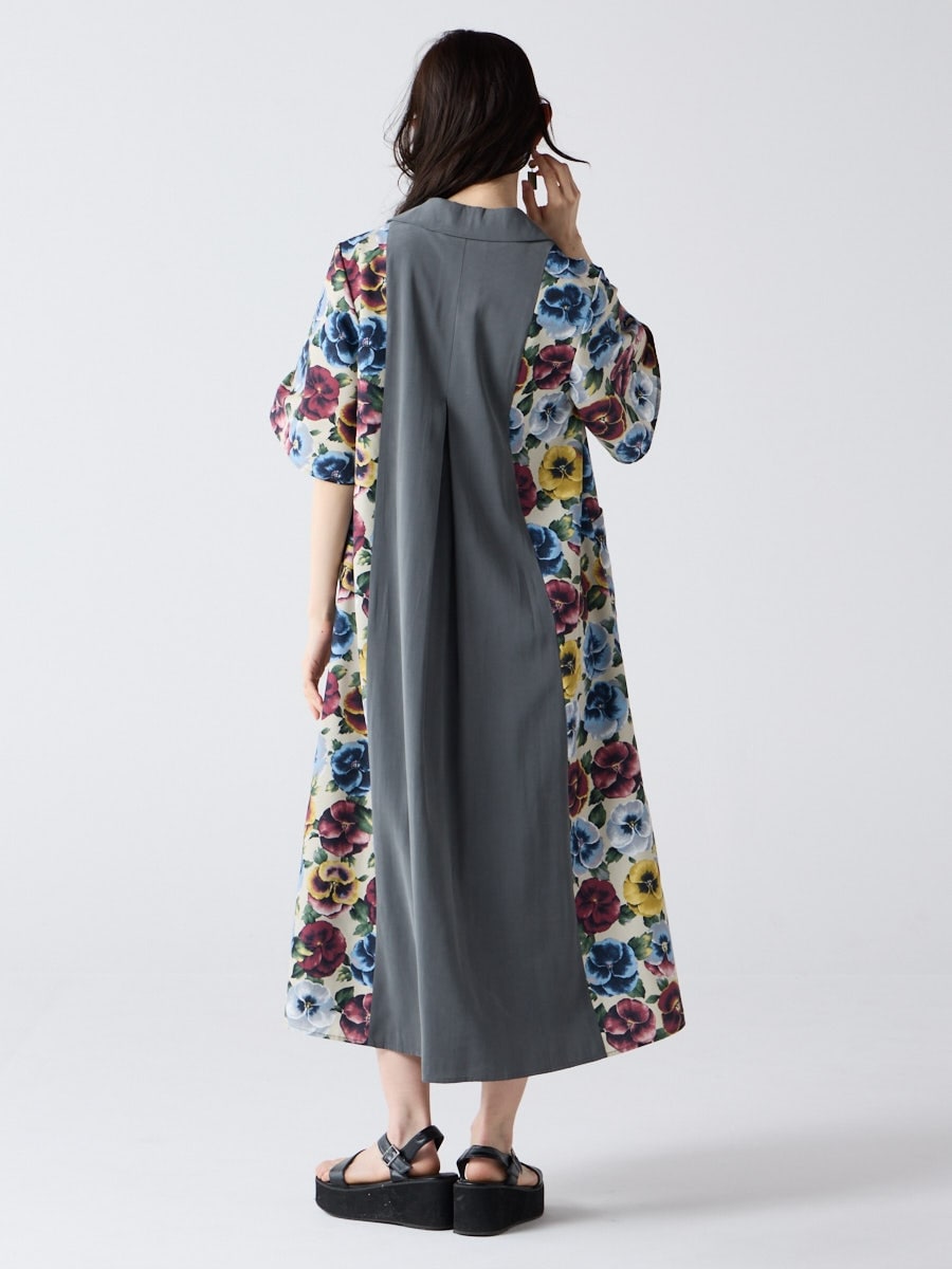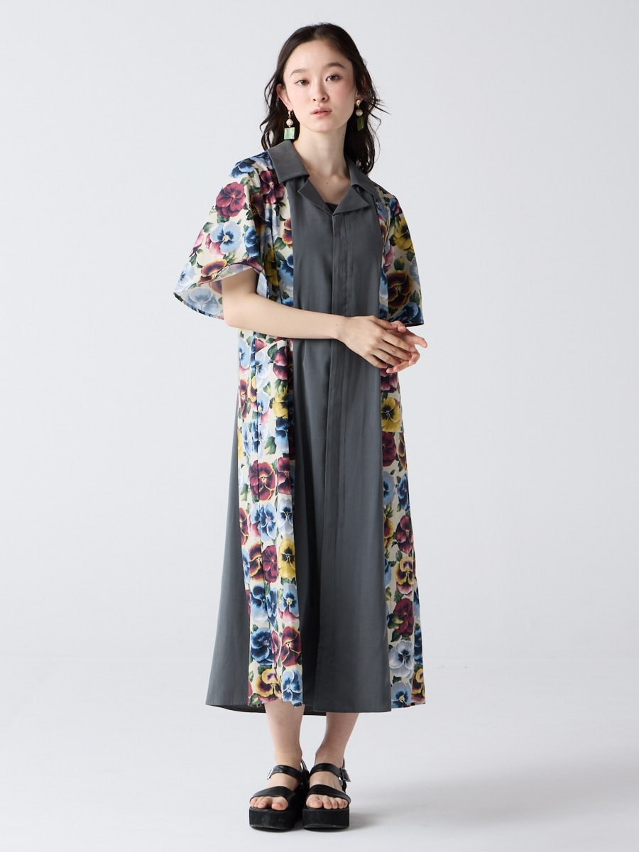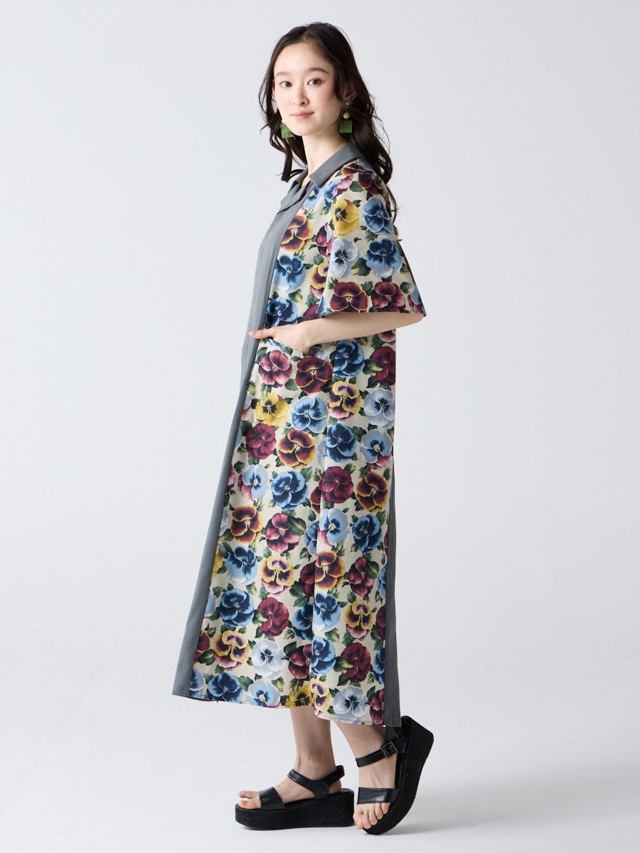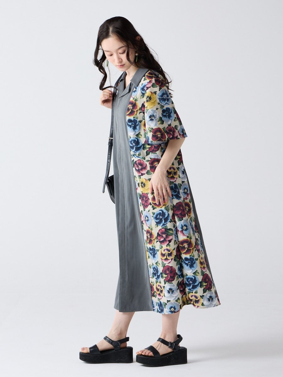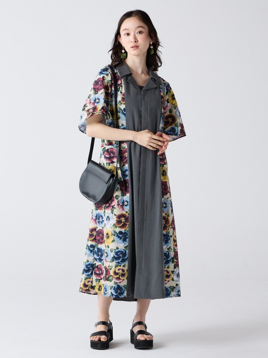 パンジー柄で描く、洗練されたモード休日ワンピース。