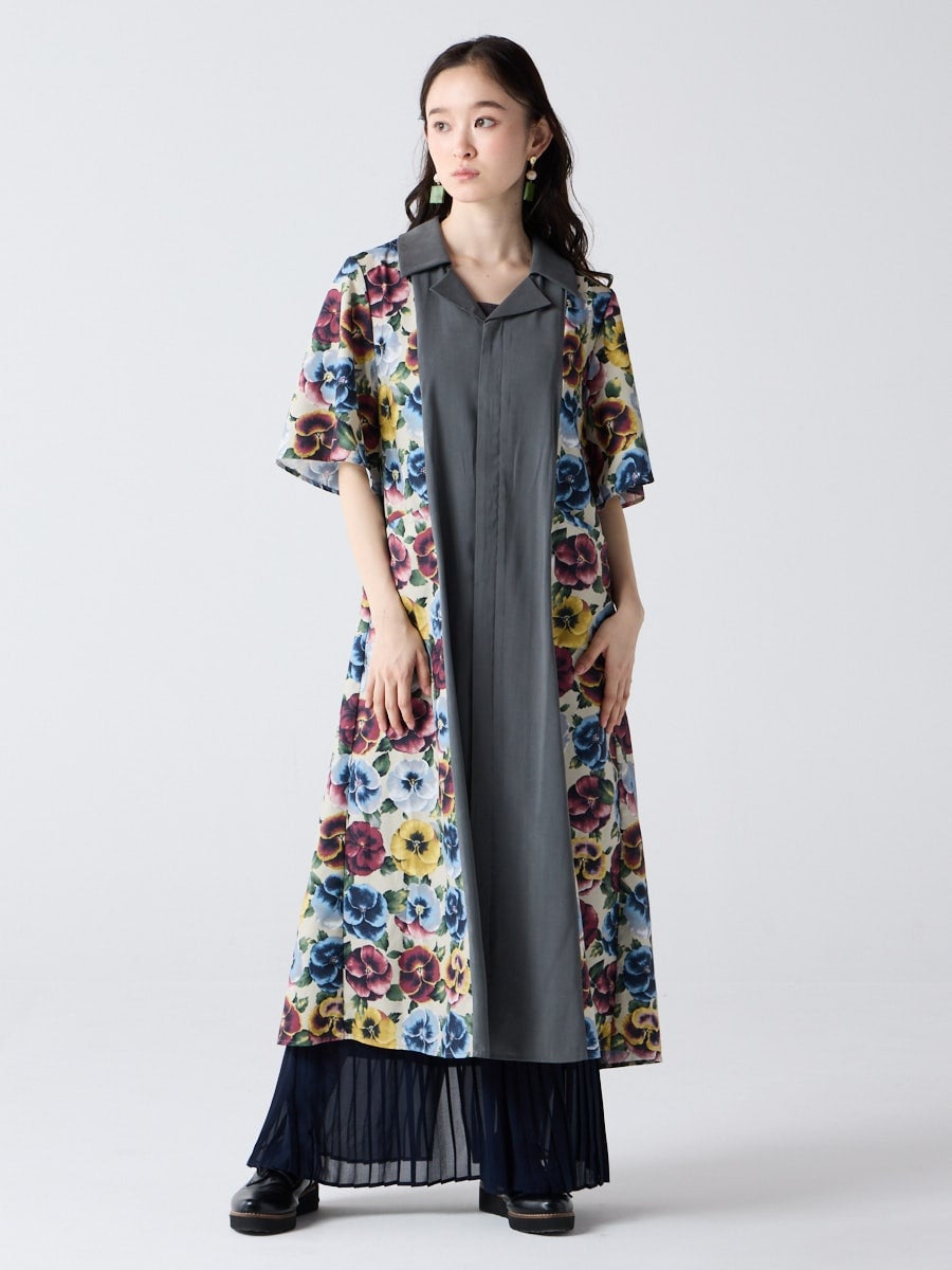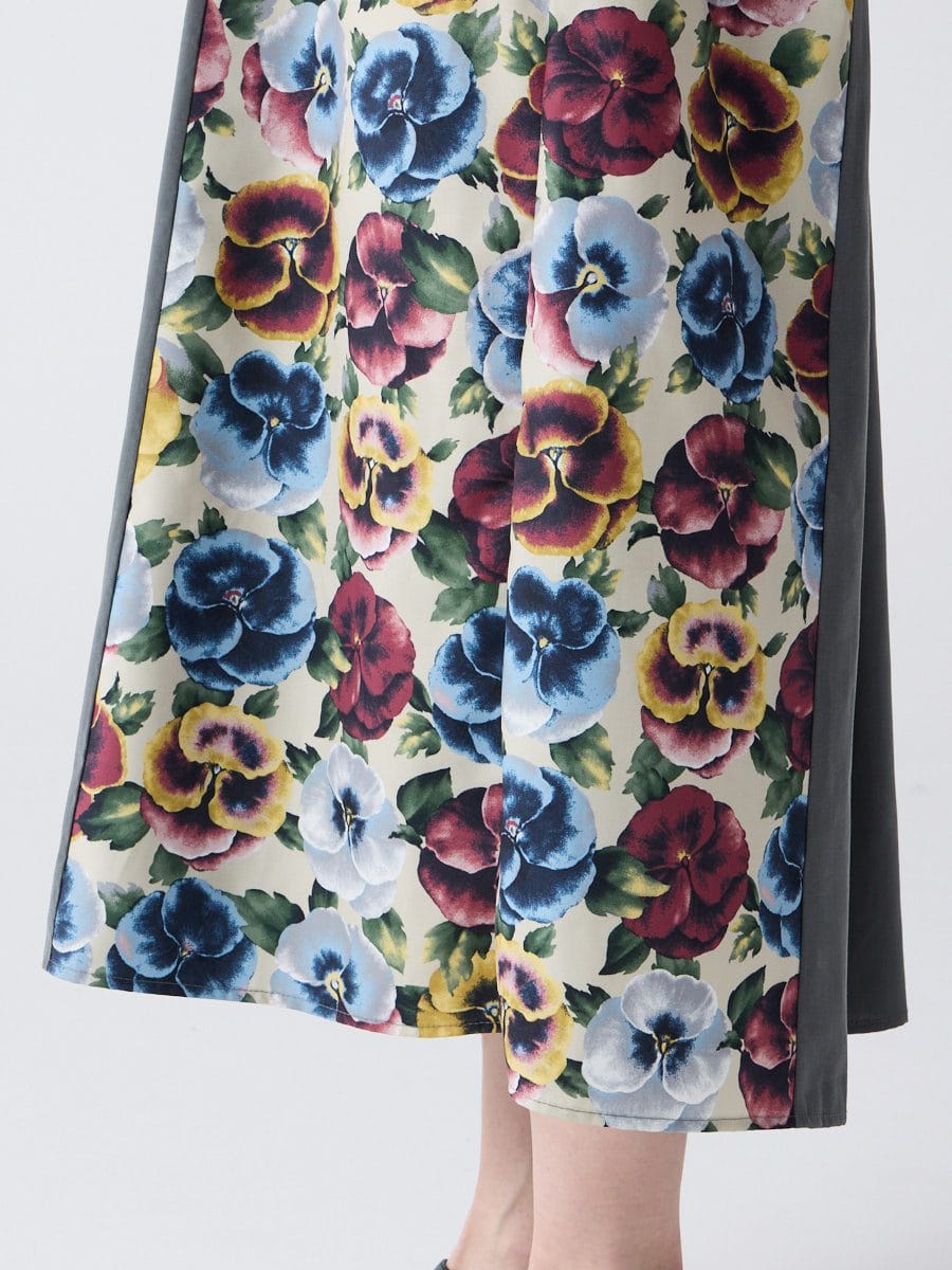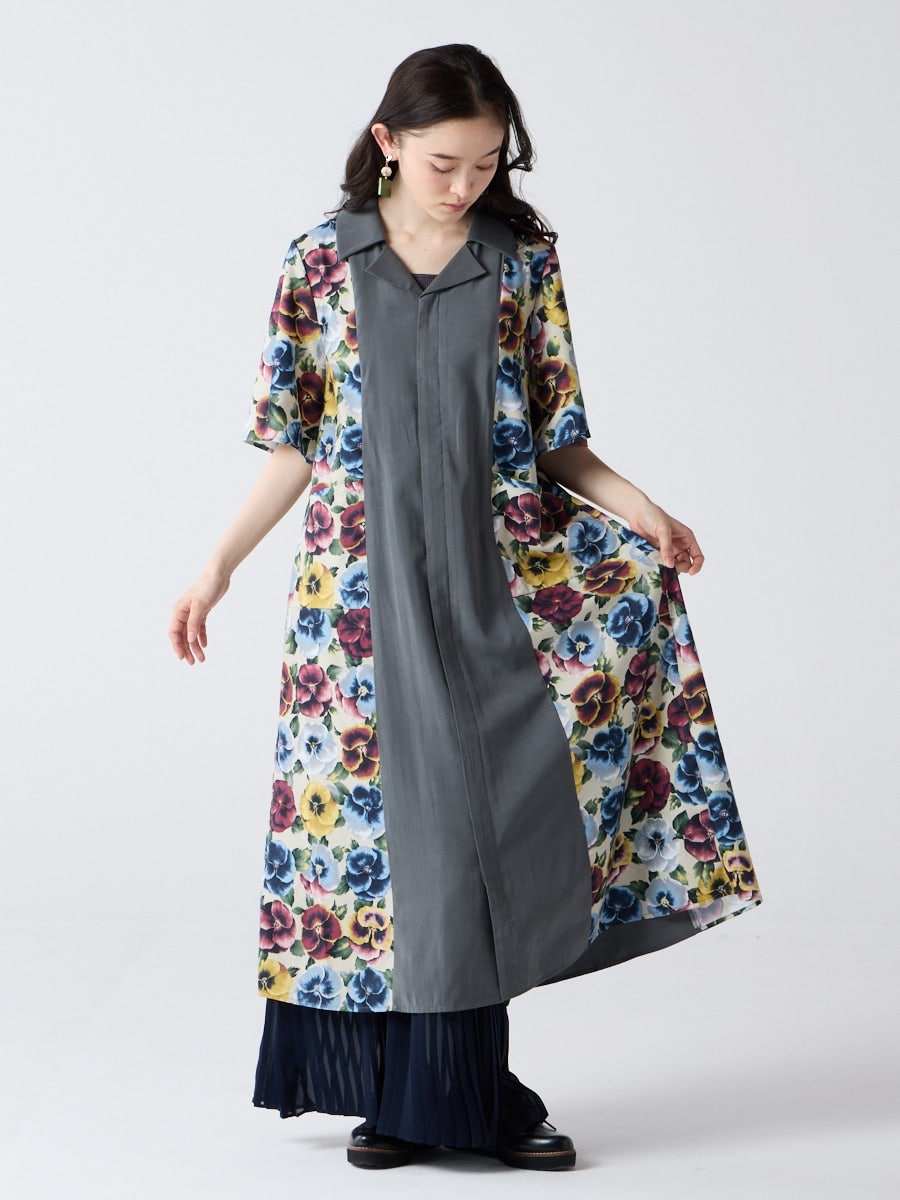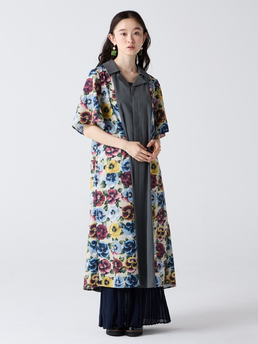 パンジー柄で描く、洗練されたモード休日ワンピース。