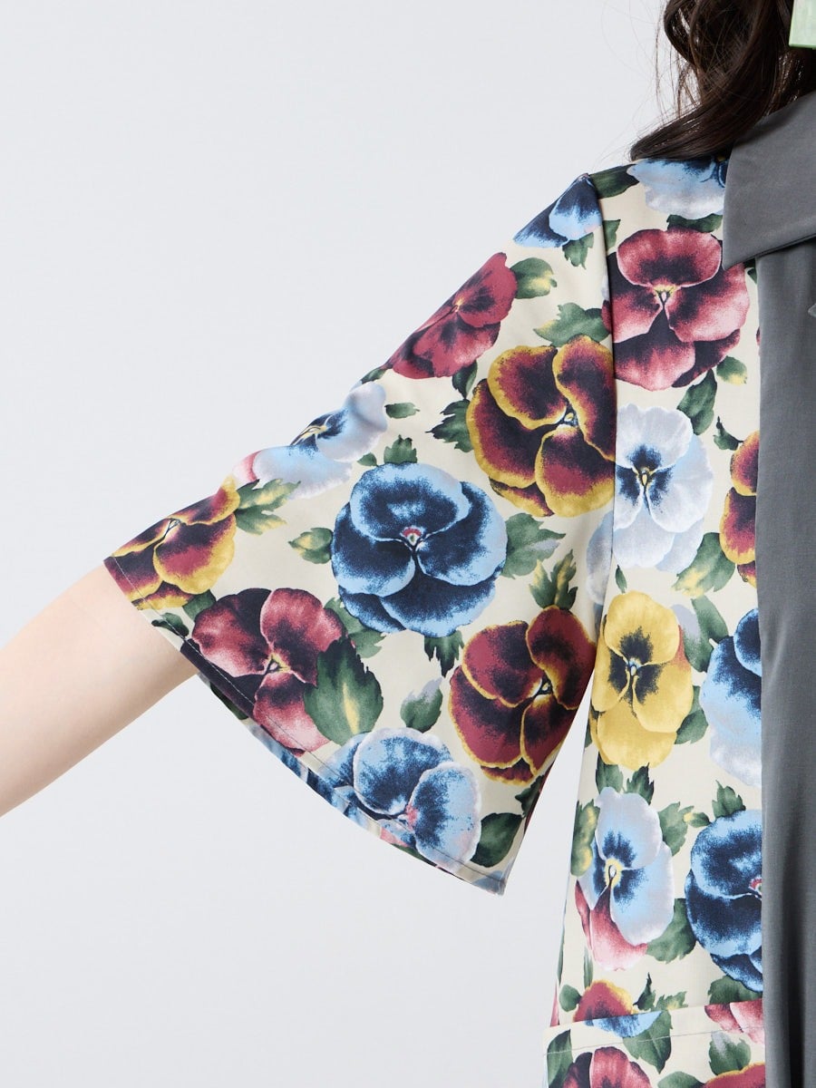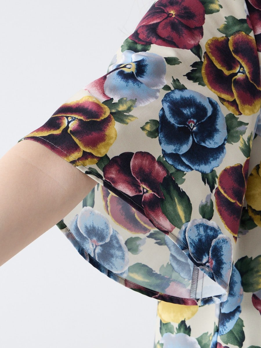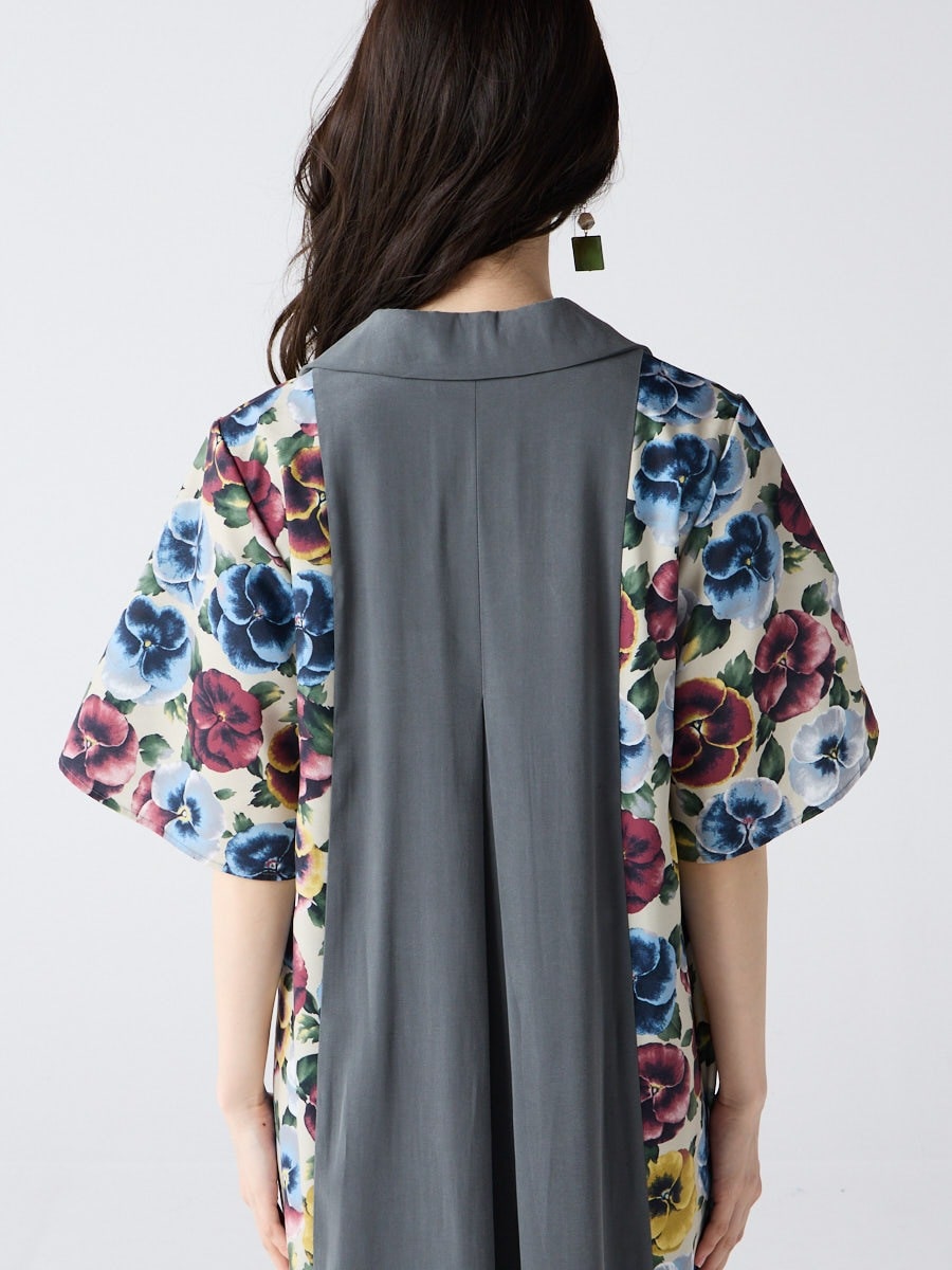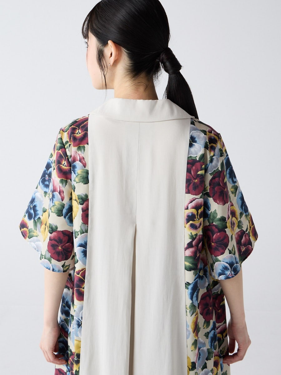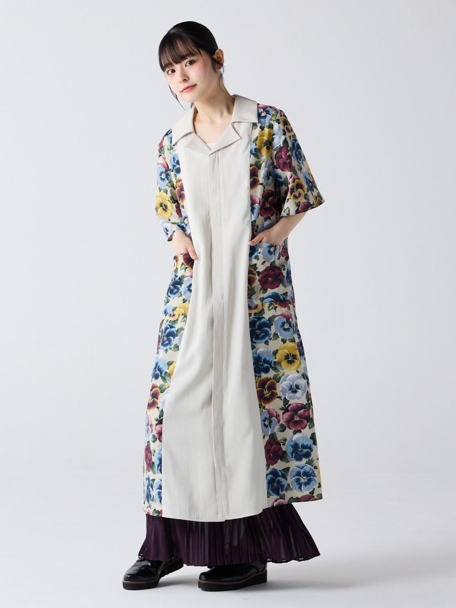 パンジー柄で描く、洗練されたモード休日ワンピース。