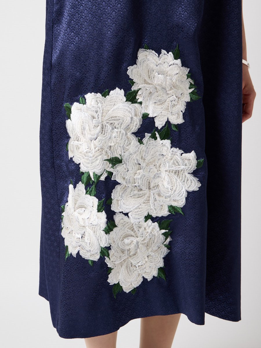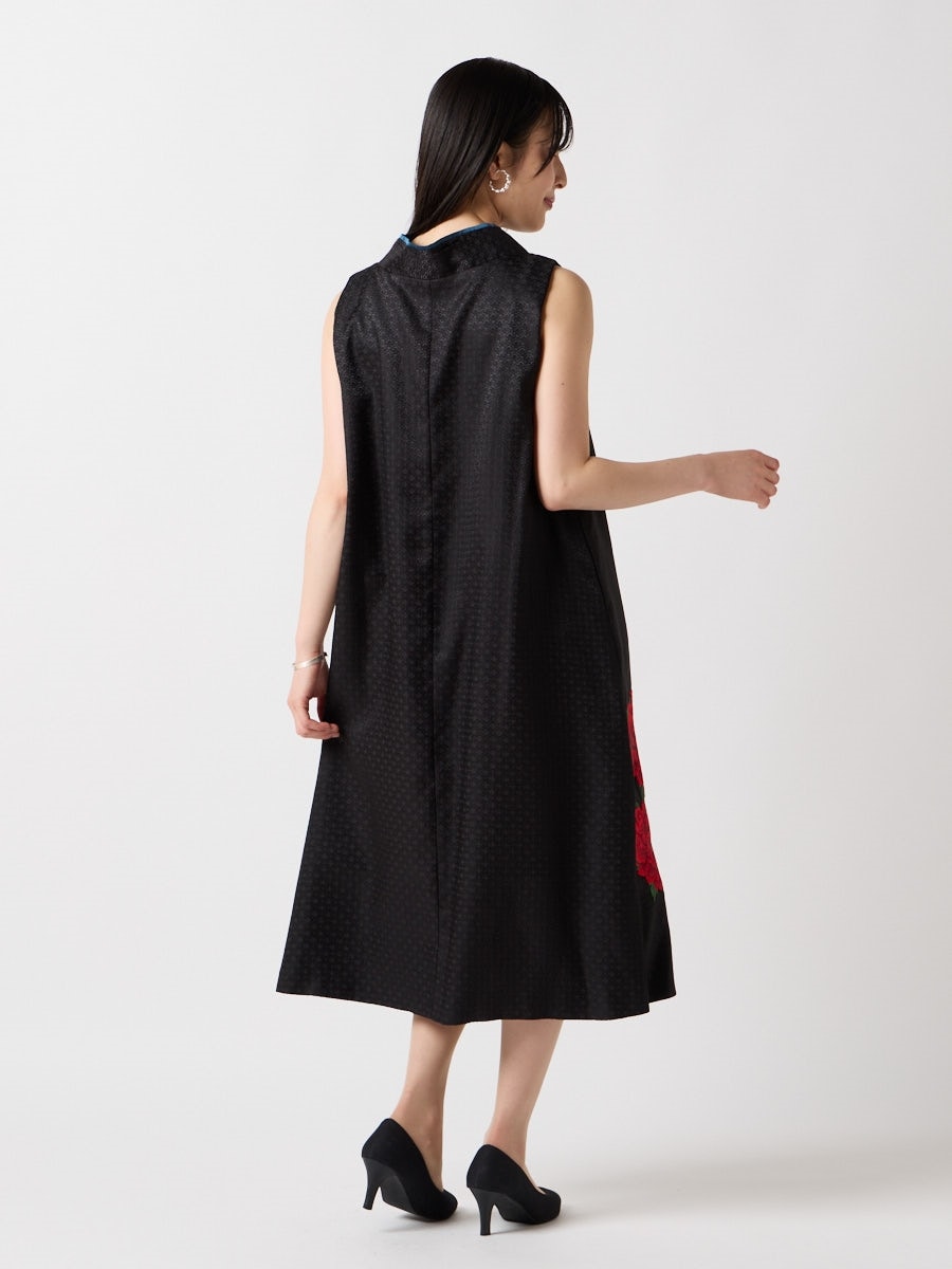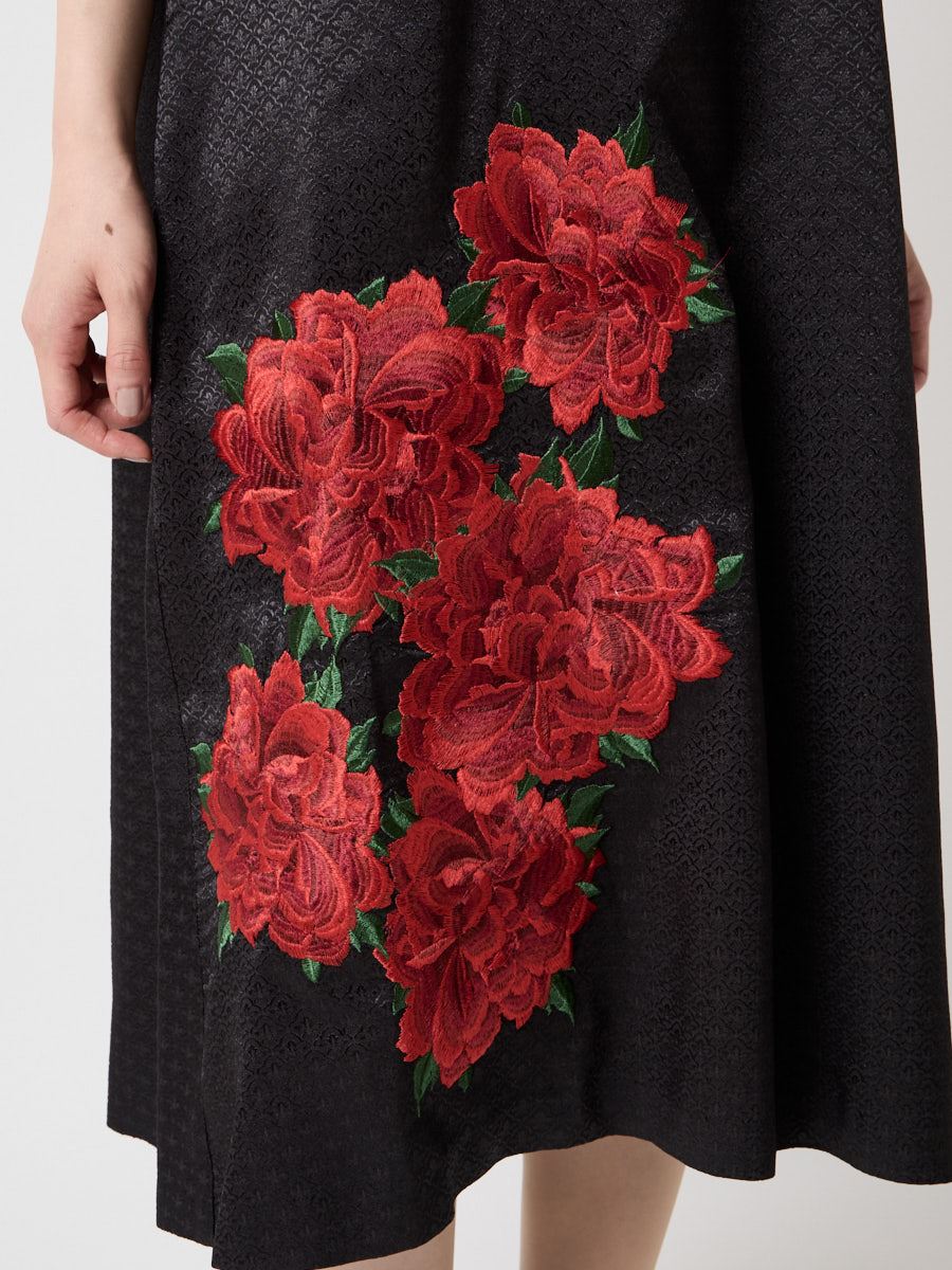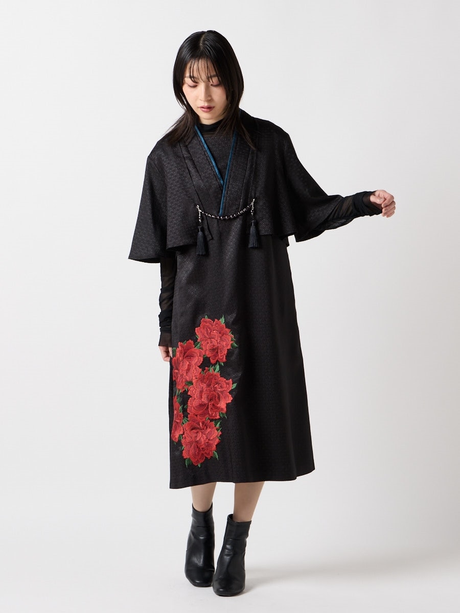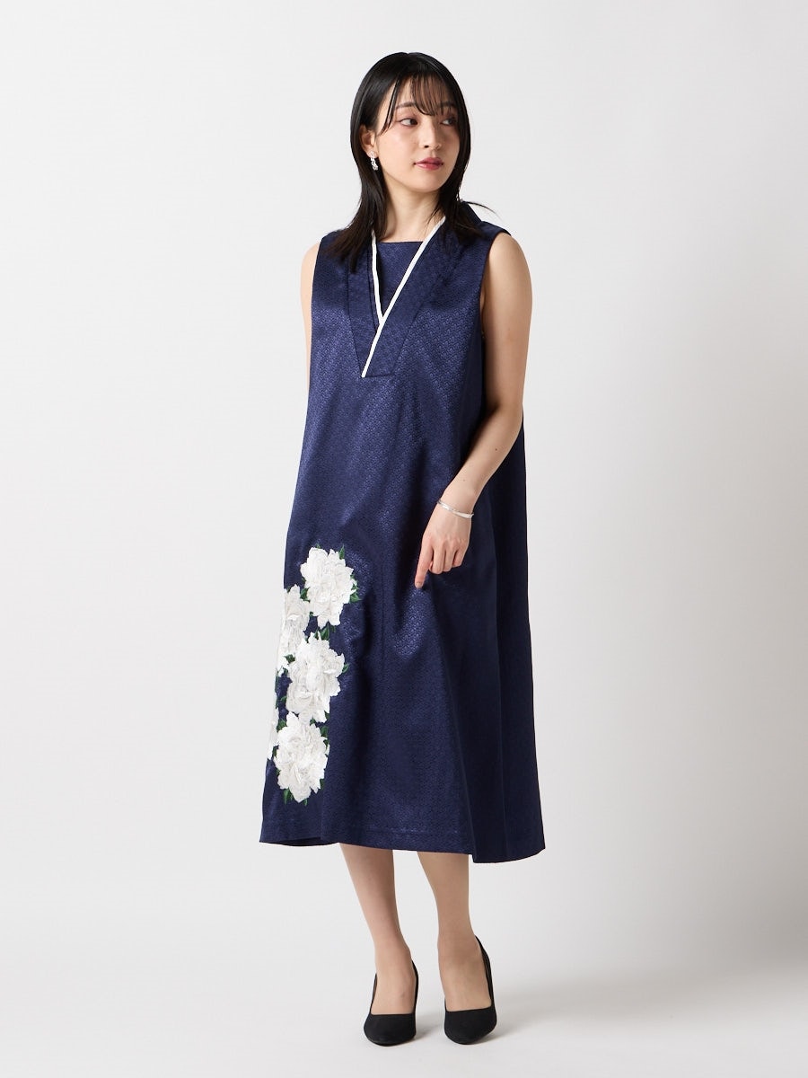 フロントに入った牡丹の花の刺繍がアクセントになります。