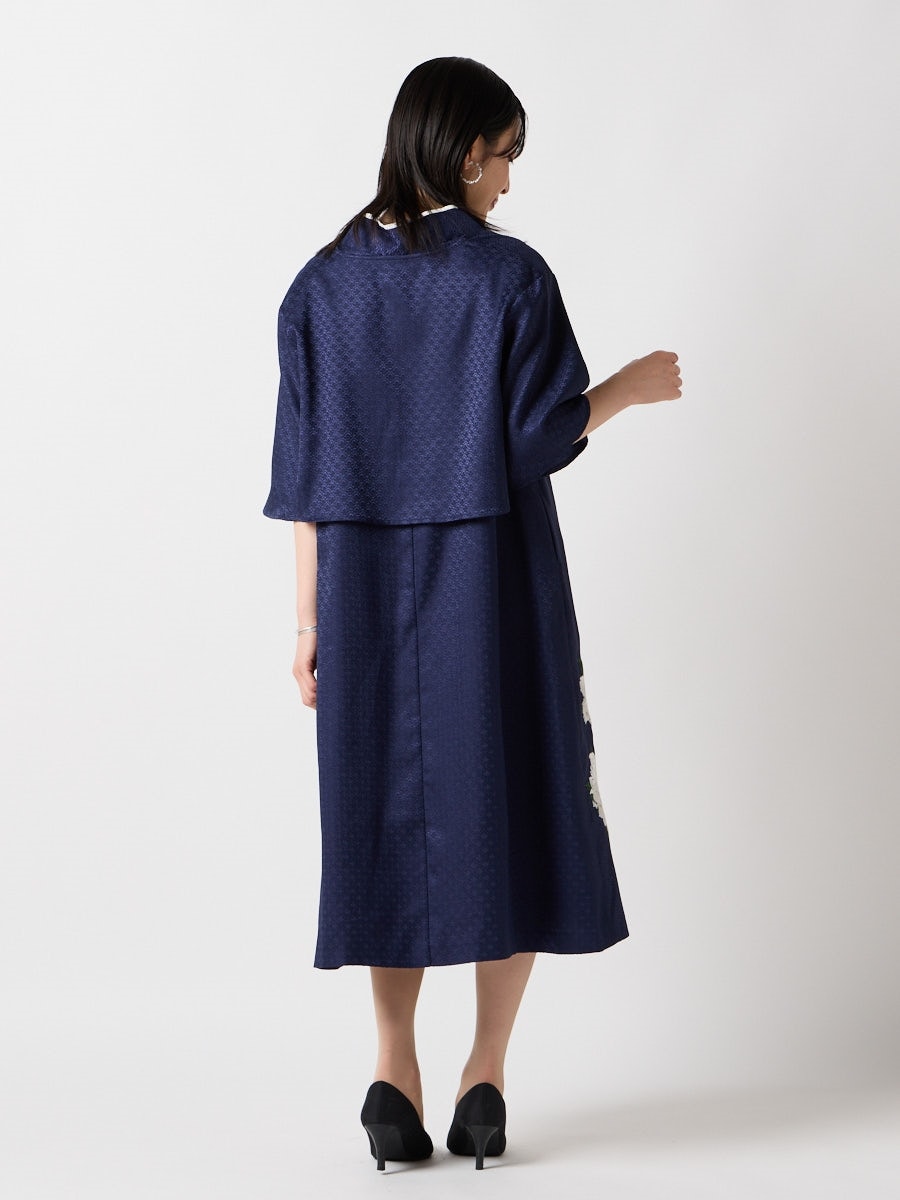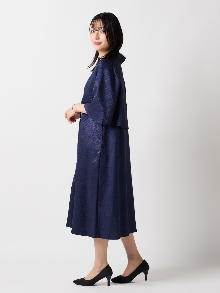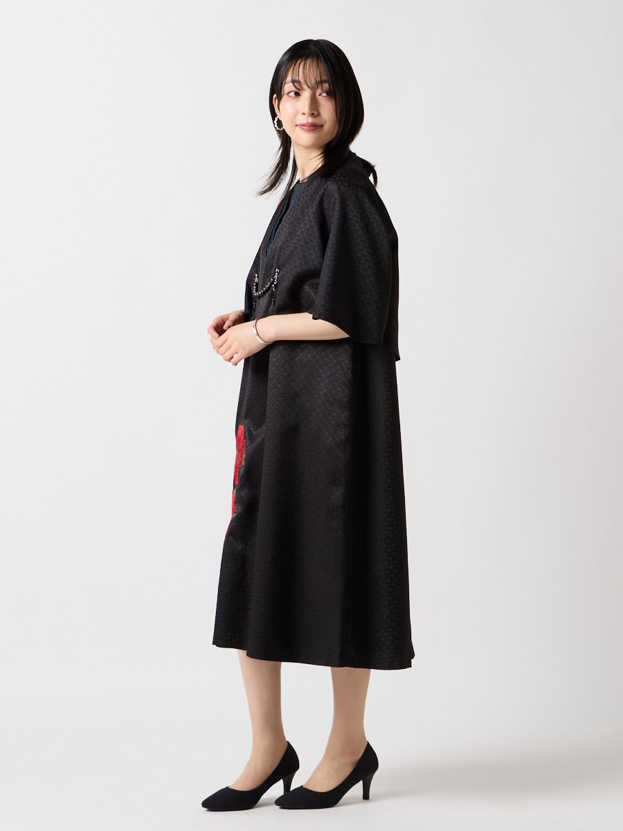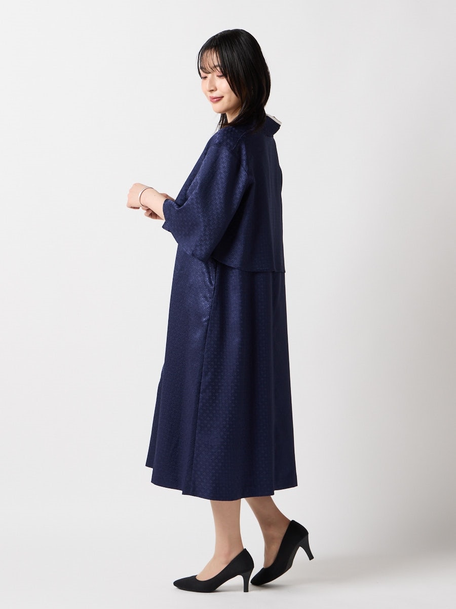 同素材の羽織がセットになっており、小物次第でカジュアルにもフォーマルにも着回しが可能。
