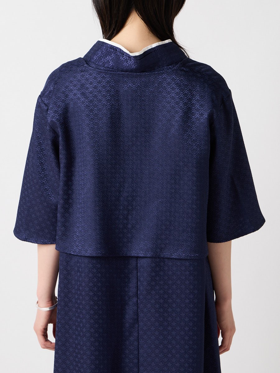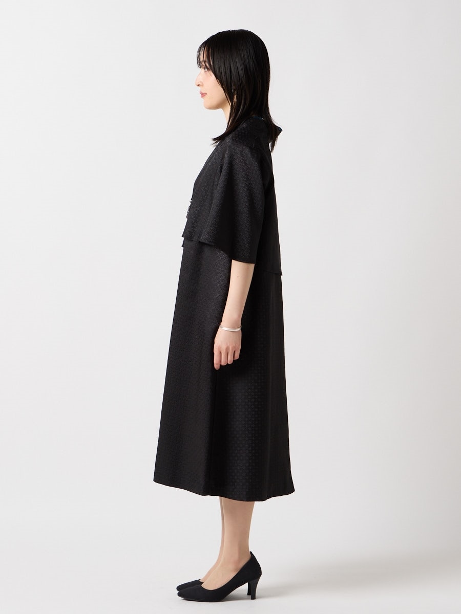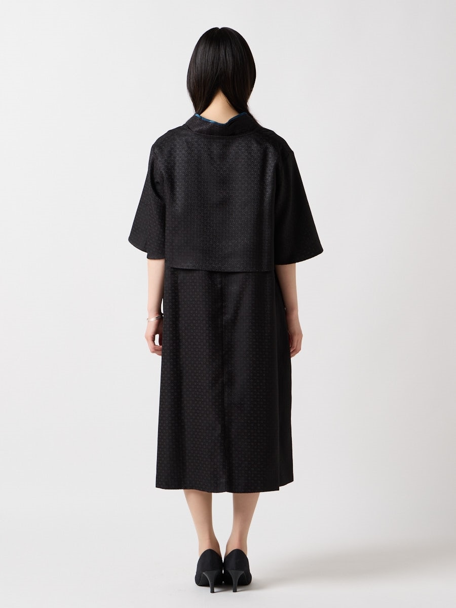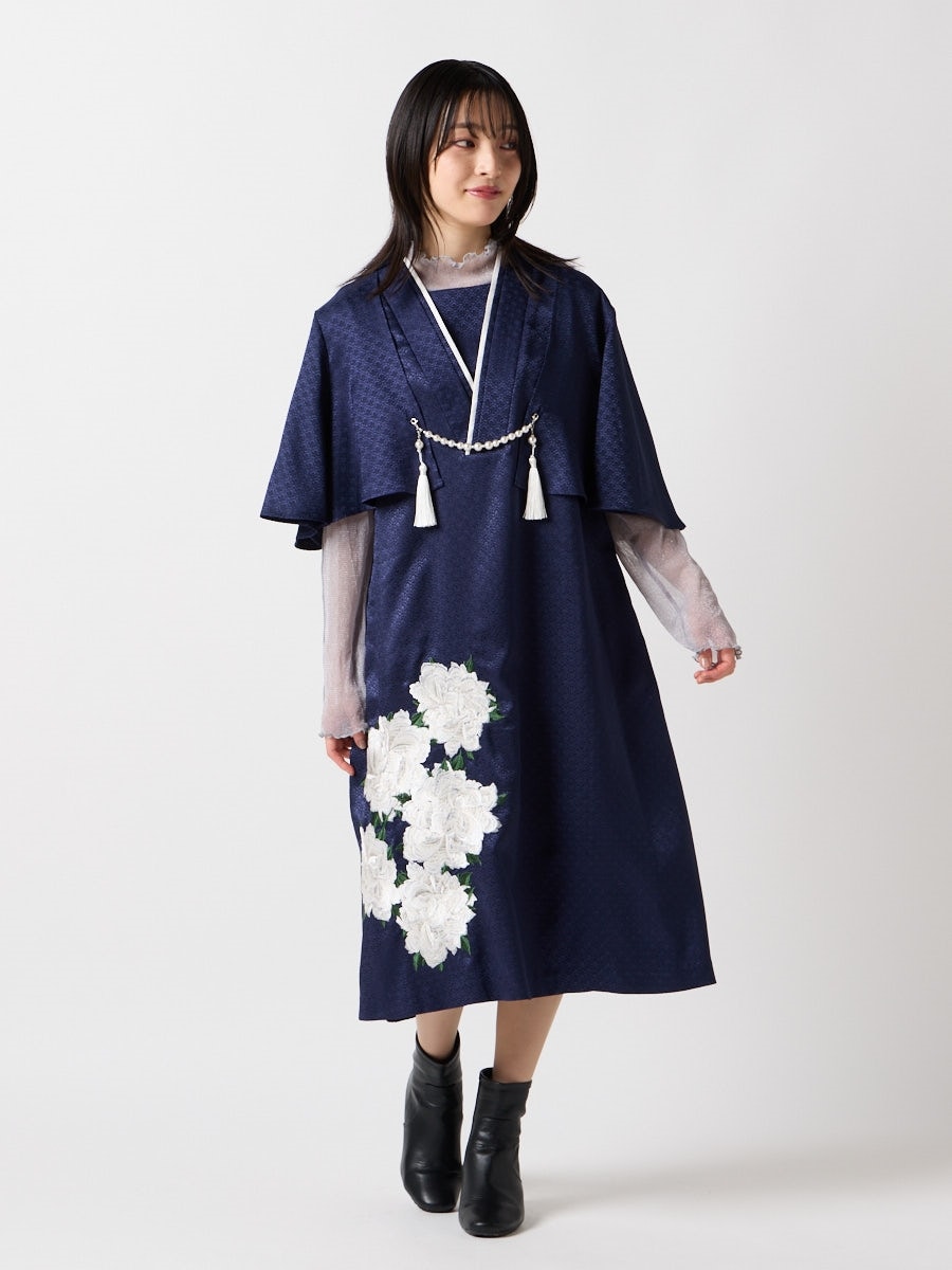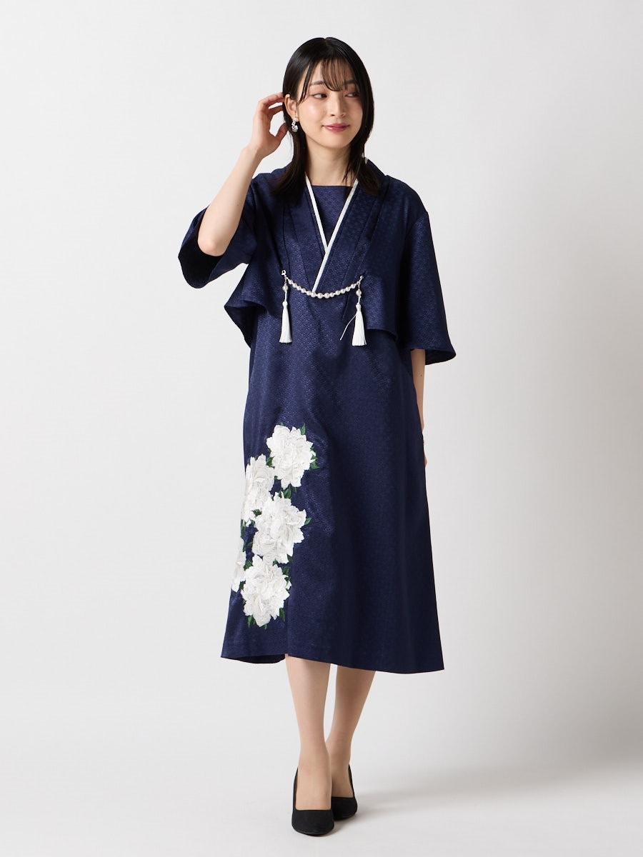 同素材の羽織がセットになっており、小物次第でカジュアルにもフォーマルにも着回しが可能。