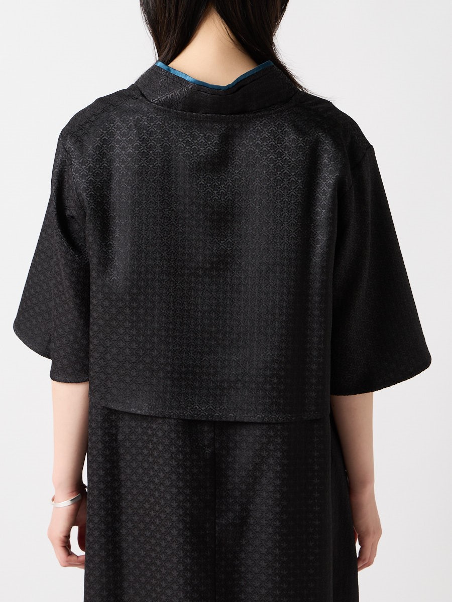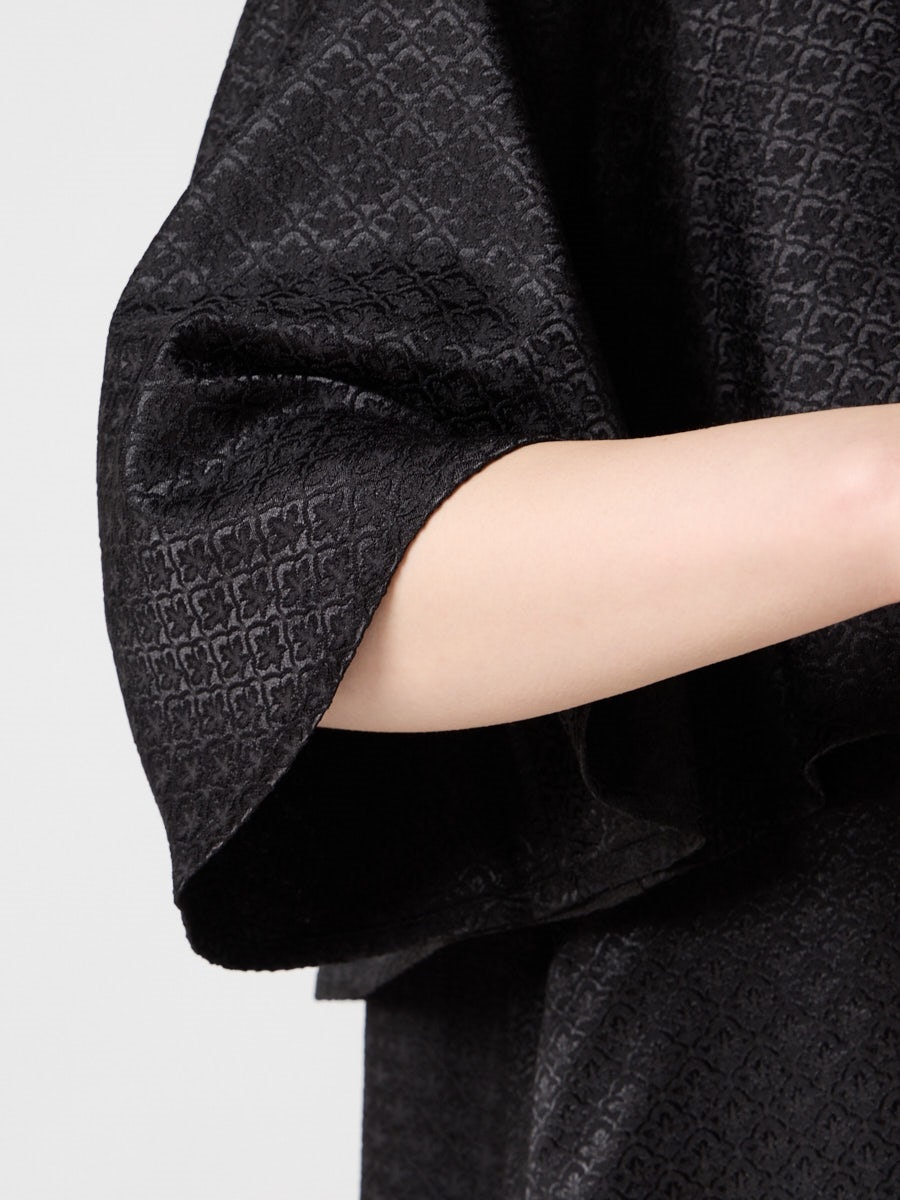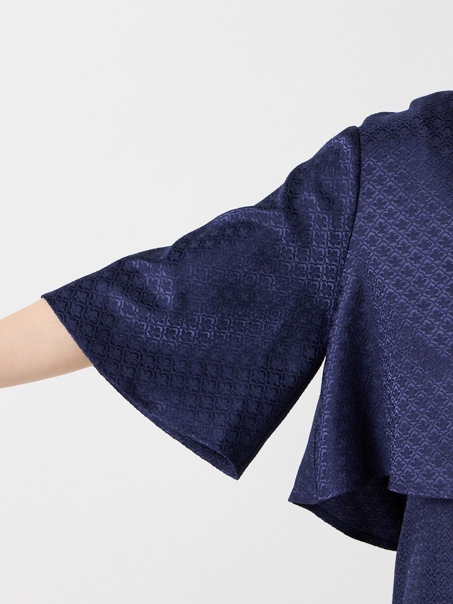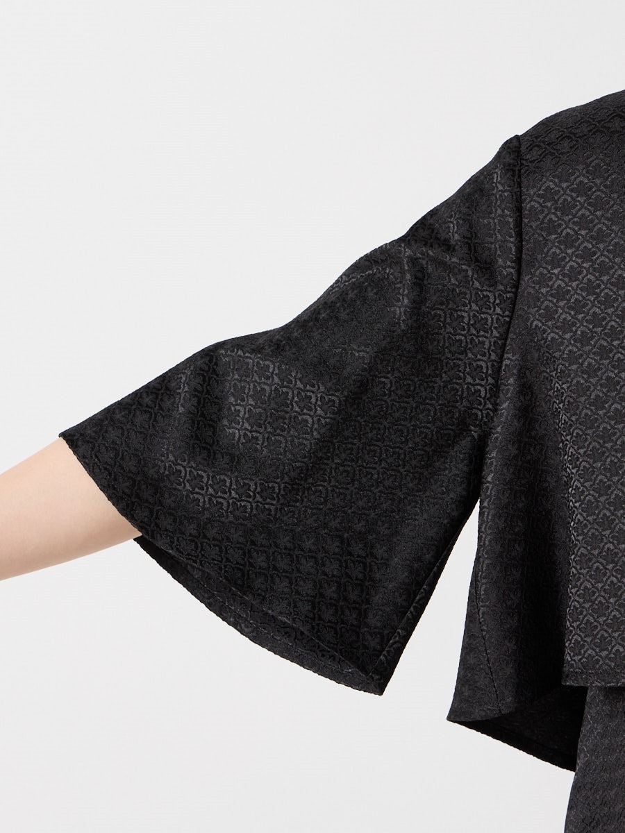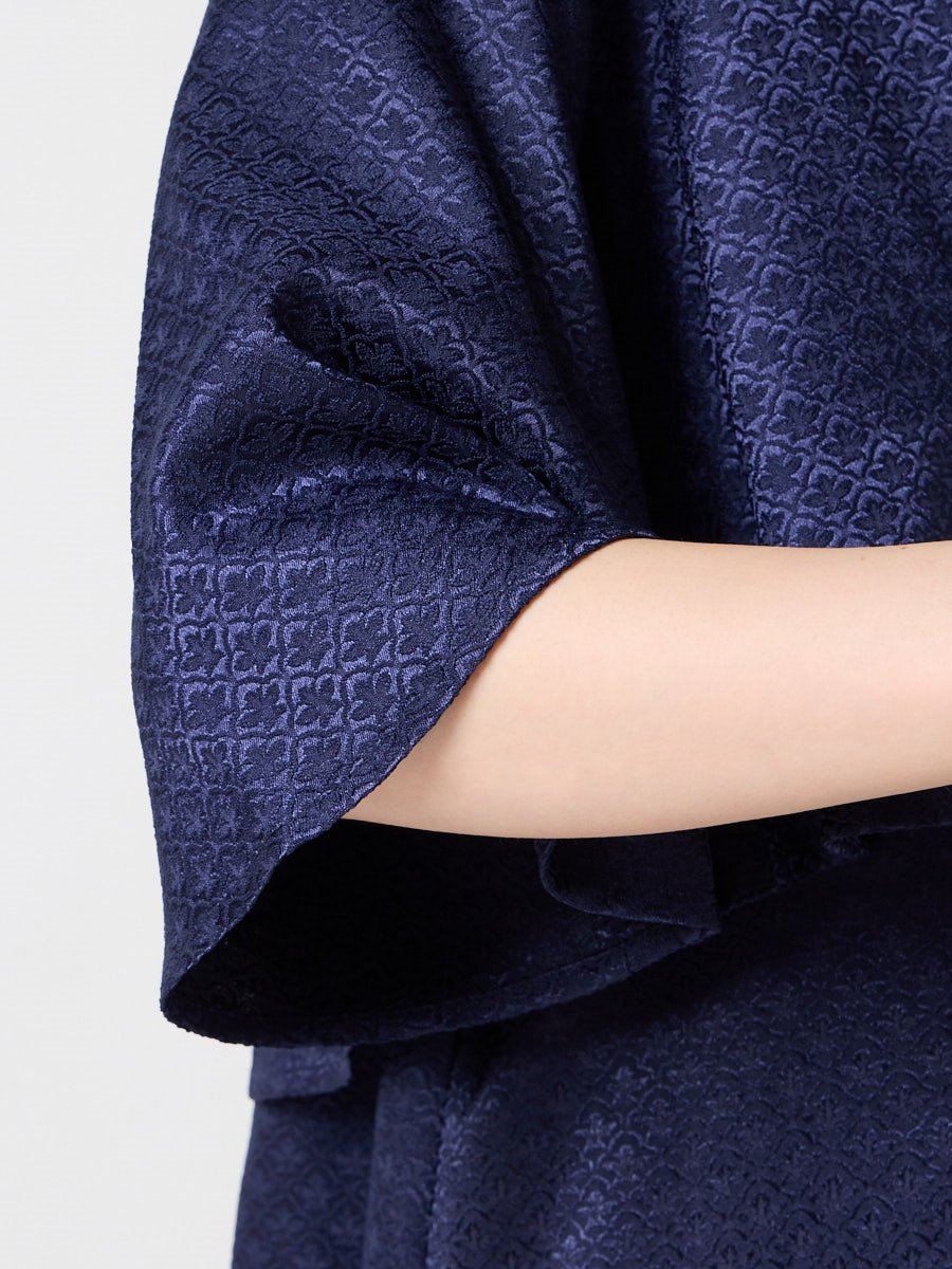 中肉のジャガード素材を使用しており、体のラインを拾いにくく、かつきちんと感を演出。