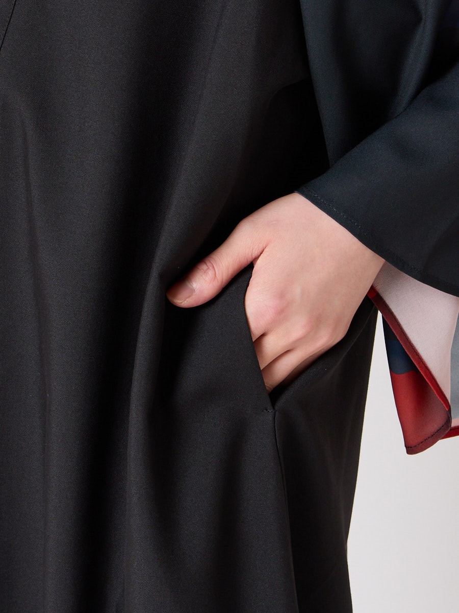 袖部分にはふりふオリジナルテキスタイル「キャロル」「妖」を使用。