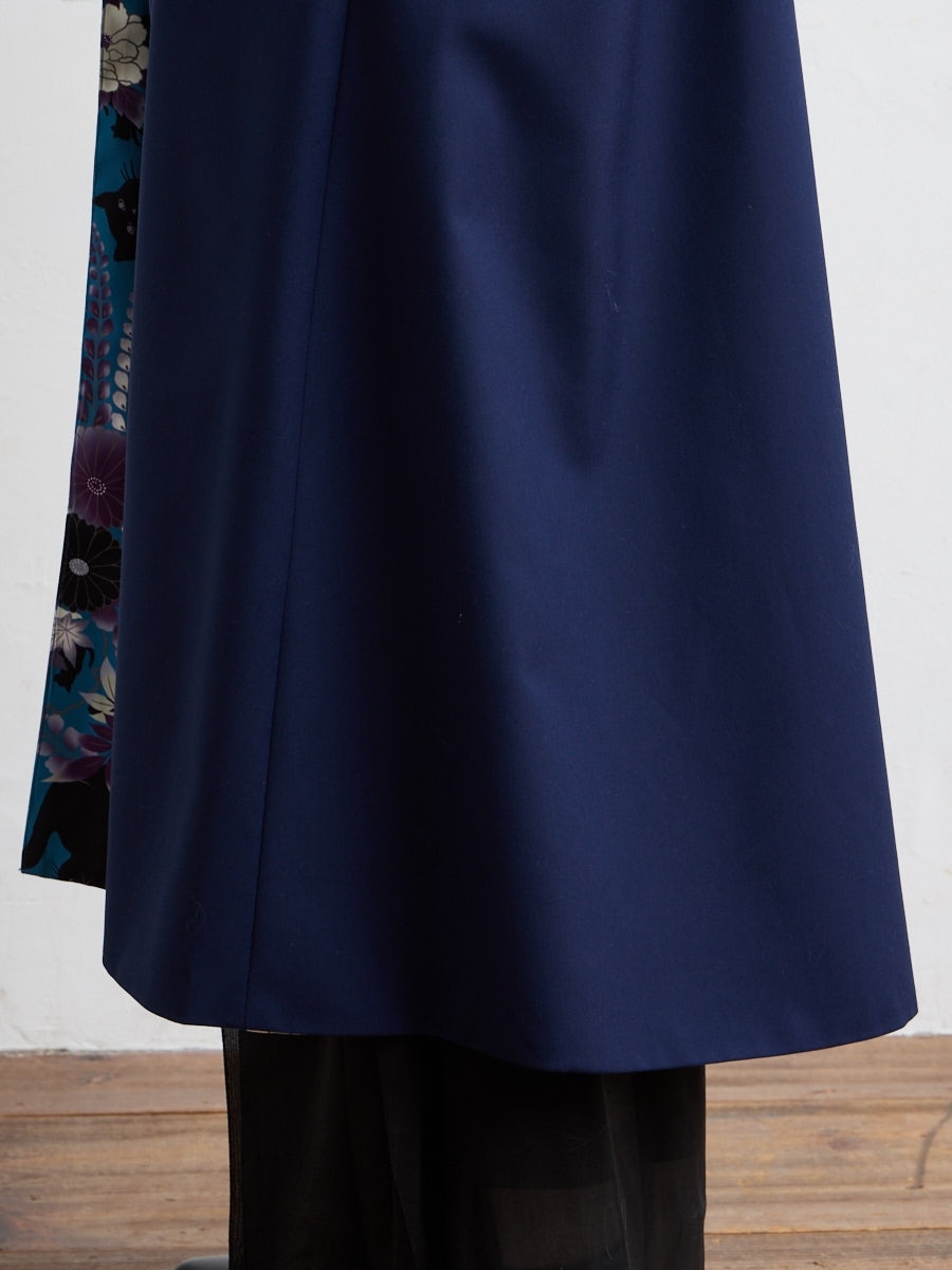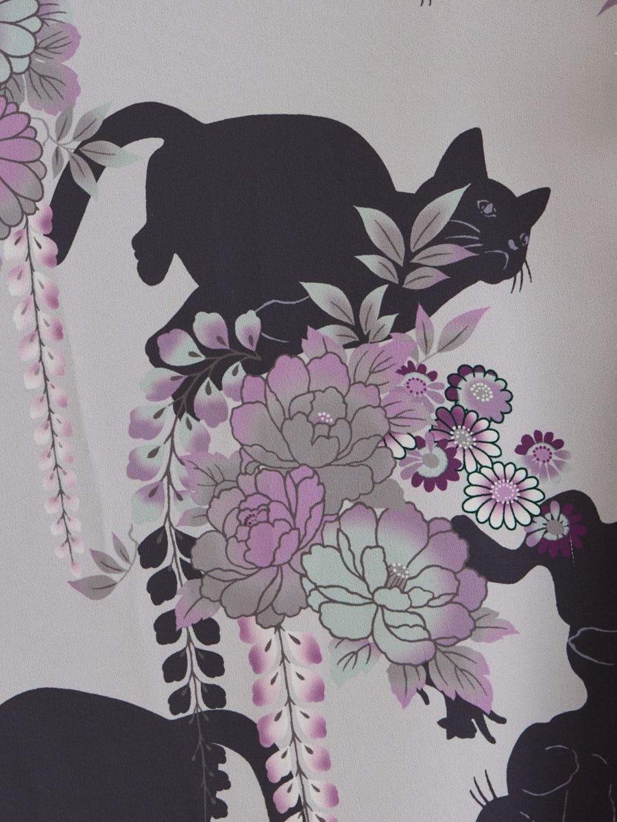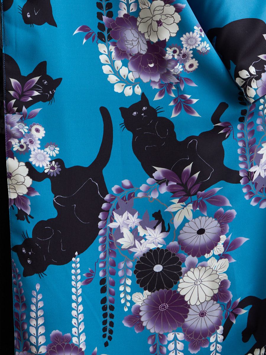 深みのある夜空色は、花々と黒猫のシルエットが際立つ、凛とした印象。