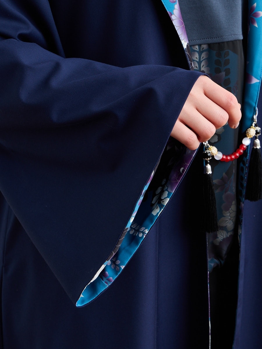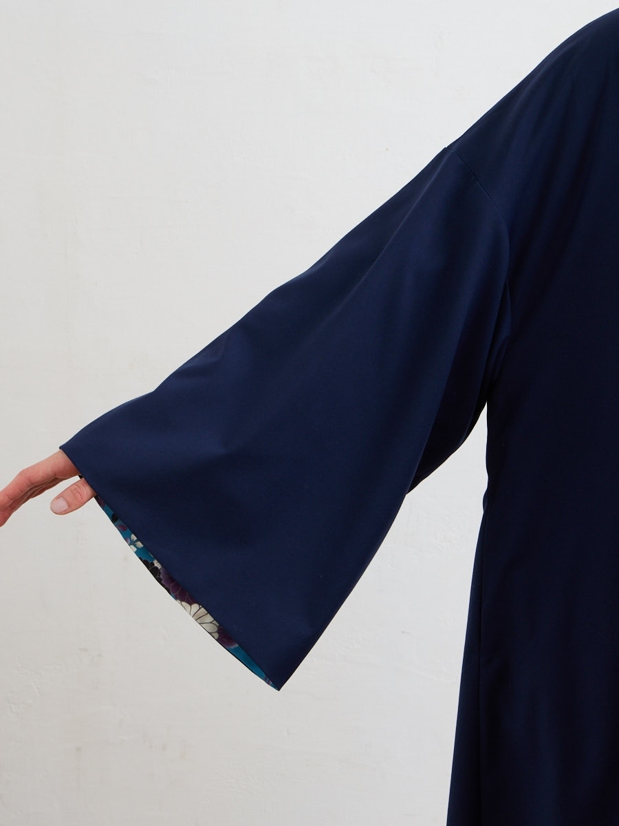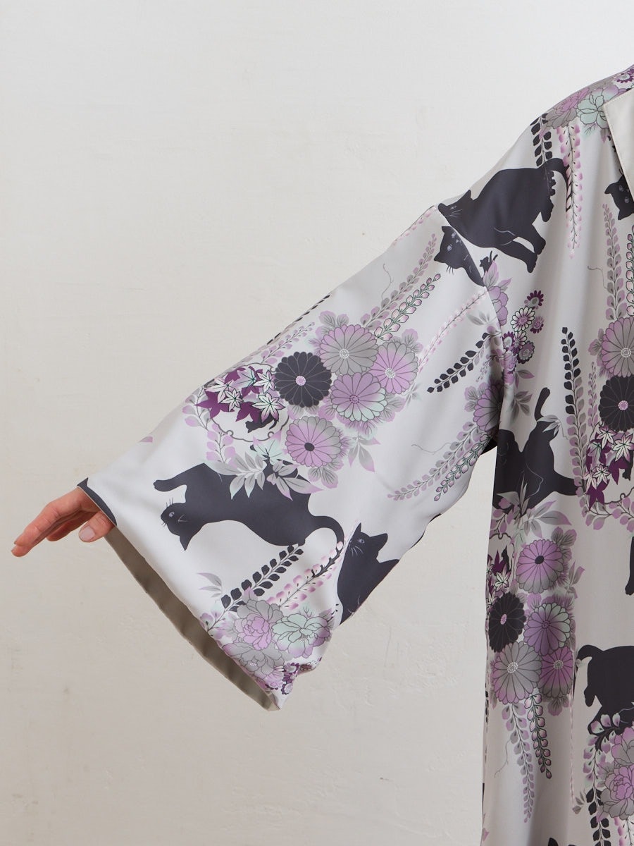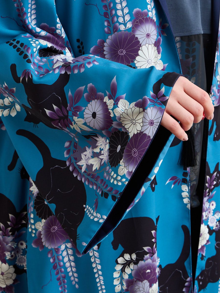深みのある夜空色は、花々と黒猫のシルエットが際立つ、凛とした印象。