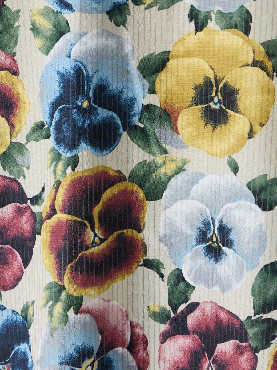 色鮮やかで繊細な花びらのグラデーションが特徴。多彩な色彩が重なり合い、まるで絵画のように豊かな表情を見せます。秩序あるリズムで咲くパンジーの花は、華やかさと上品さを兼ね備え、アンティークな趣きを感じさせます。